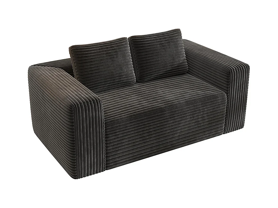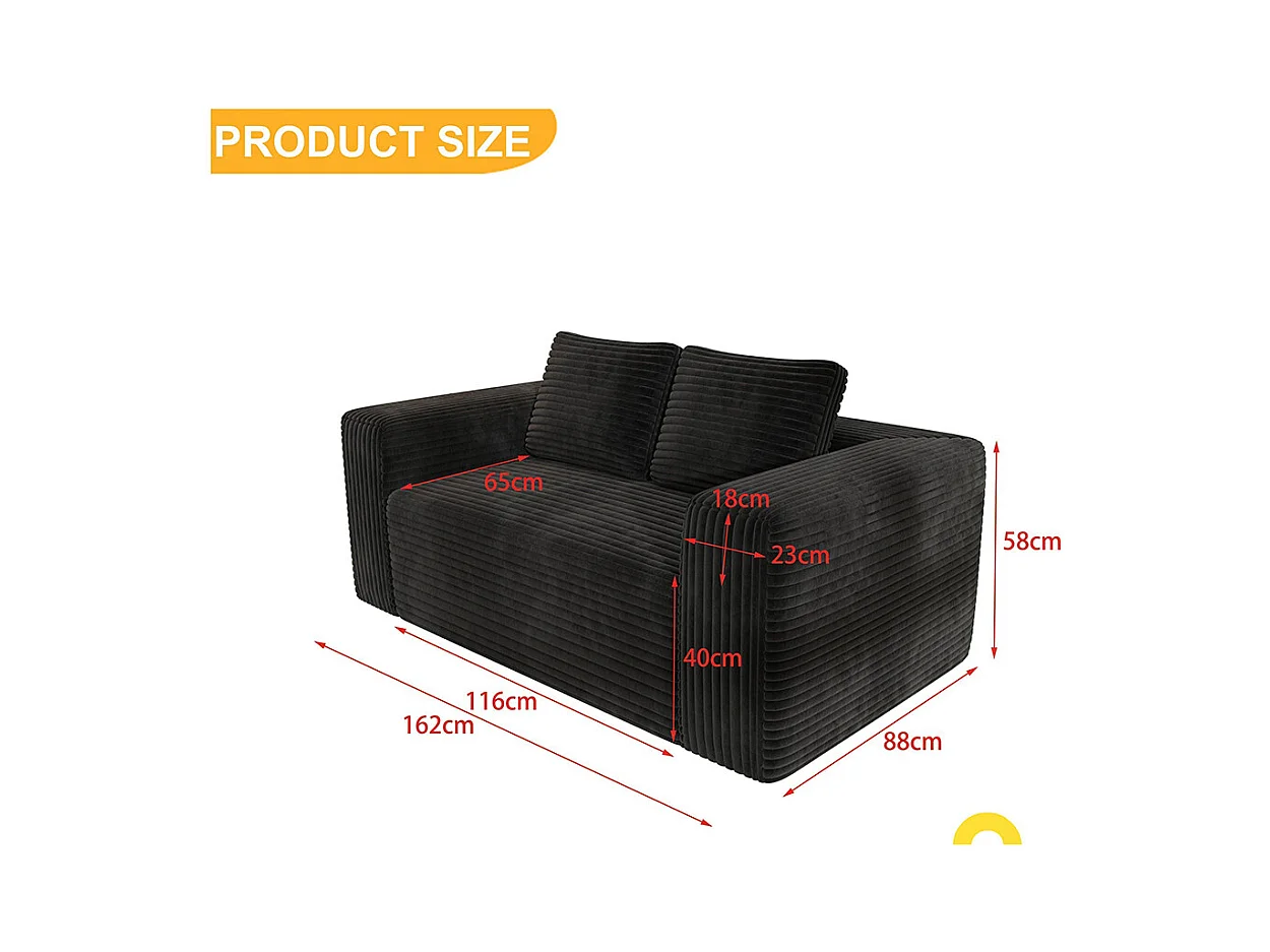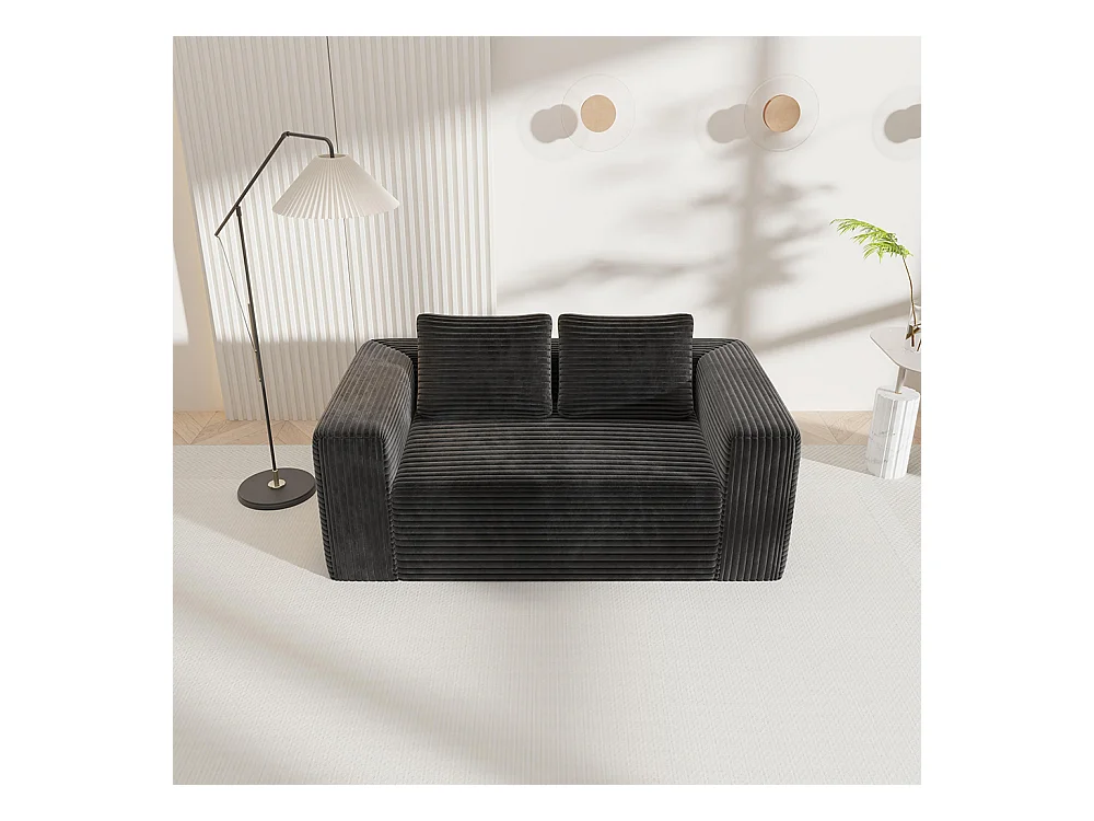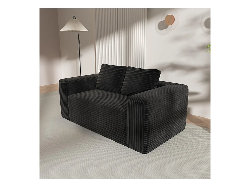 Canapé 2 places moderne velours côtelé sans dossier sans assemblage mousse pour petit appartement chambre bureau noir