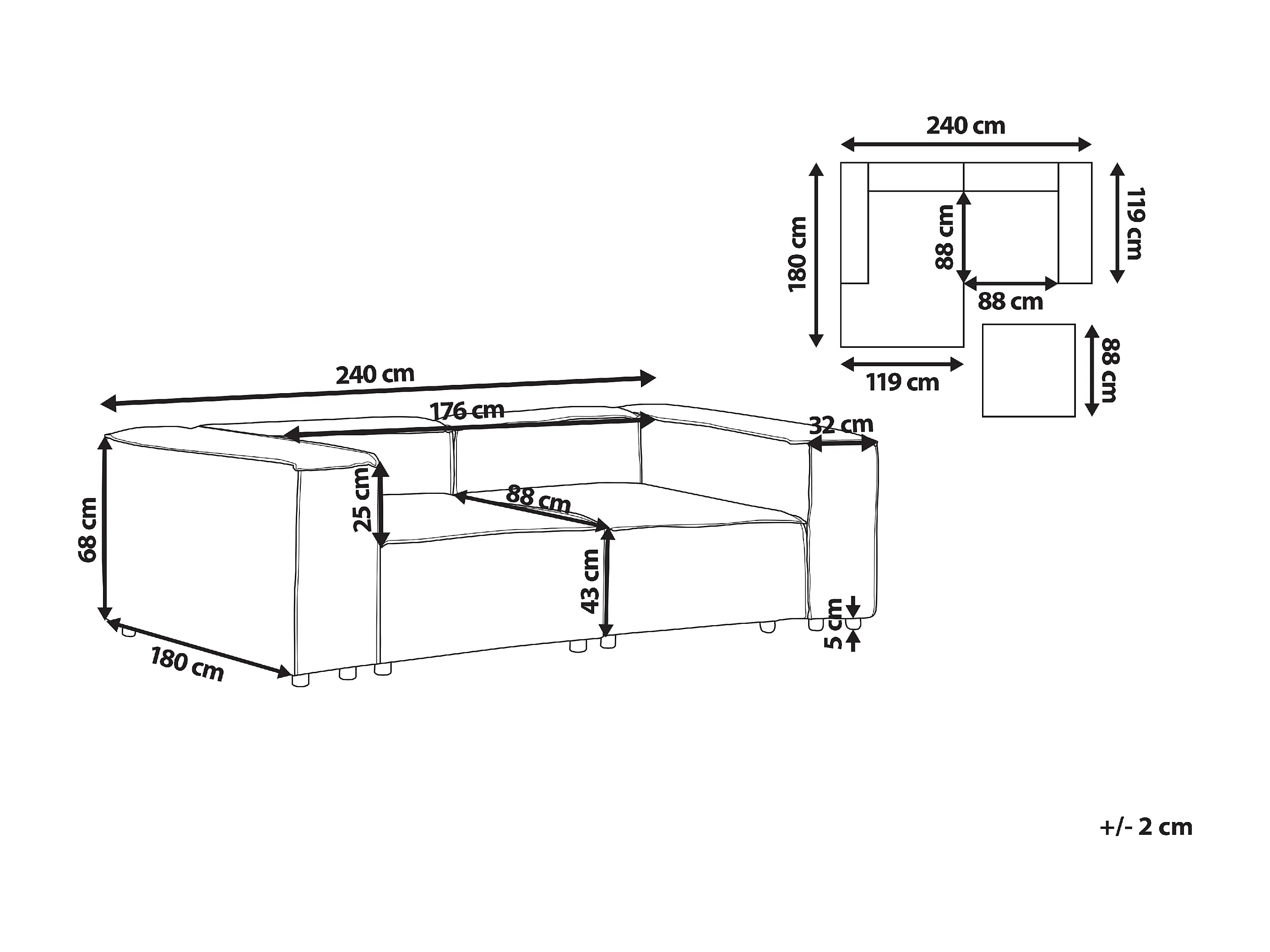 Canapé modulable 2 places APRICA Bouclé Blanc cassé