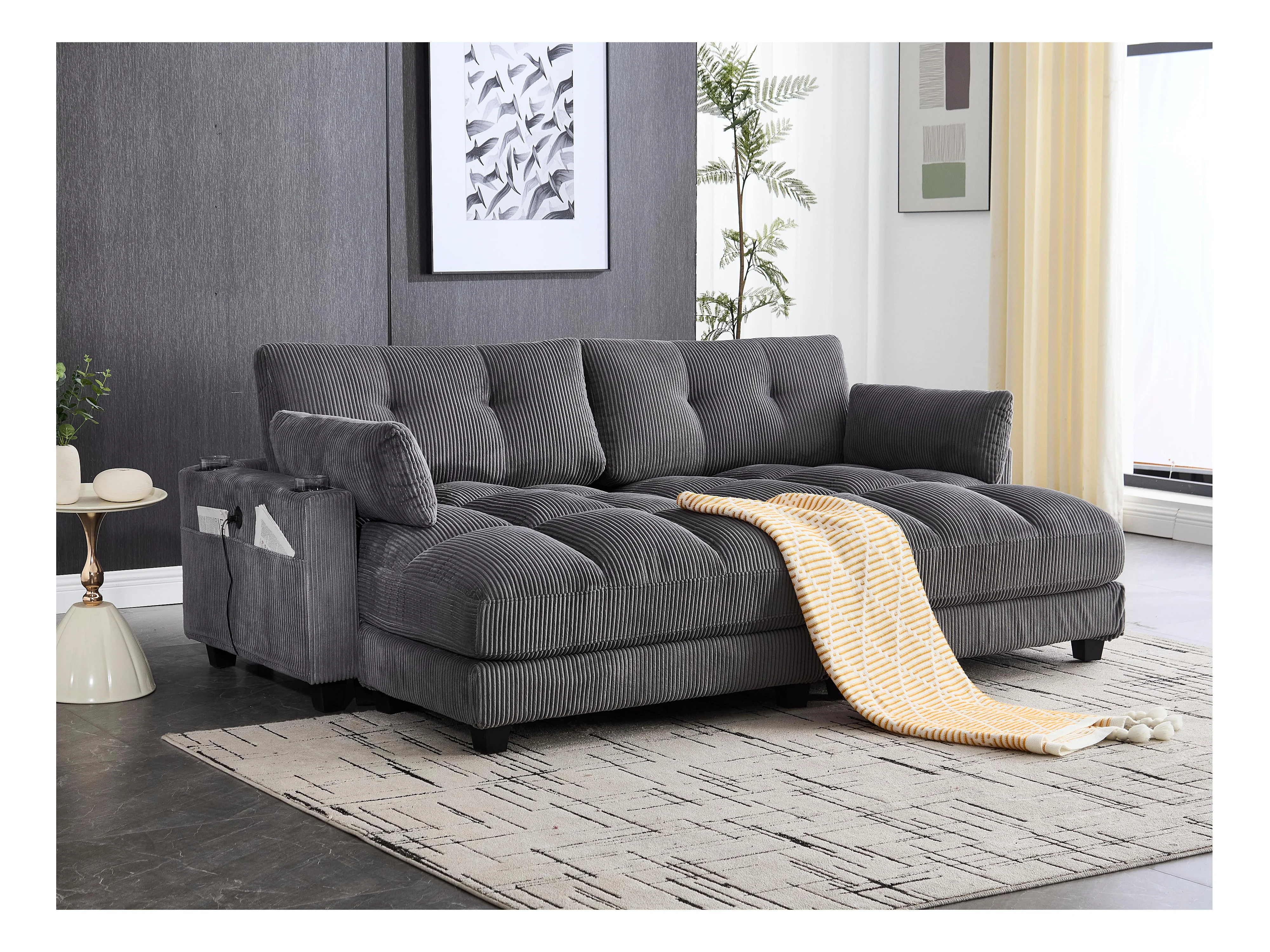 Canapé 2 places modulable en velours beige – avec USB et porte‑gobelet – multifonction pour petit espace - 112x140x81cm