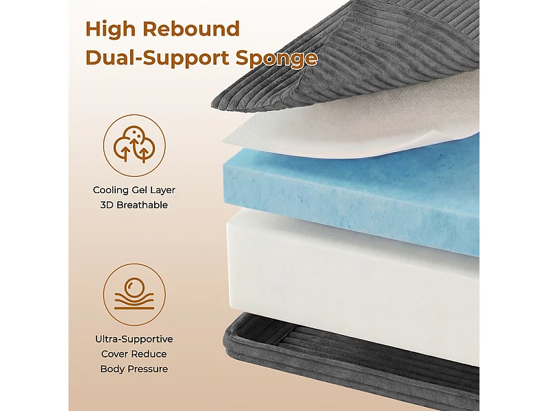Canapé 2 places modulable en Velours Côtelé, avec 2 coussins, 202x101x82cm, Gris