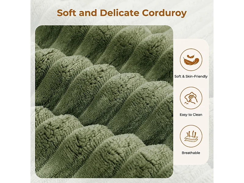Canapé 2 places modulable en Velours Côtelé, avec 2 coussins, 202x101x82cm, Vert