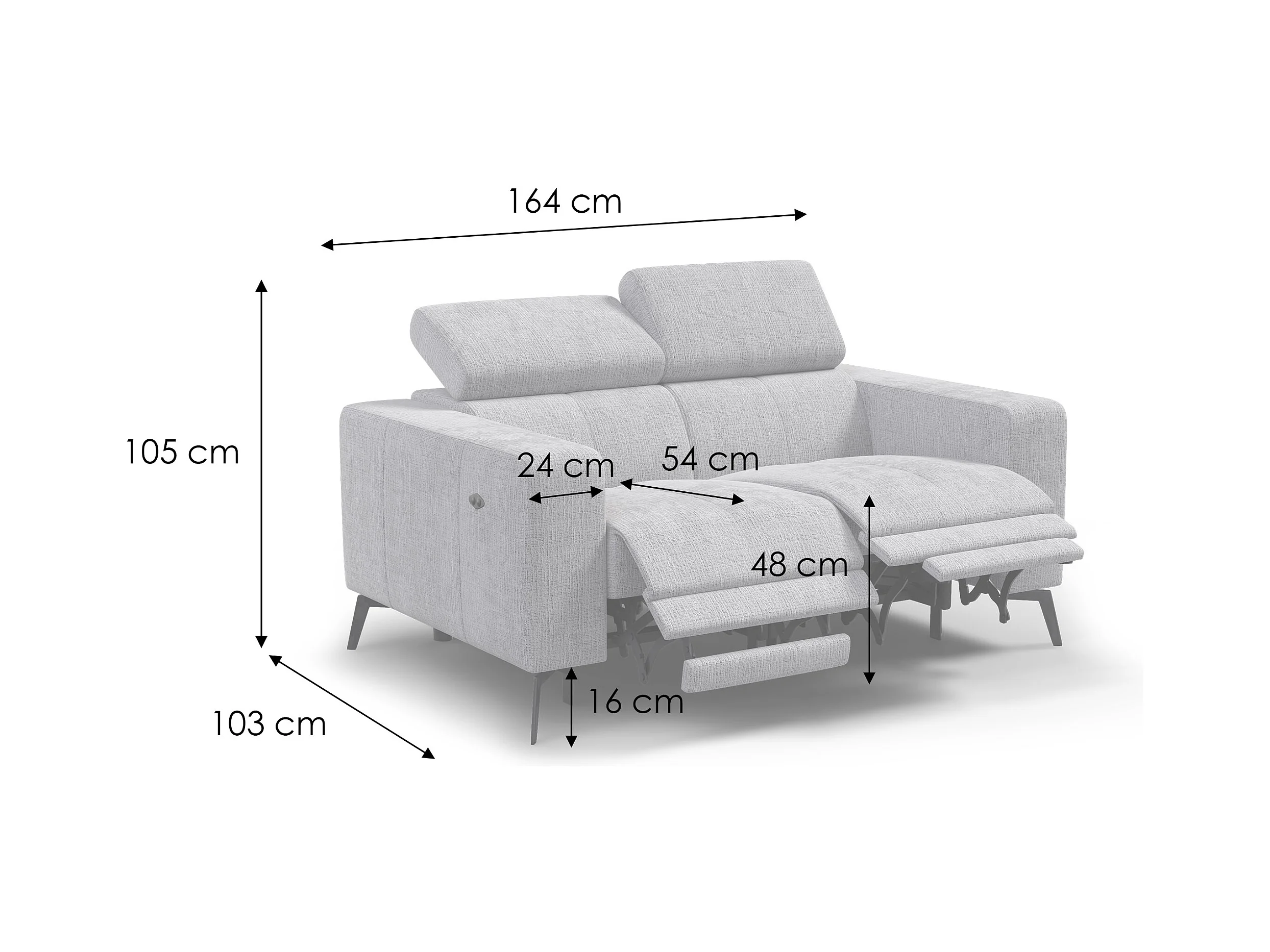 Canapé 2 places MORELLO avec 2 x Relax Zero Gravity, tissu beige