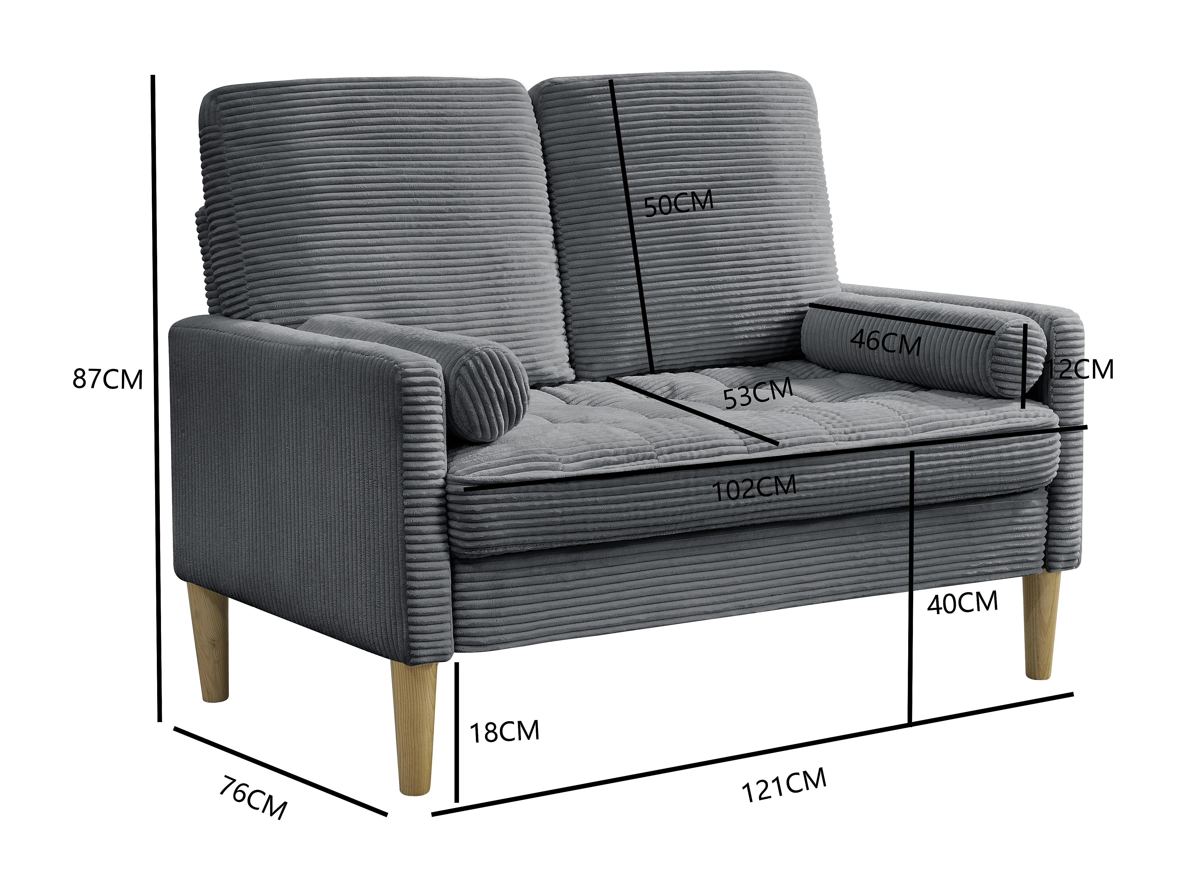 Canapé 2 places petite 121 cm en velours côtelé gris - Pieds en bois