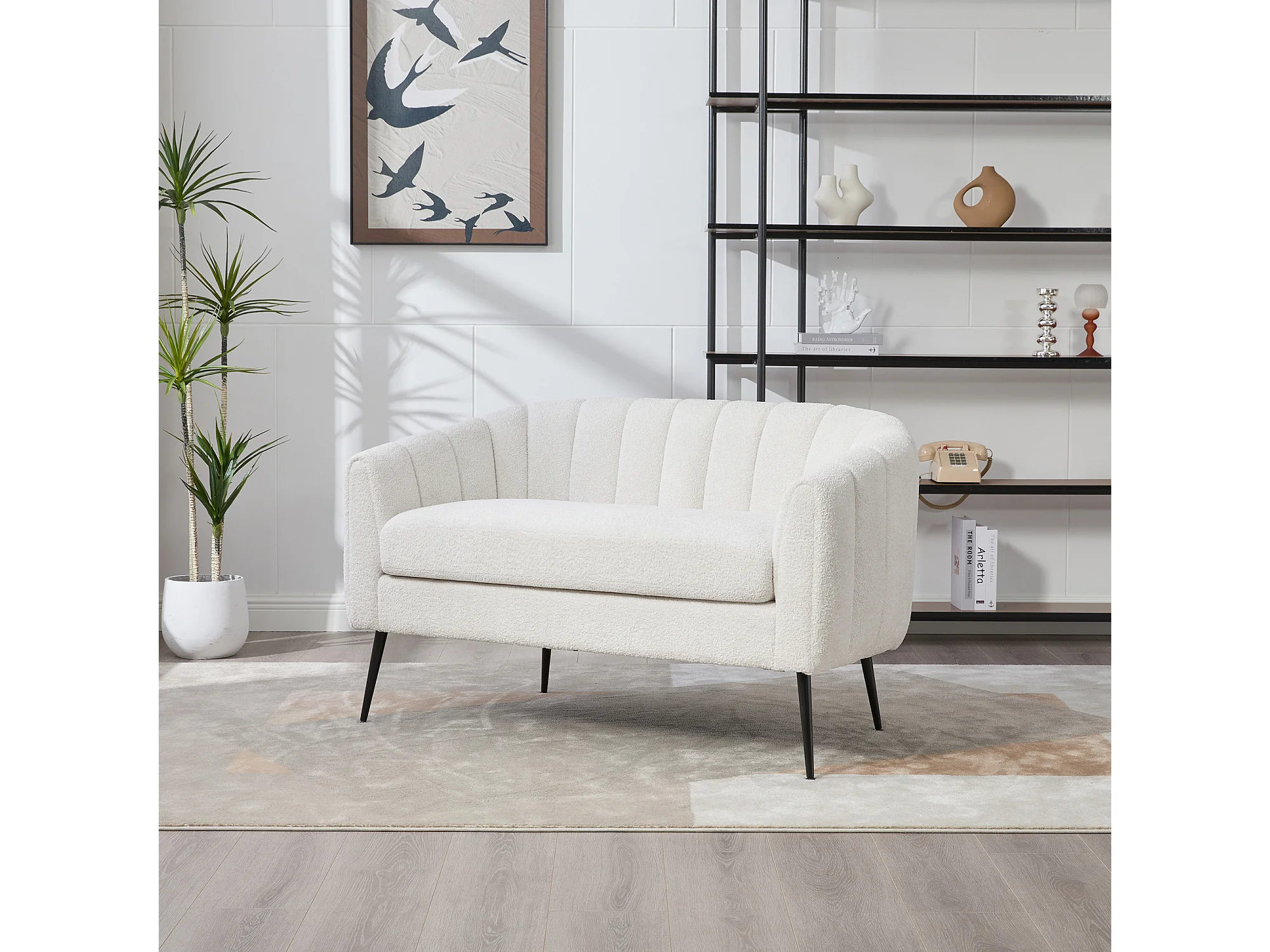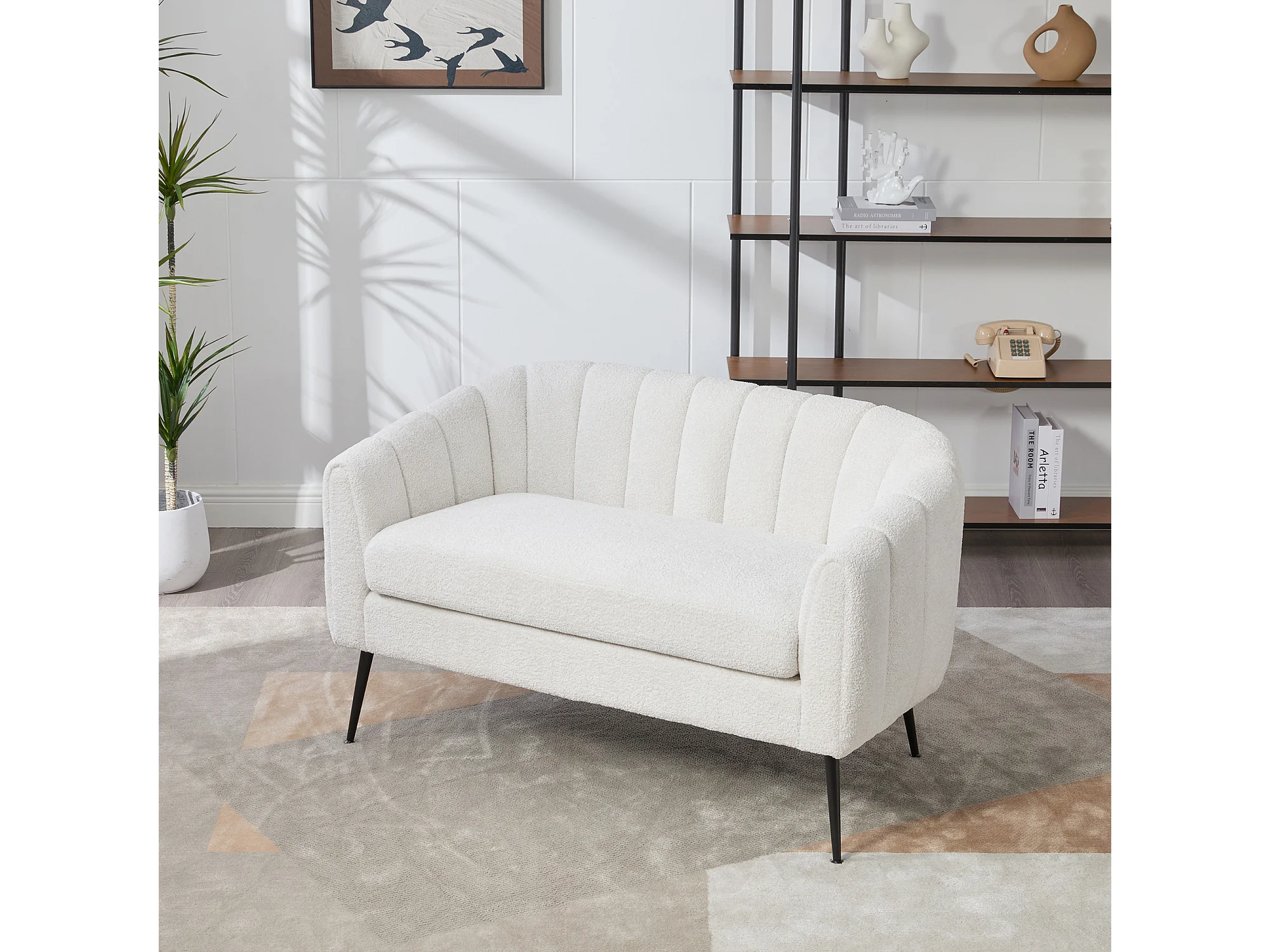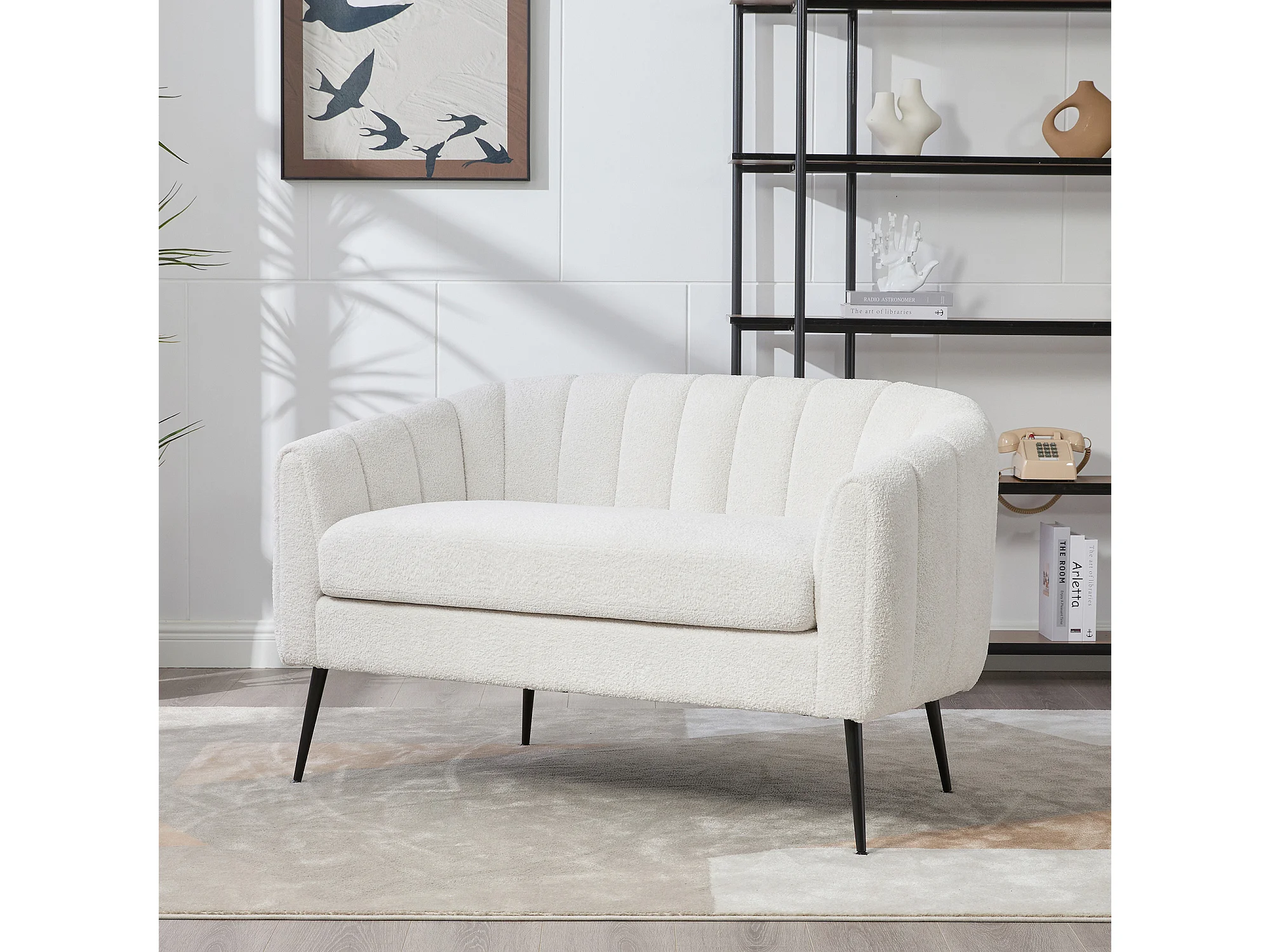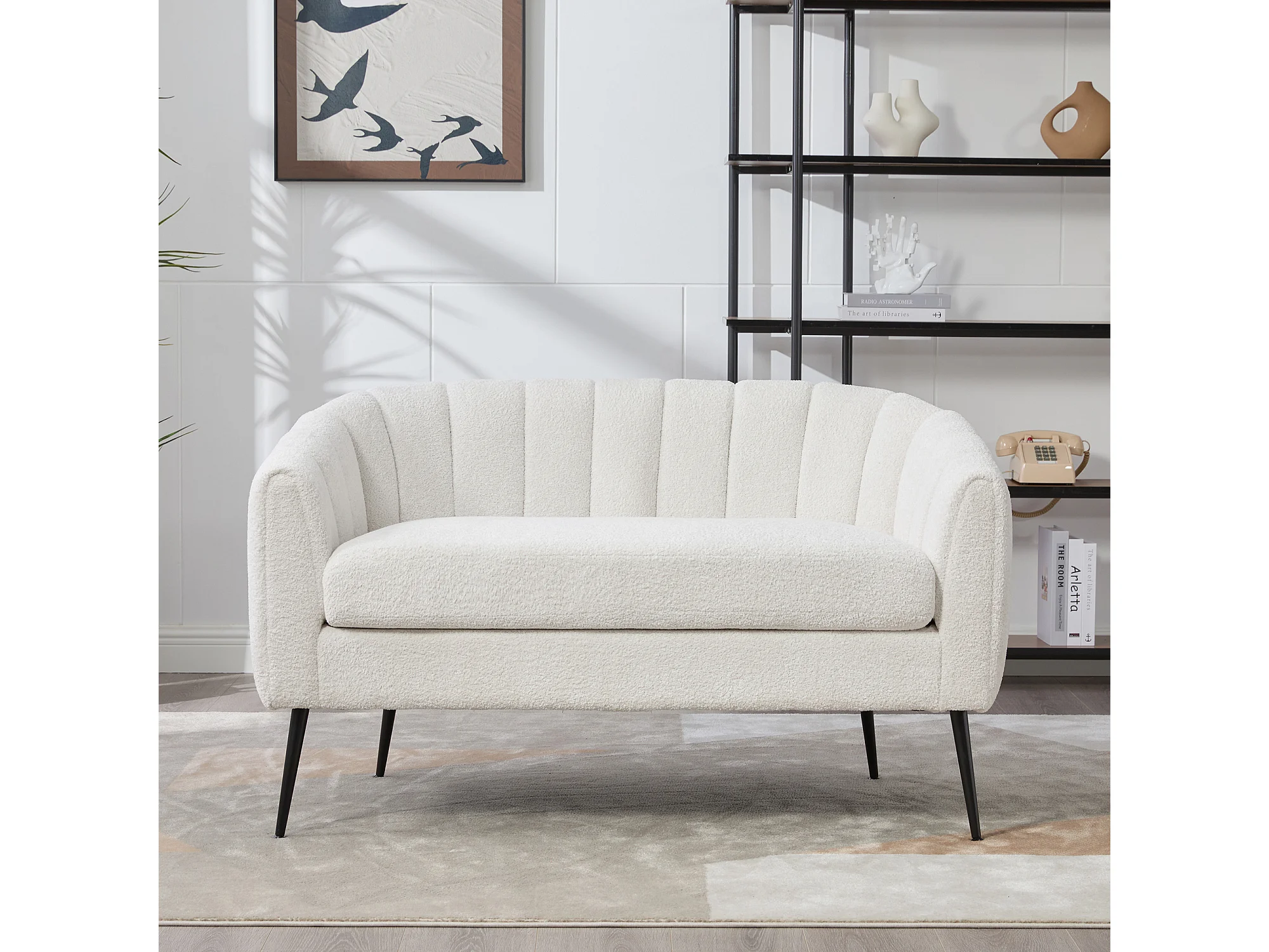 Canapé 2 places petite en tissu chenille ivoire - Pieds métal
