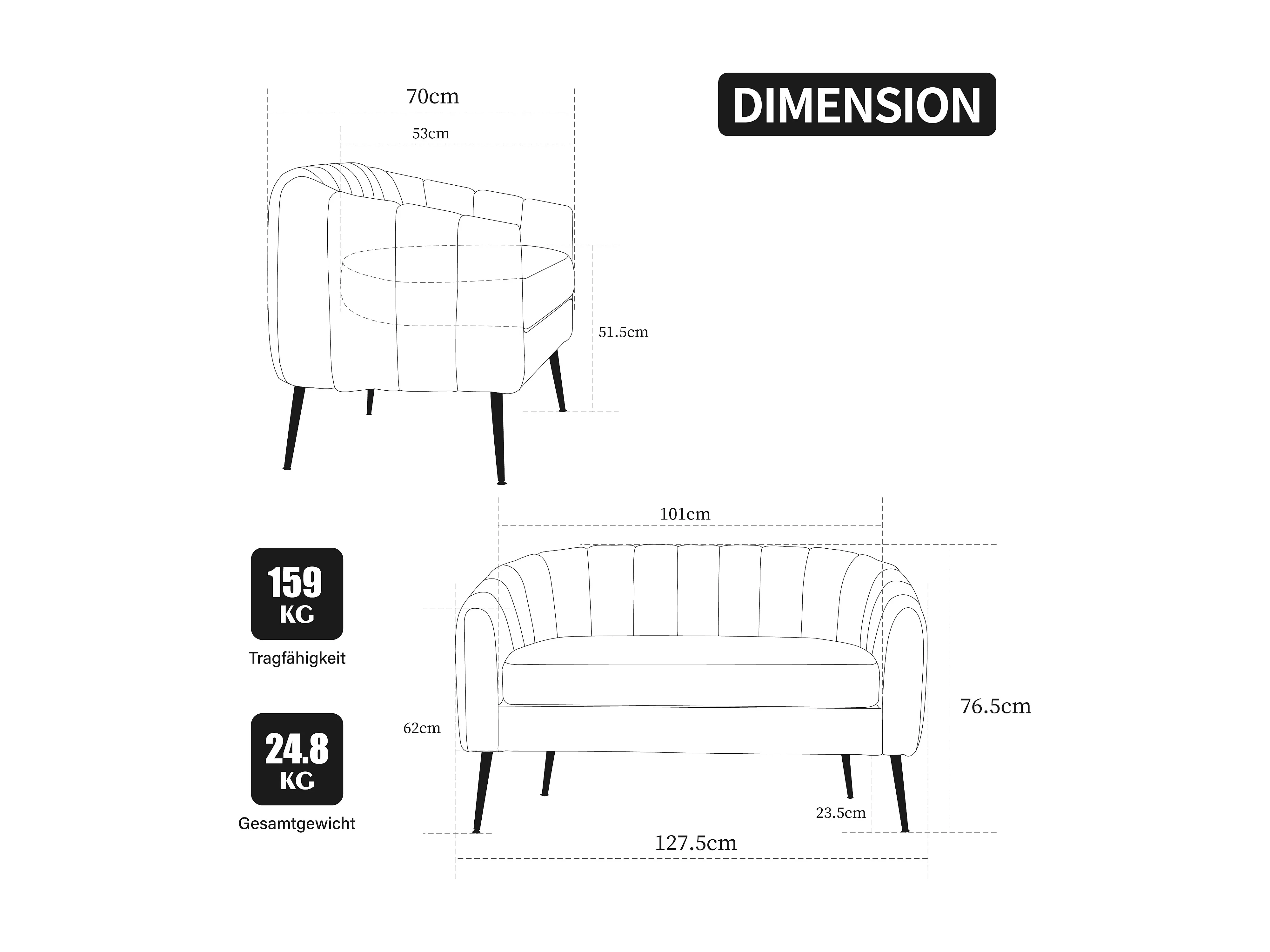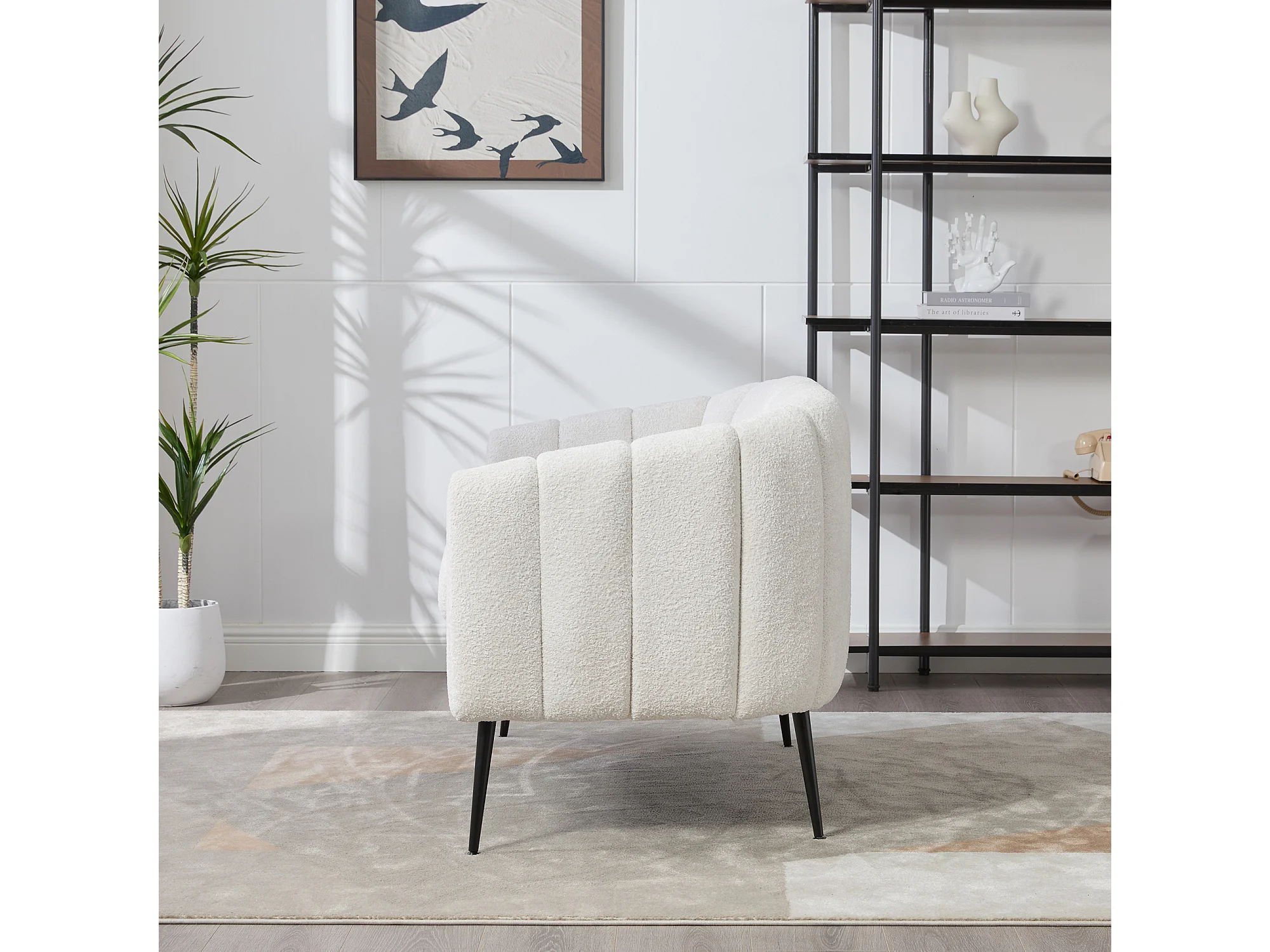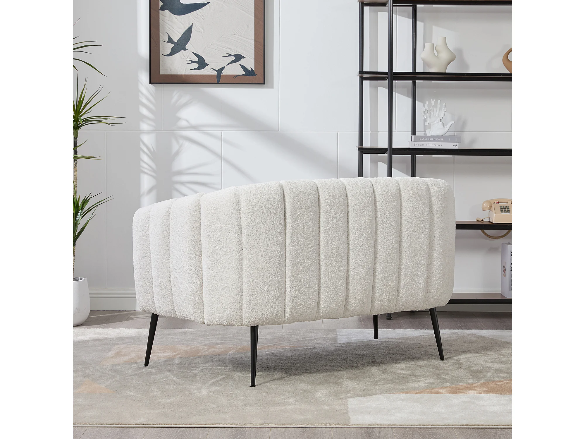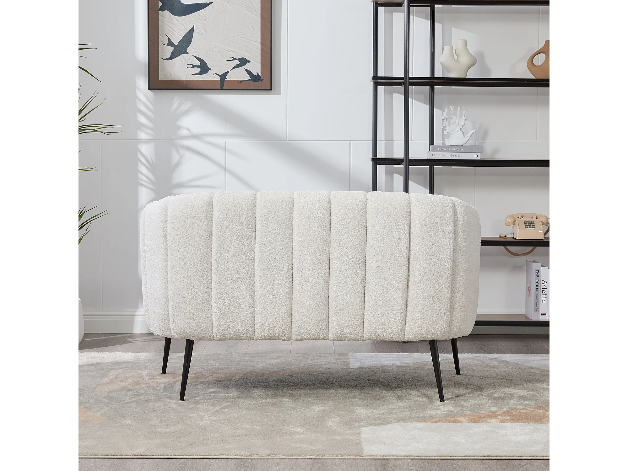 Canapé 2 places petite en tissu chenille ivoire - Pieds métal