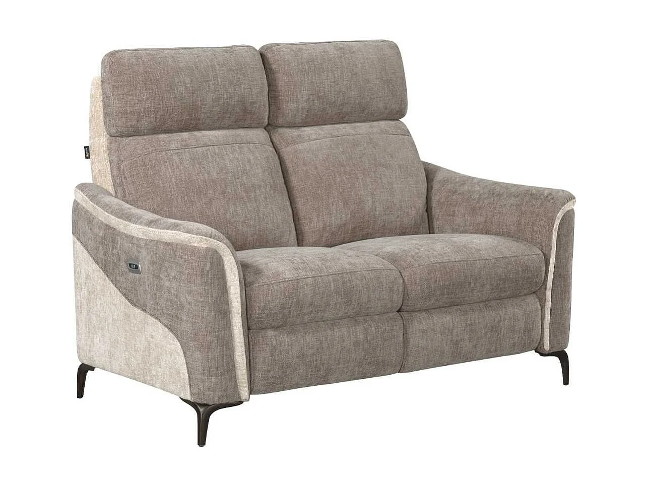 Canapé 2 places relax électrique tissu maillé ultra doux bicolore moka et beige - SOLLYS