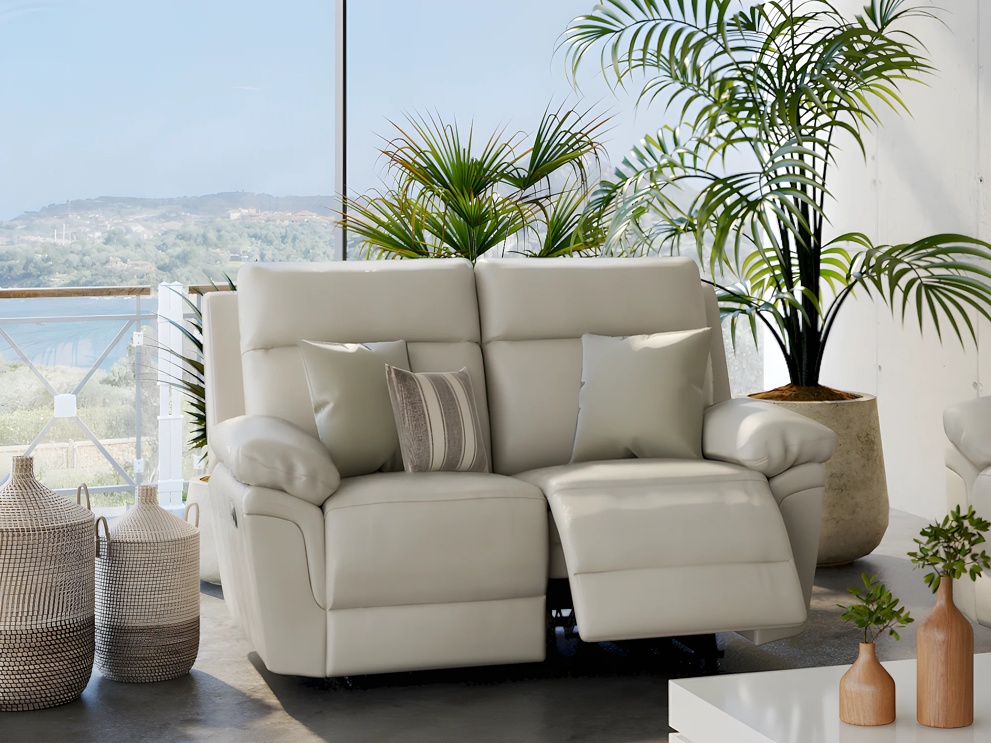 Canapé 2 places relax en cuir de buffle PAKITA - Ivoire