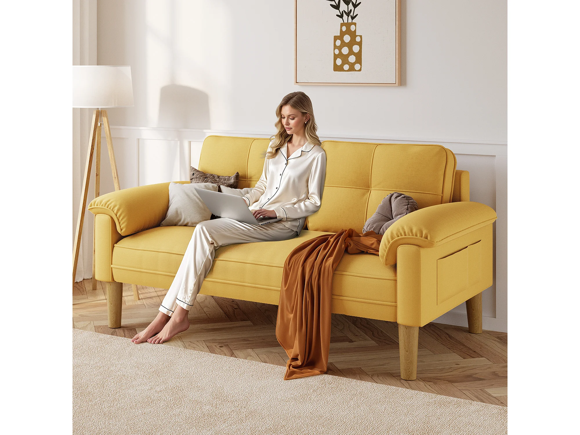 Canapé 2 Places Relax Tissu Jaune,145 x 77 x 77 cm