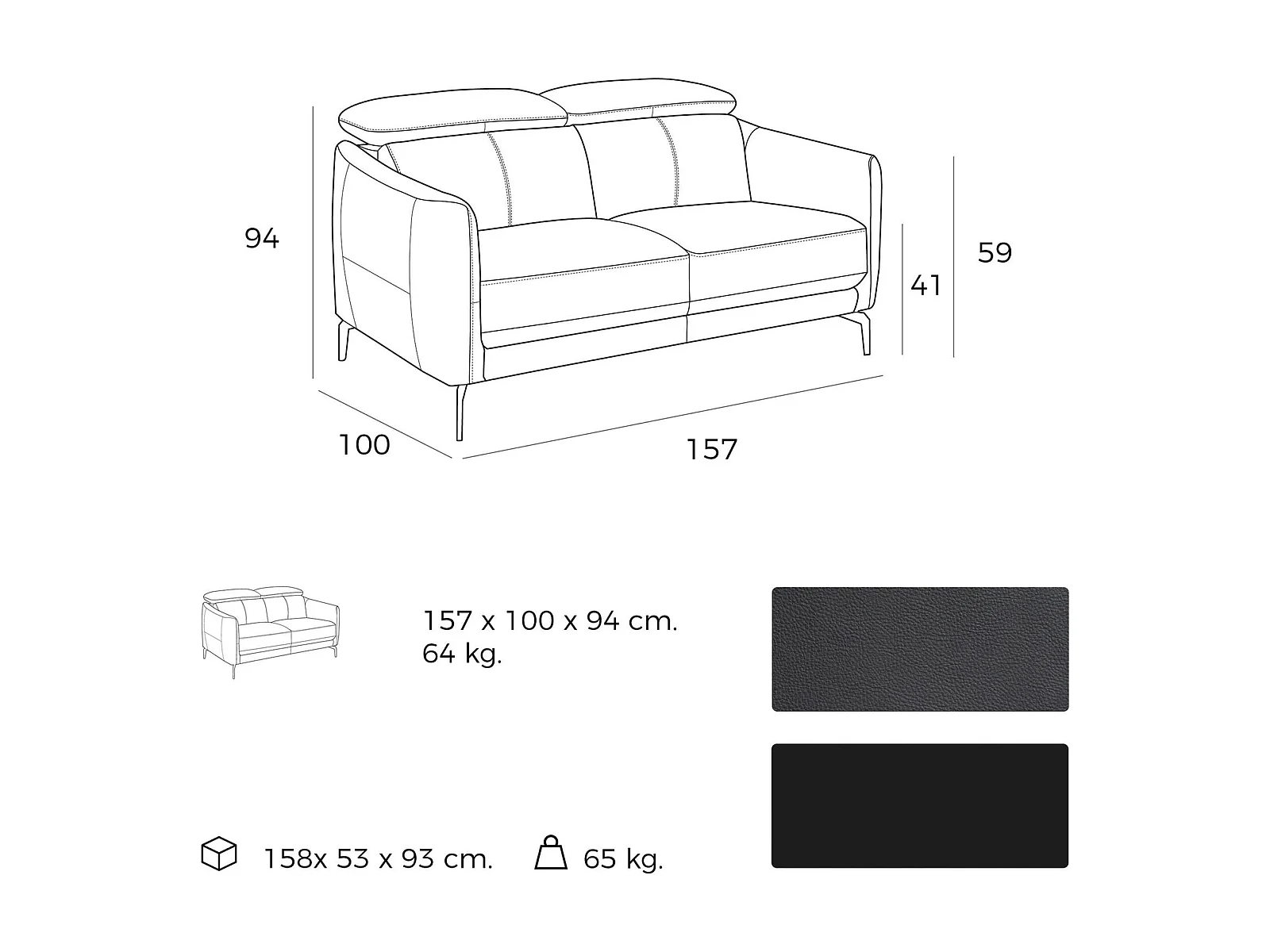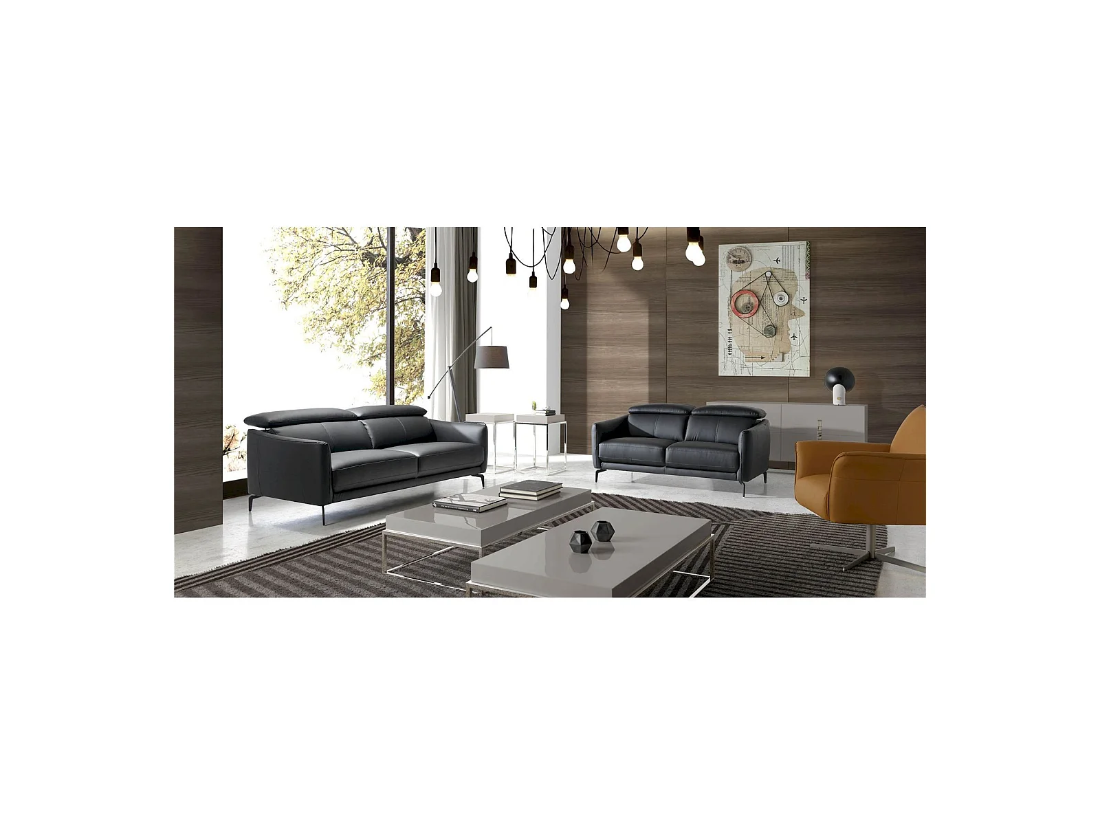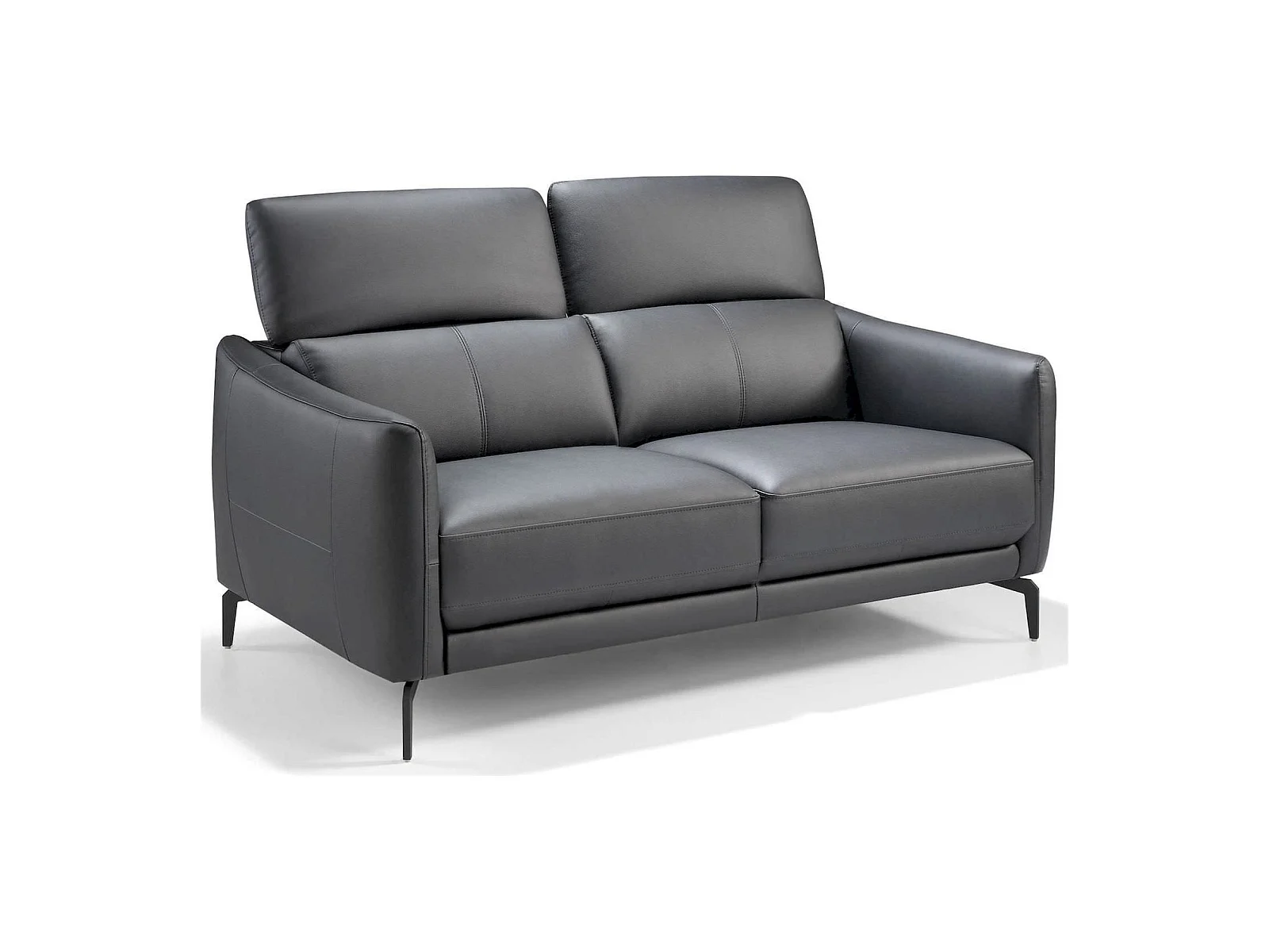 Canapé 2 places rembourré en cuir pieds acier appui-tête à 5 positions