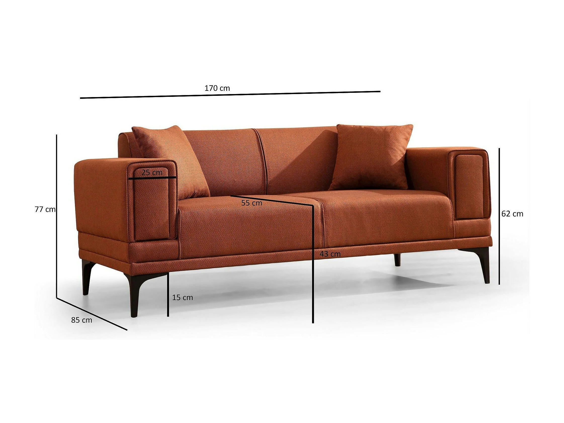Canapé 2 places rouille, accoudoirs matelassés 170 cm LUCCA