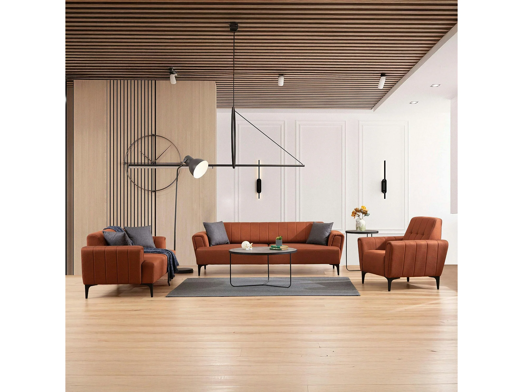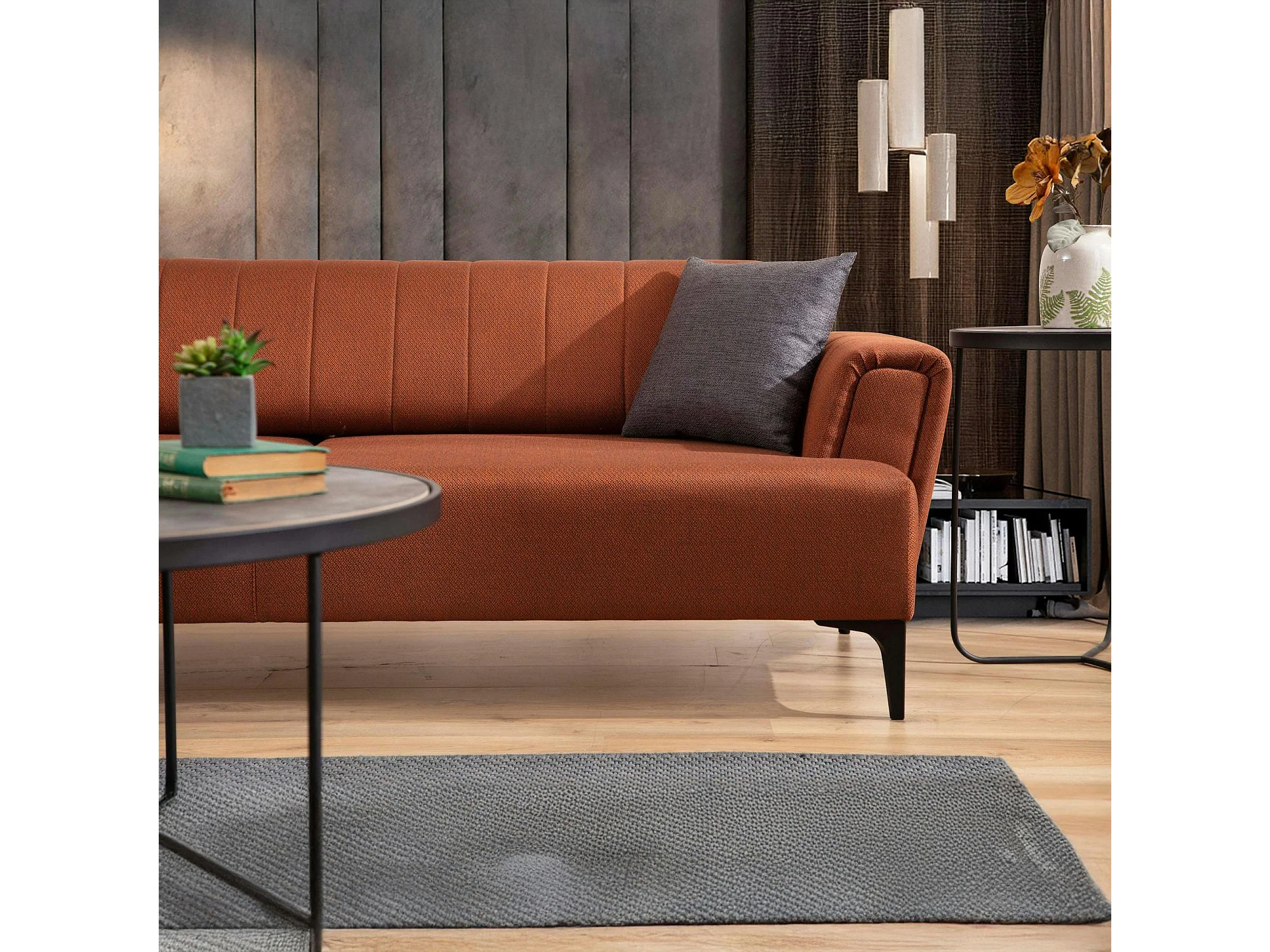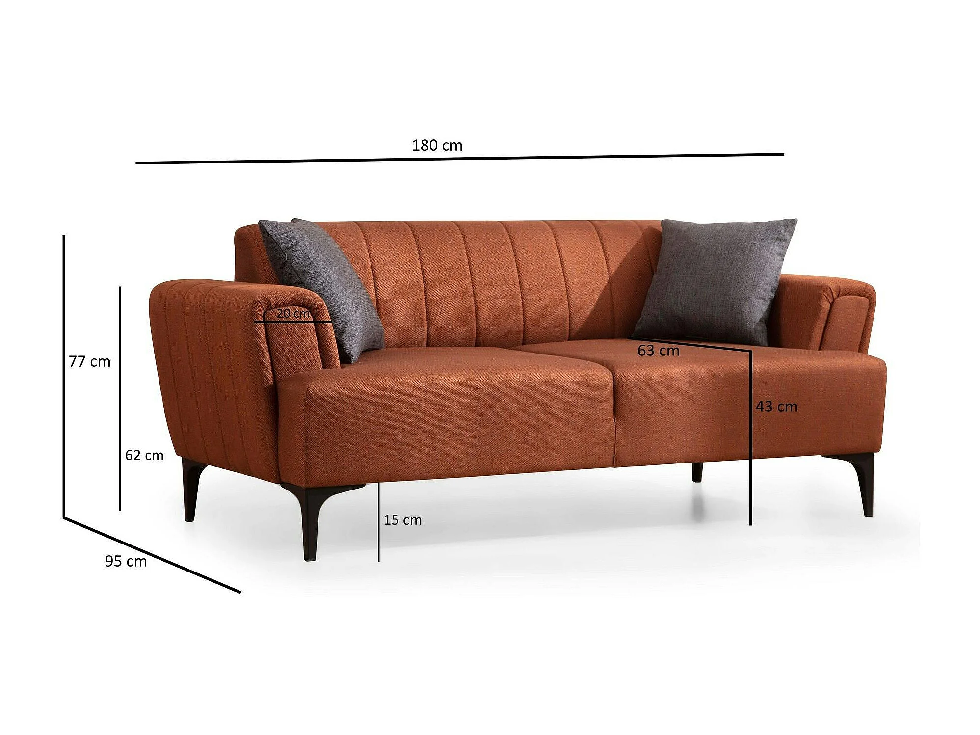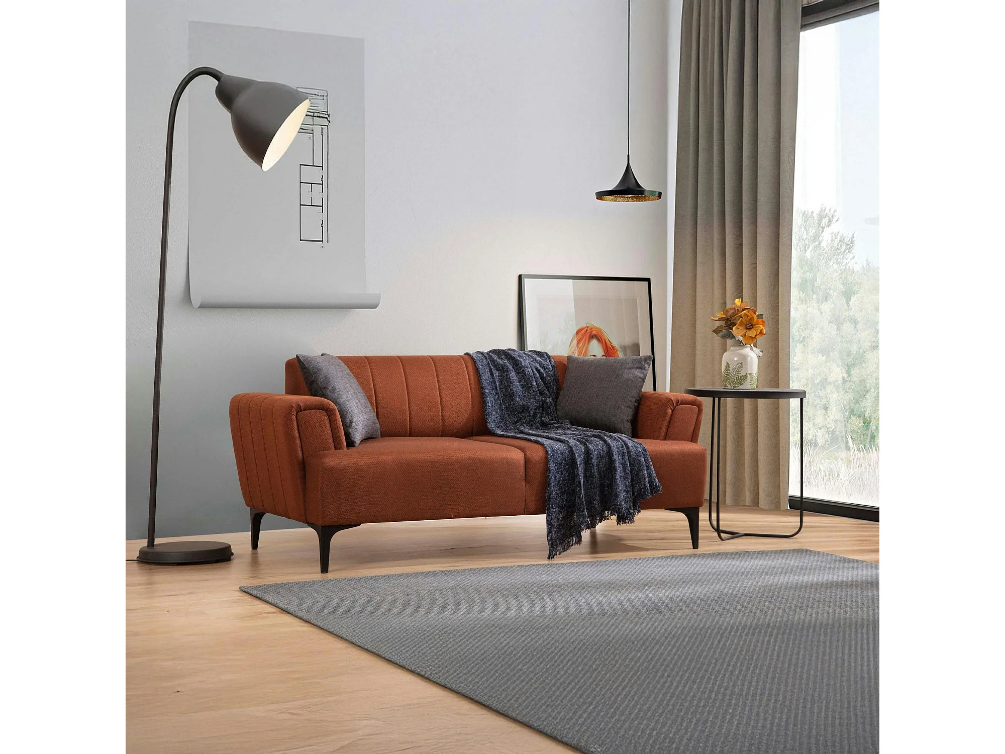 Canapé 2 places rouille, dossier à coutures verticales LUCCA