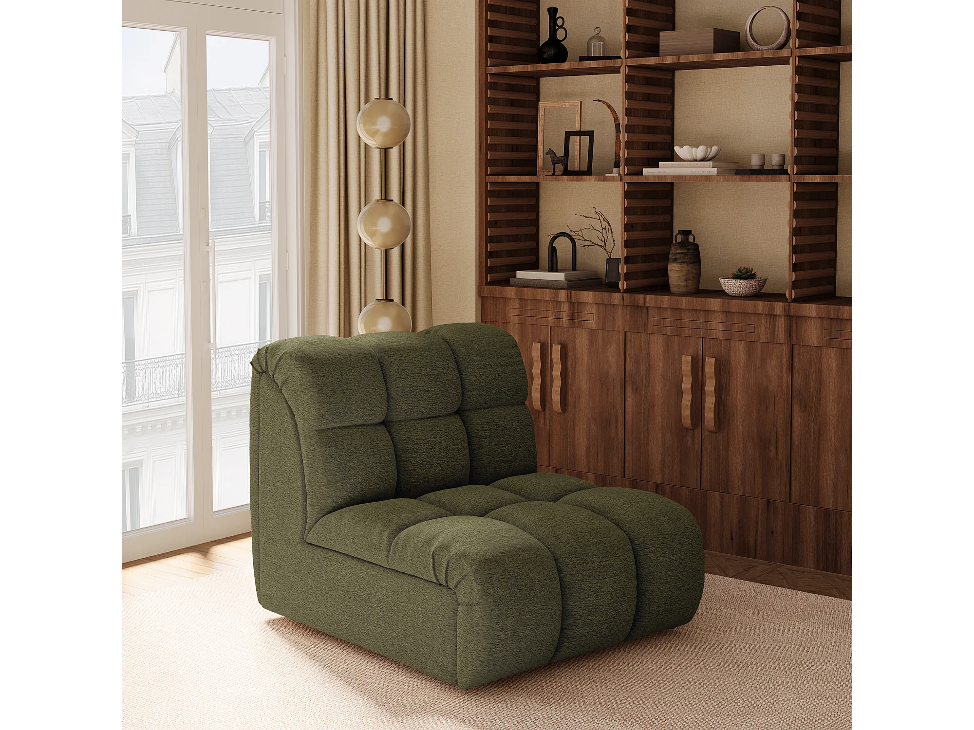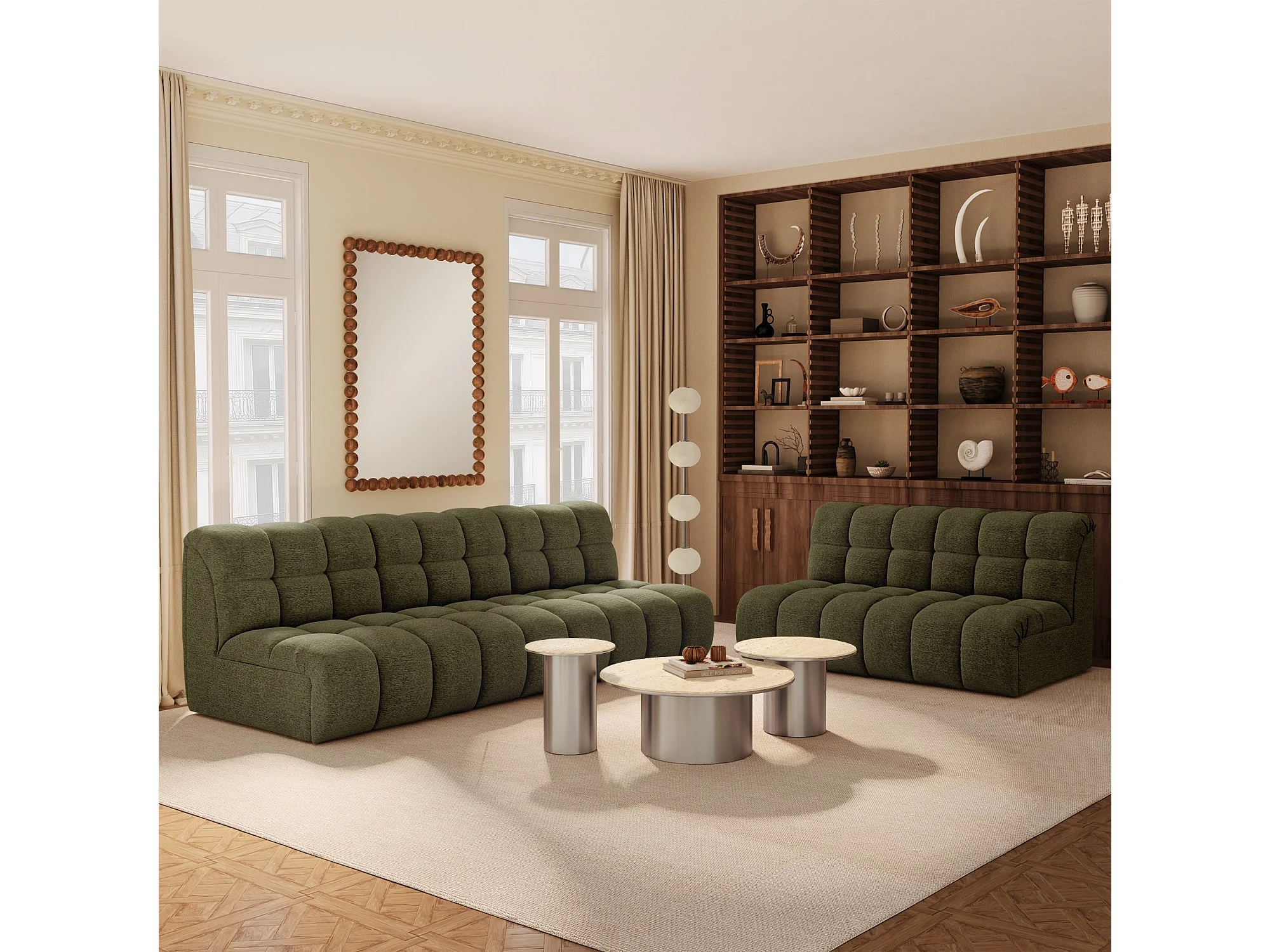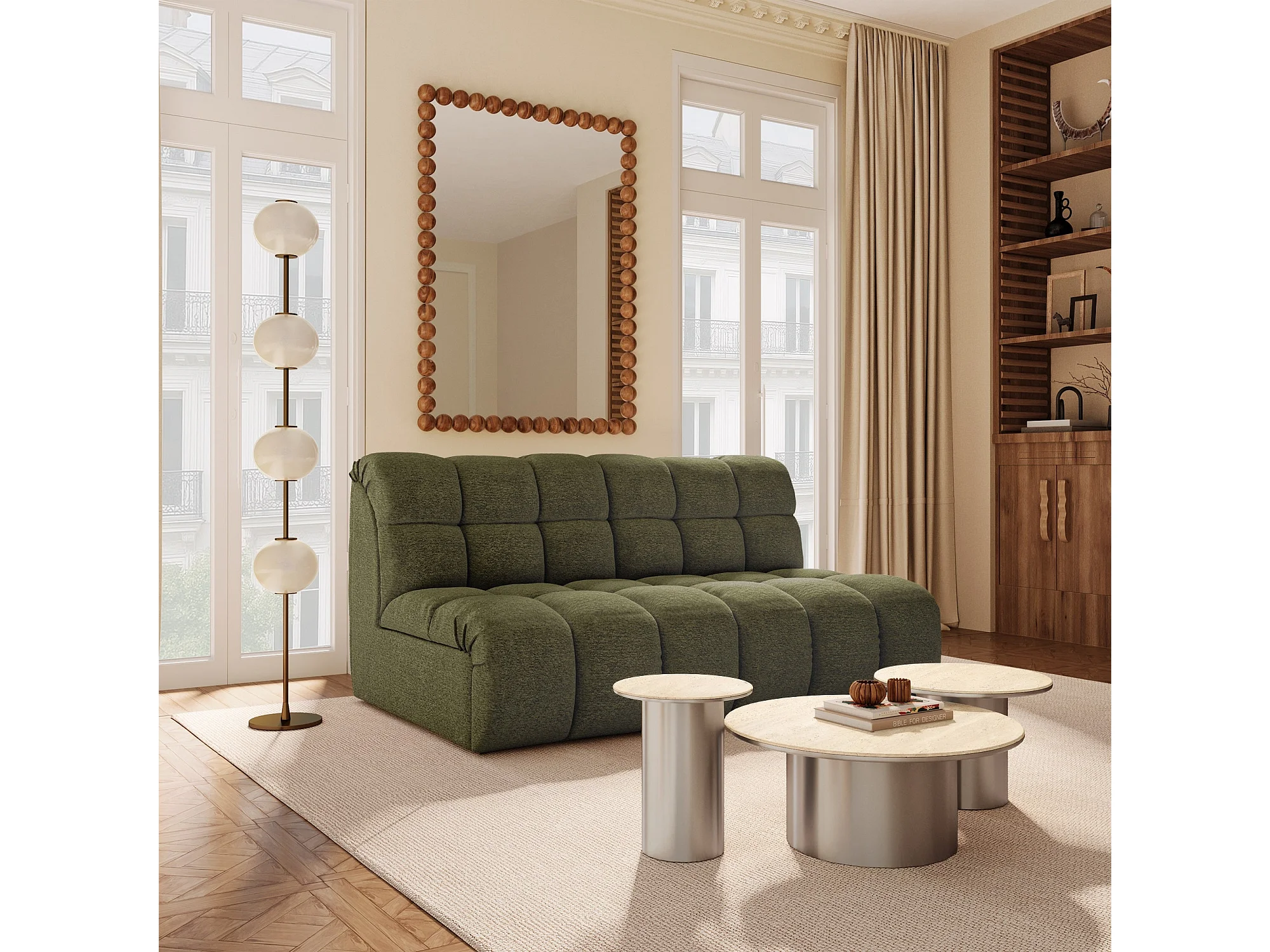 Canapé 2 places SEVEN en Tissu bouclette Vert olive