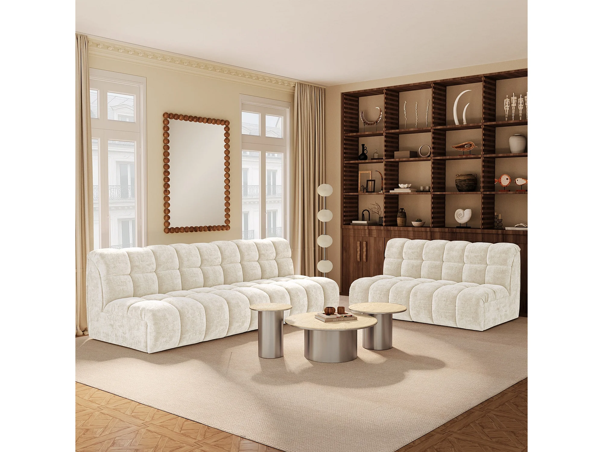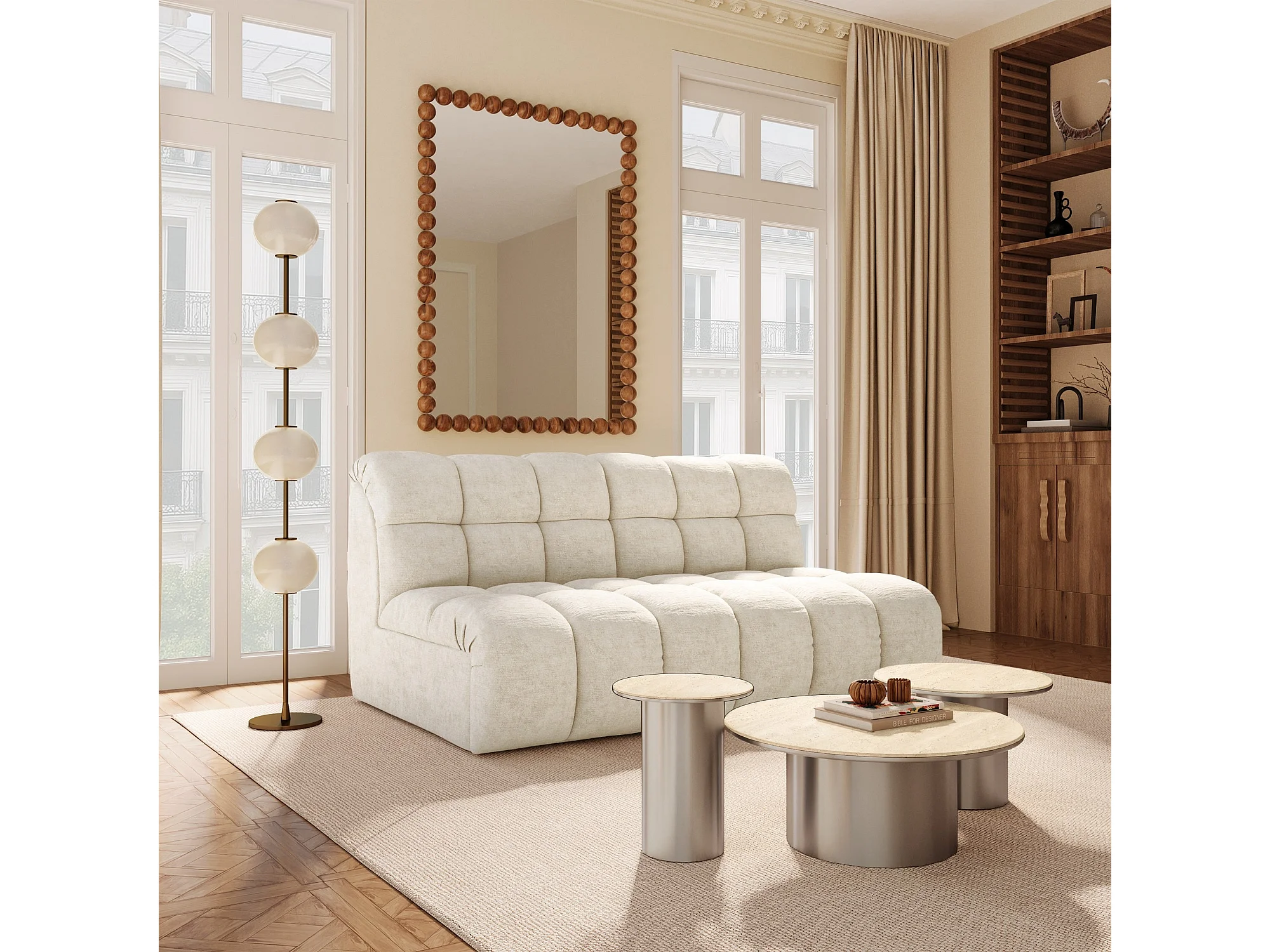 Canapé 2 places SEVEN en Velours gaufré Crème