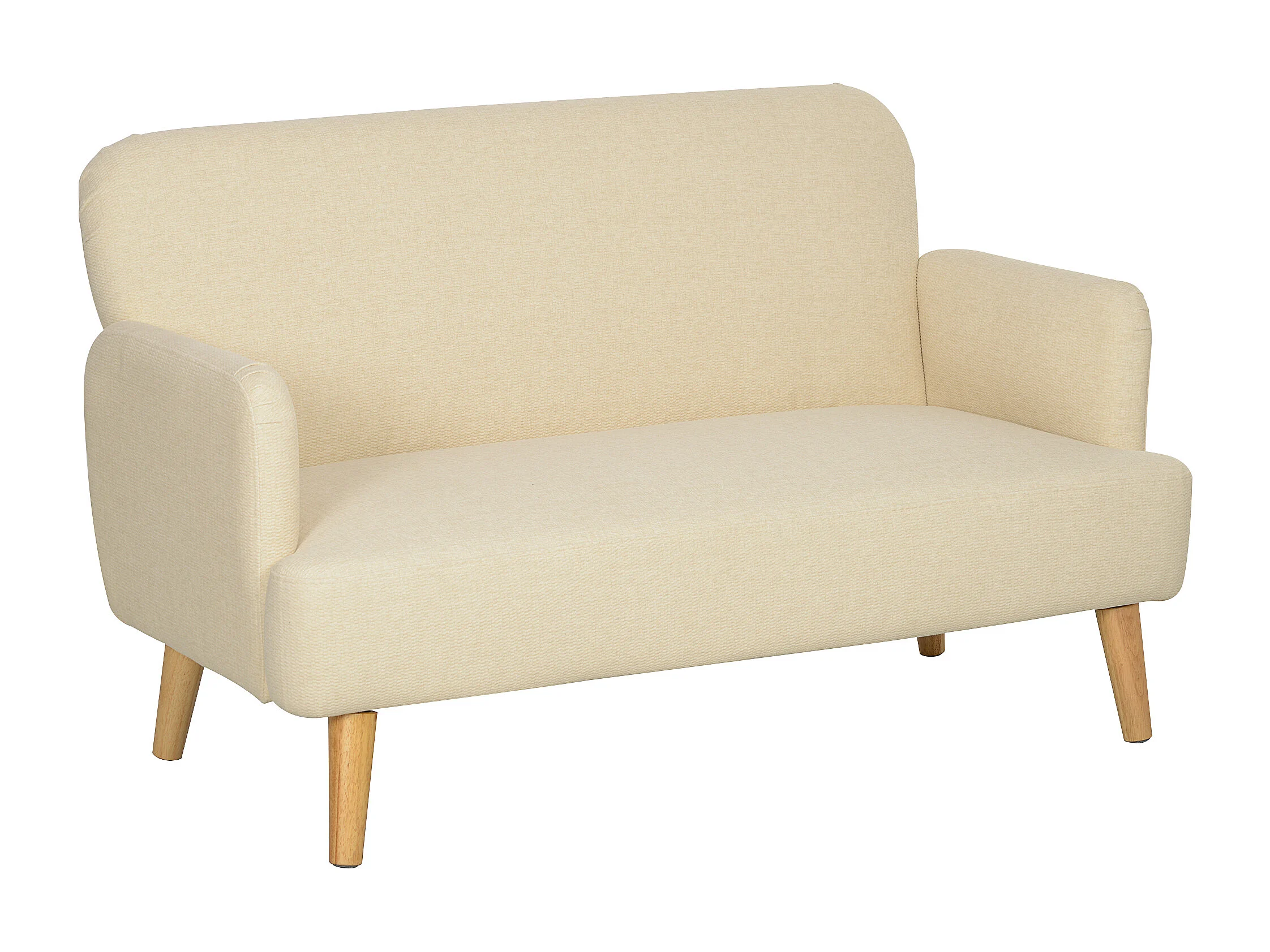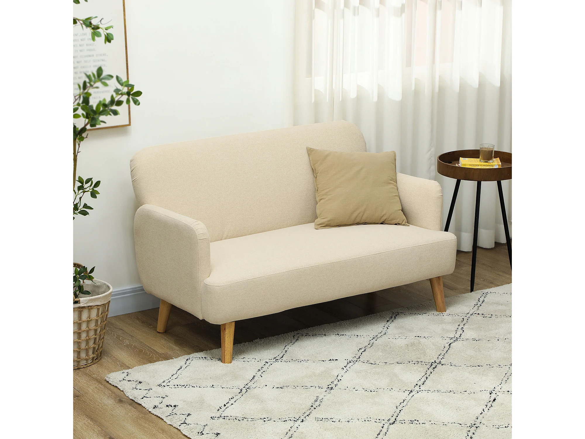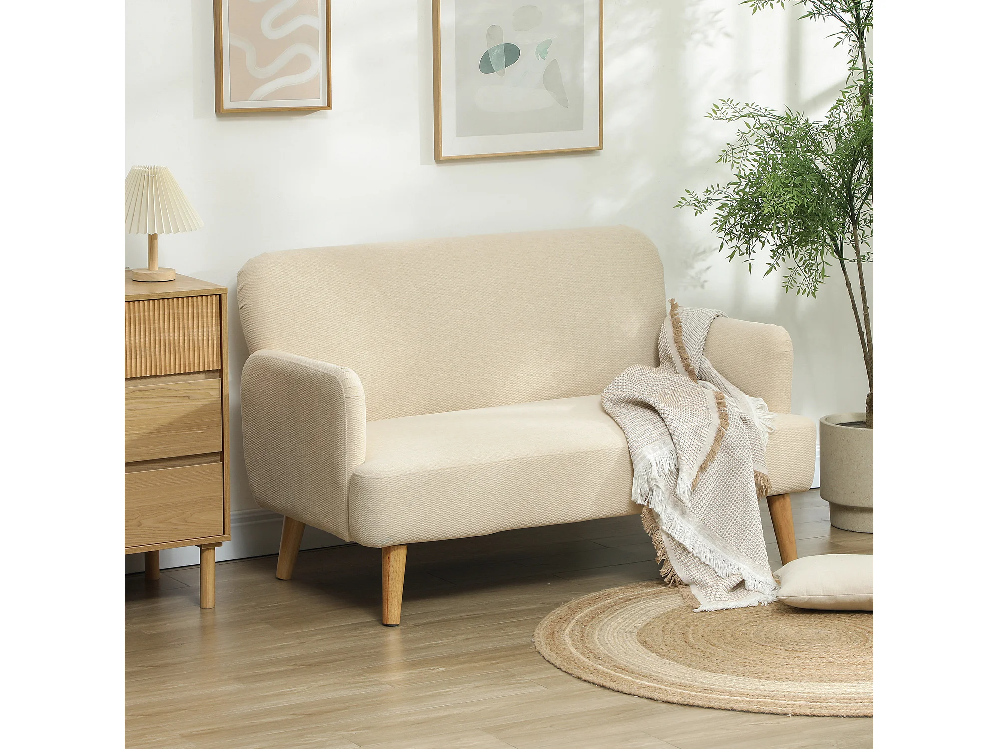 Canapé 2 places style scandinave - canapé droit fixe - piètement bois hévéa tissu beige