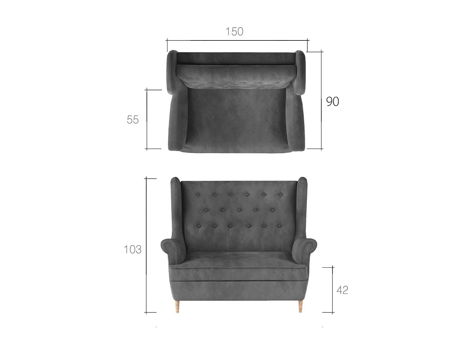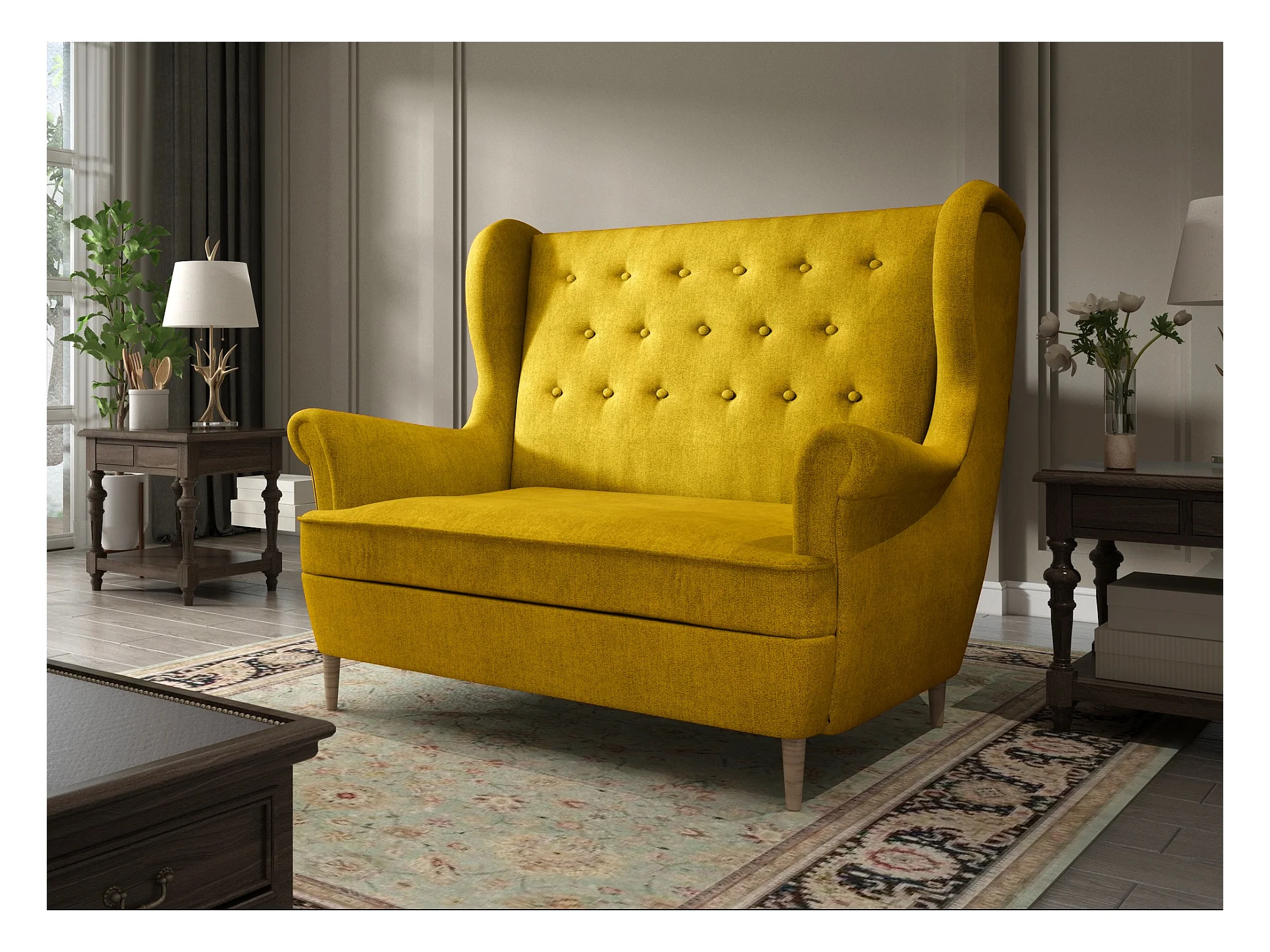 Canapé 2 places tissu jaune capitonné Lizzi 150cm