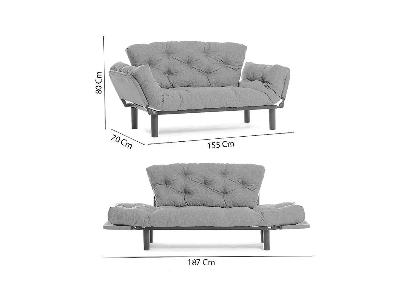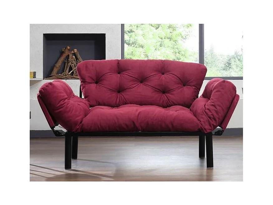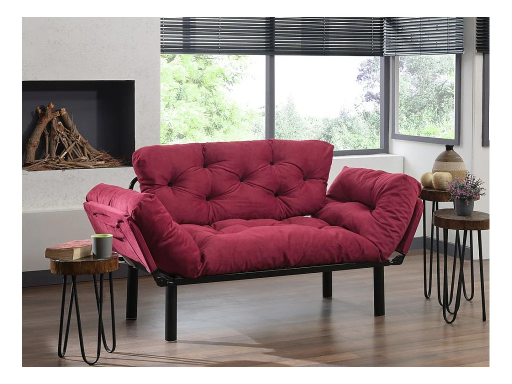 Canapé 2 places transformable en lit tissu bordeaux Pliaz 155cm