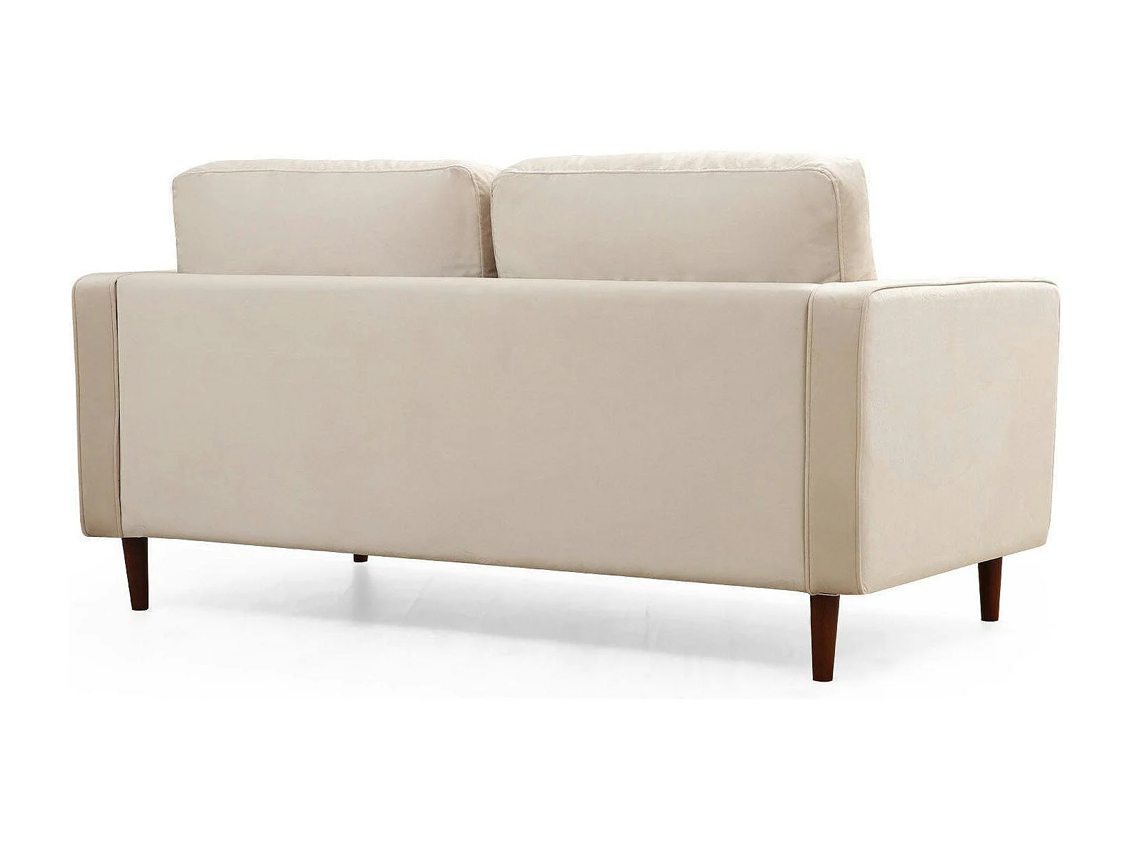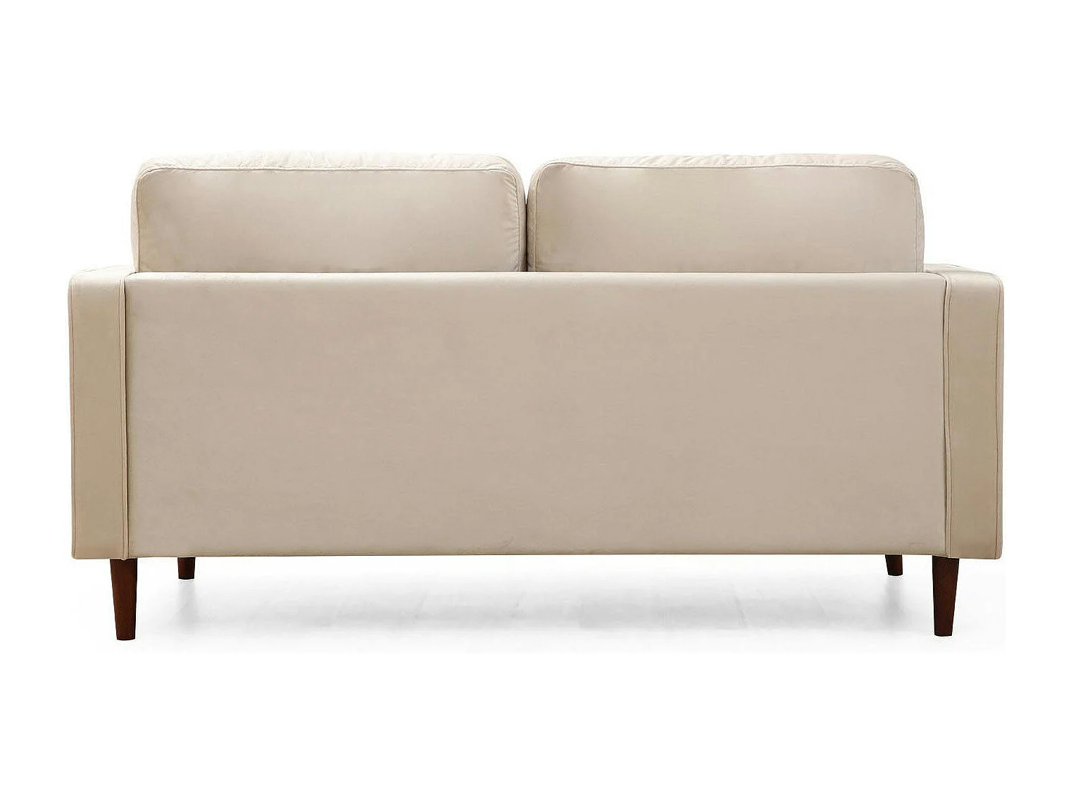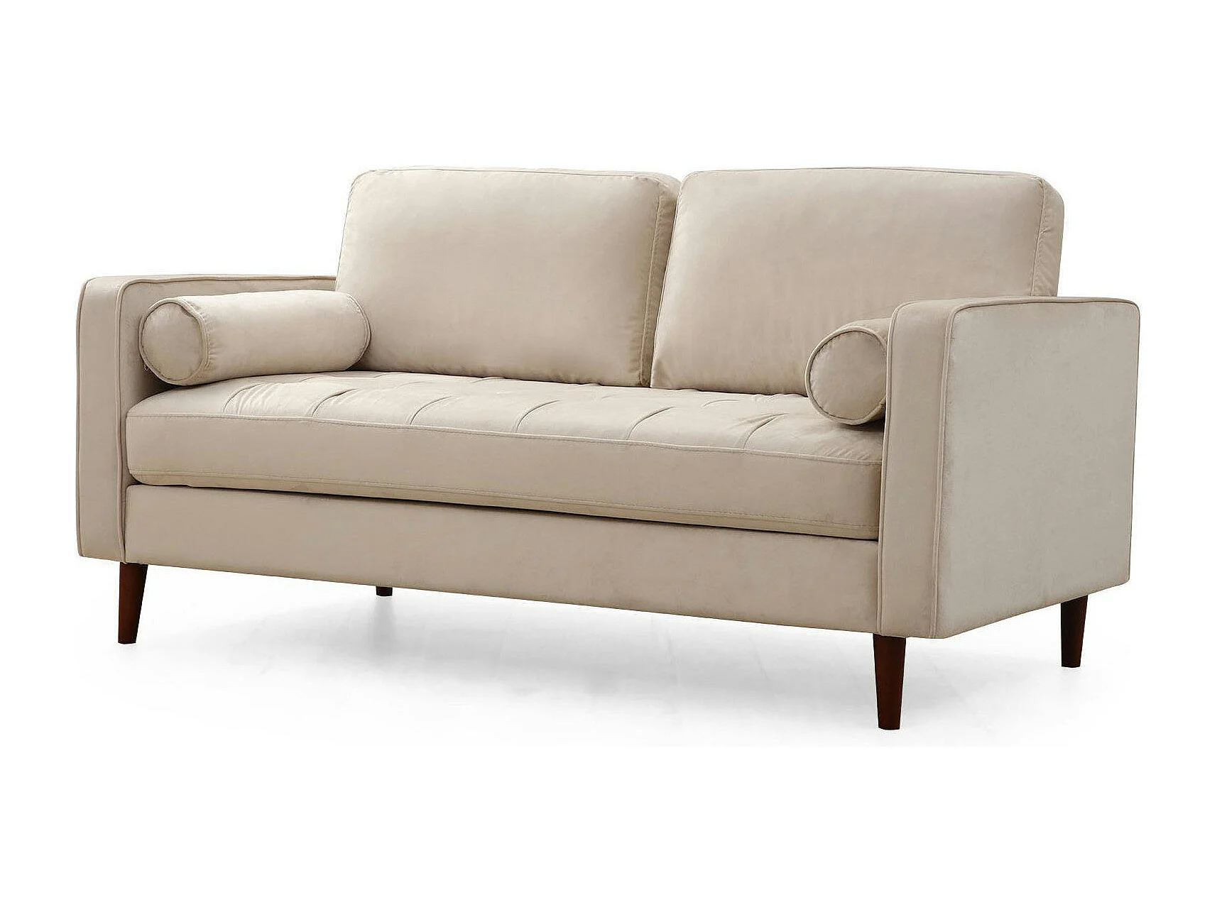 Canapé 2 places velours beige crème, coussins polochons CHIBA