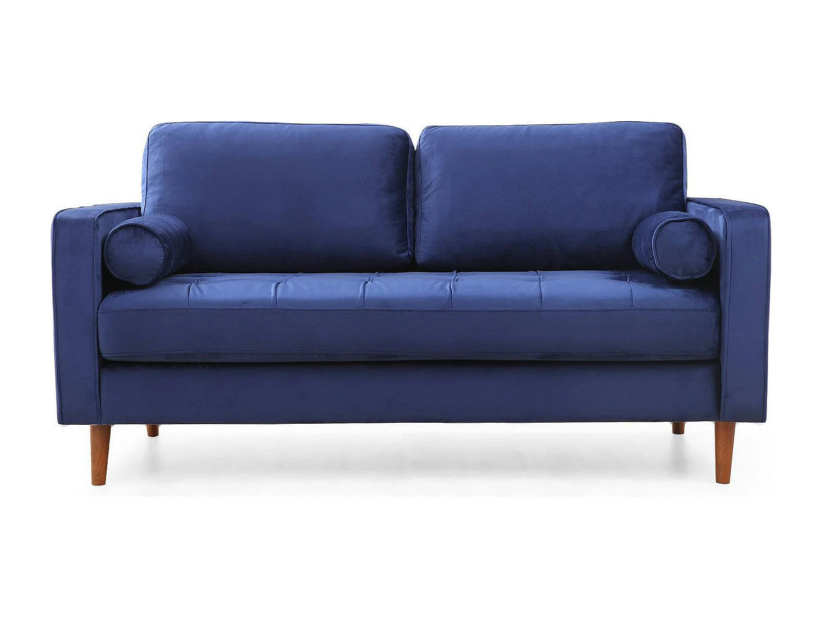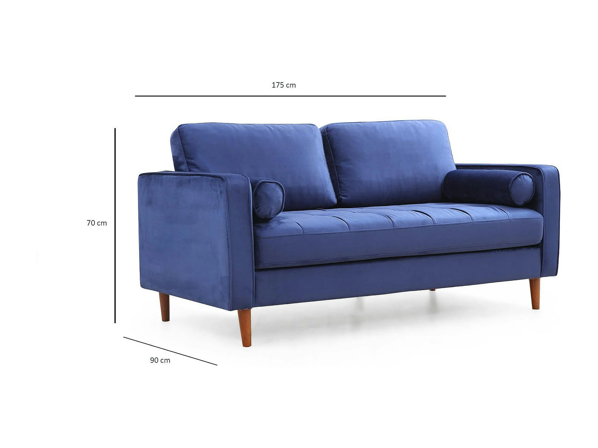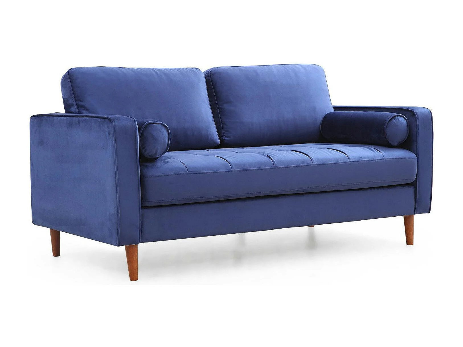 Canapé 2 places velours bleu avec coussins polochons CHIBA