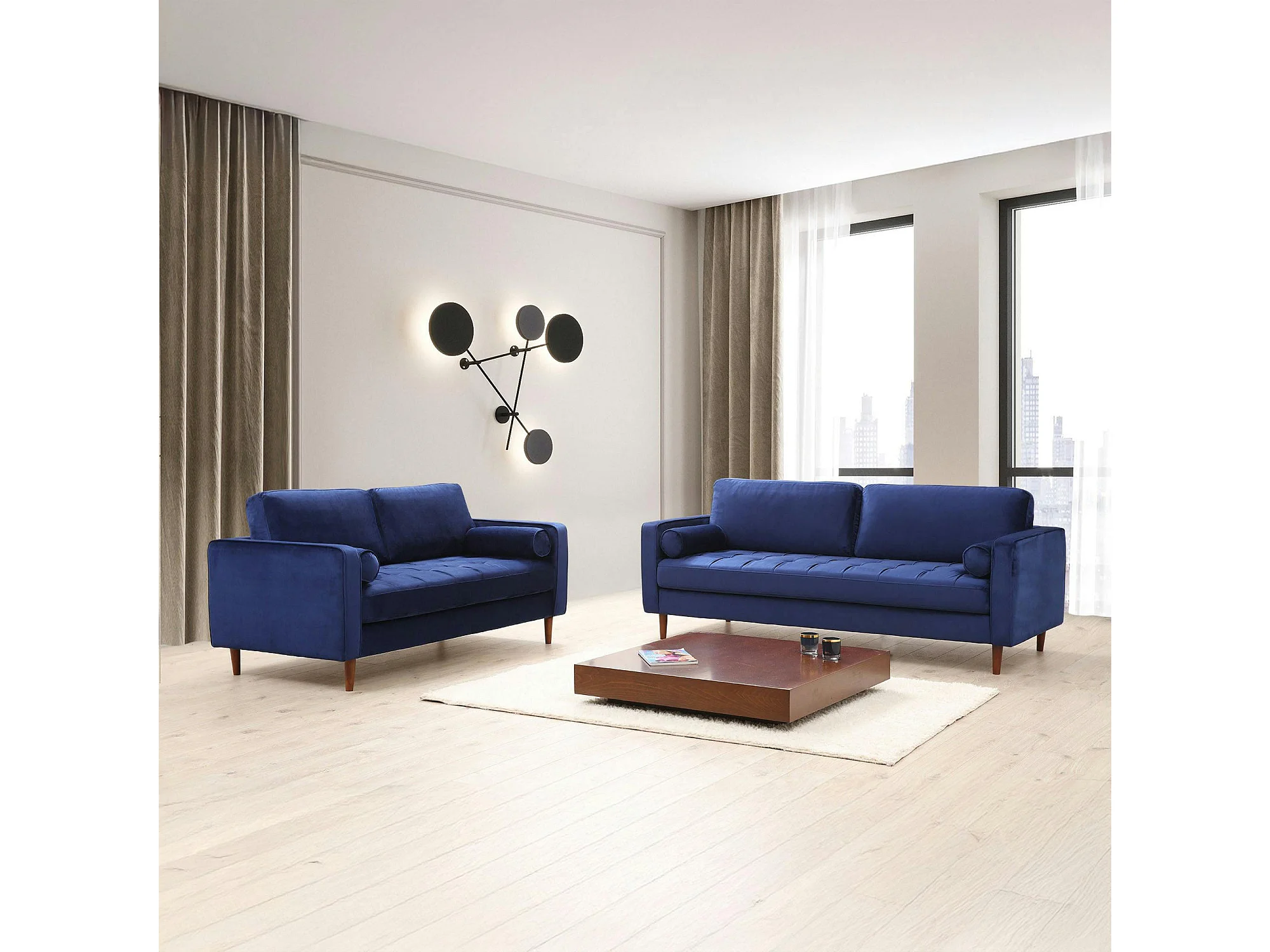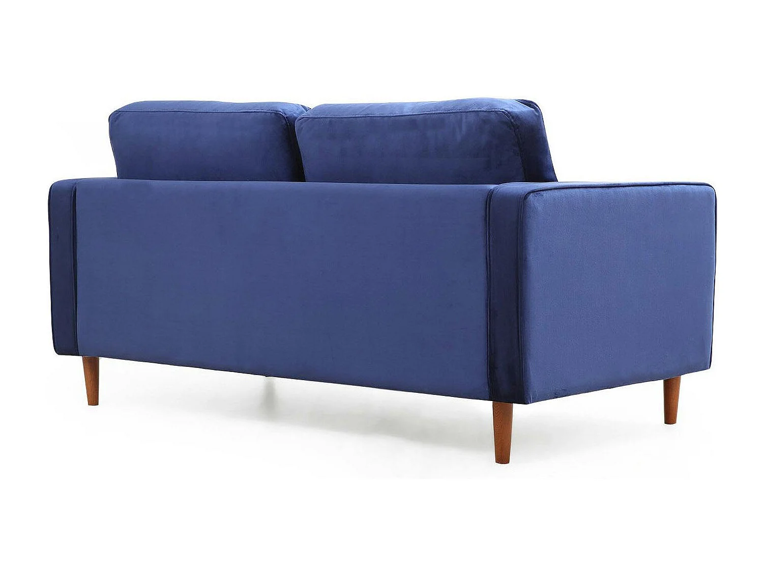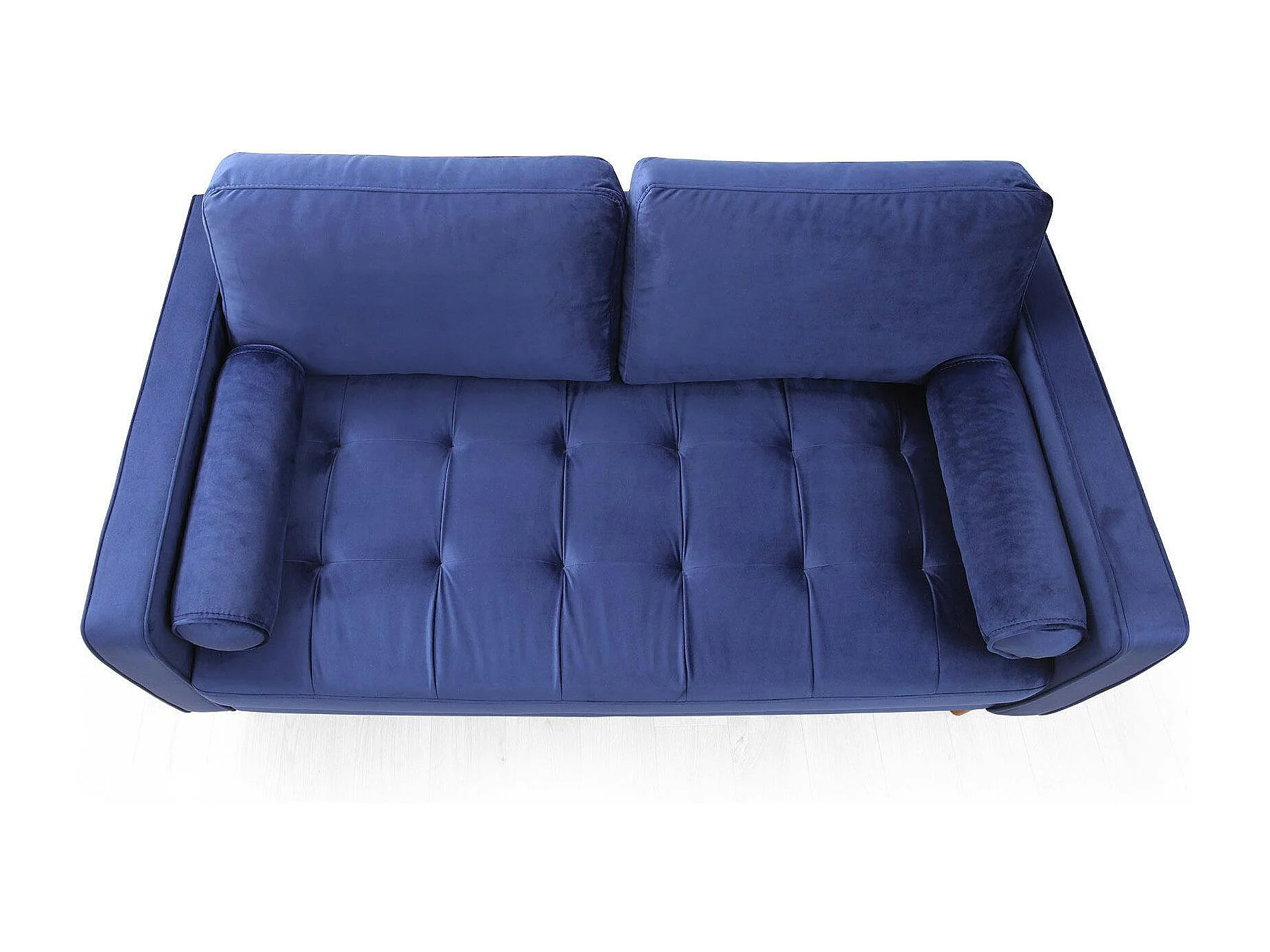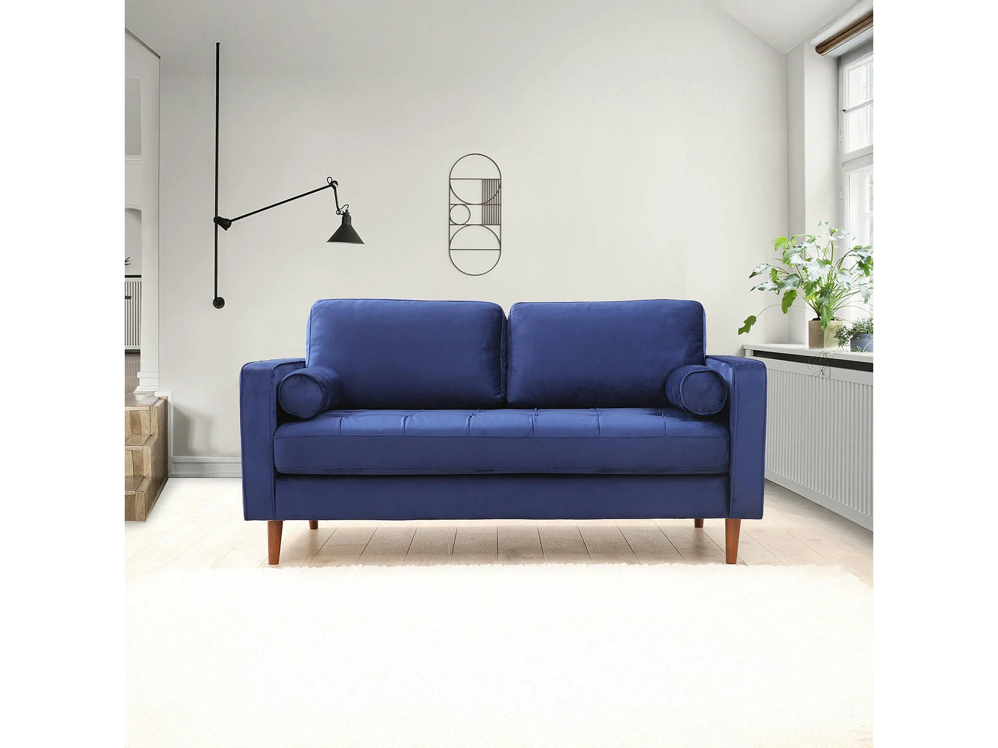 Canapé 2 places velours bleu avec coussins polochons CHIBA