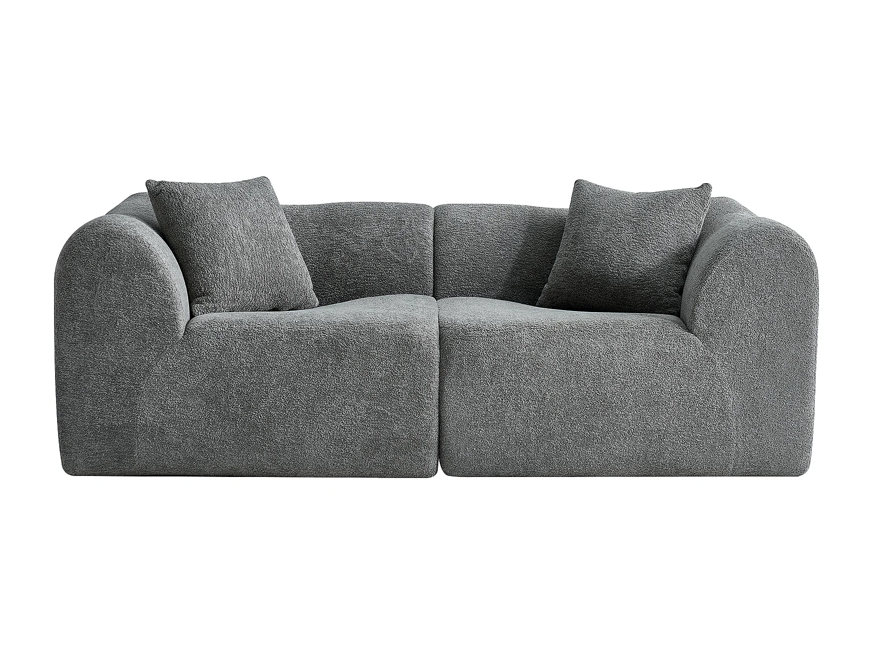 Canapé 2 places velours gris avec coussins - Pour salon, bureau ou l'appartement