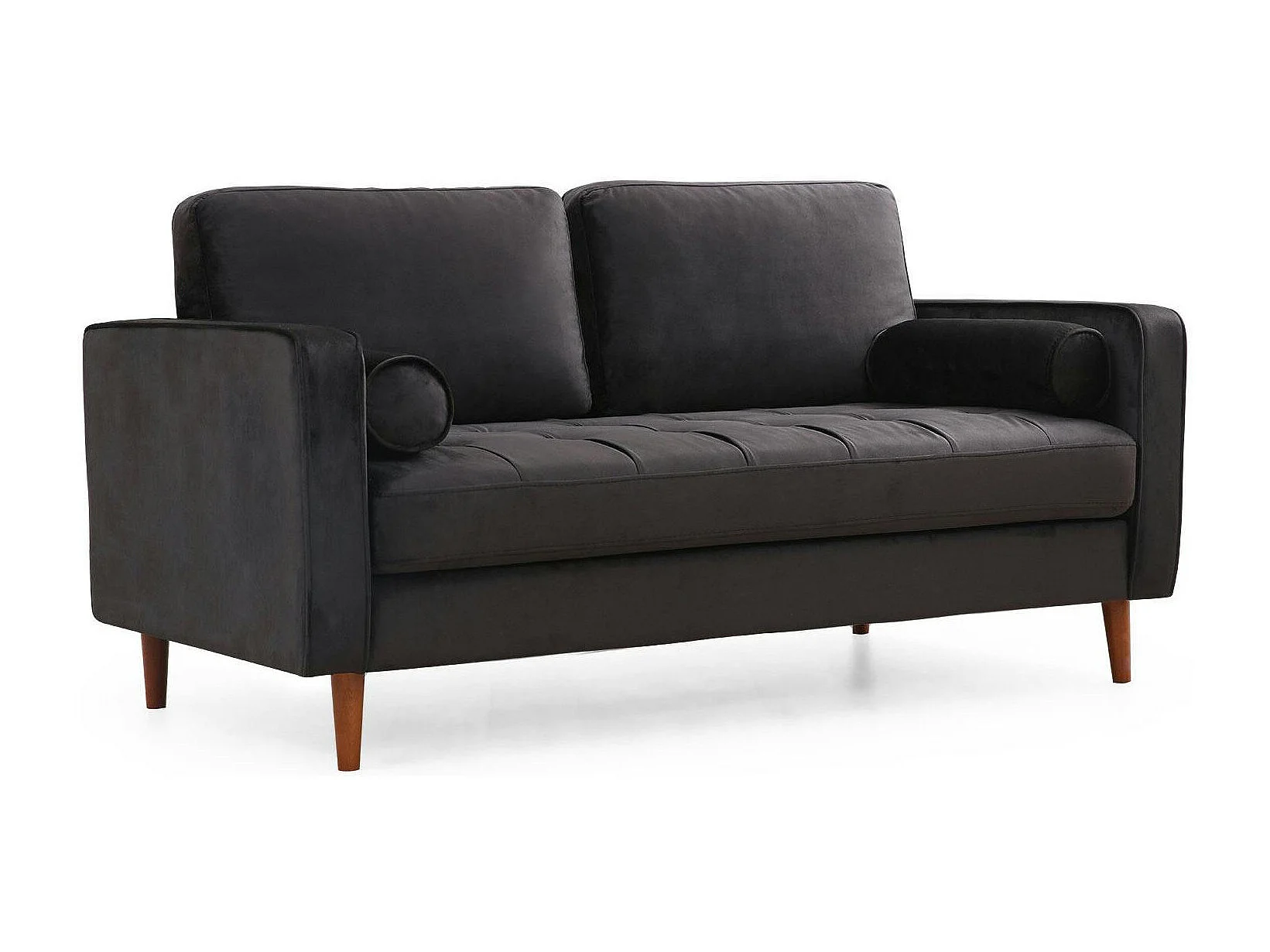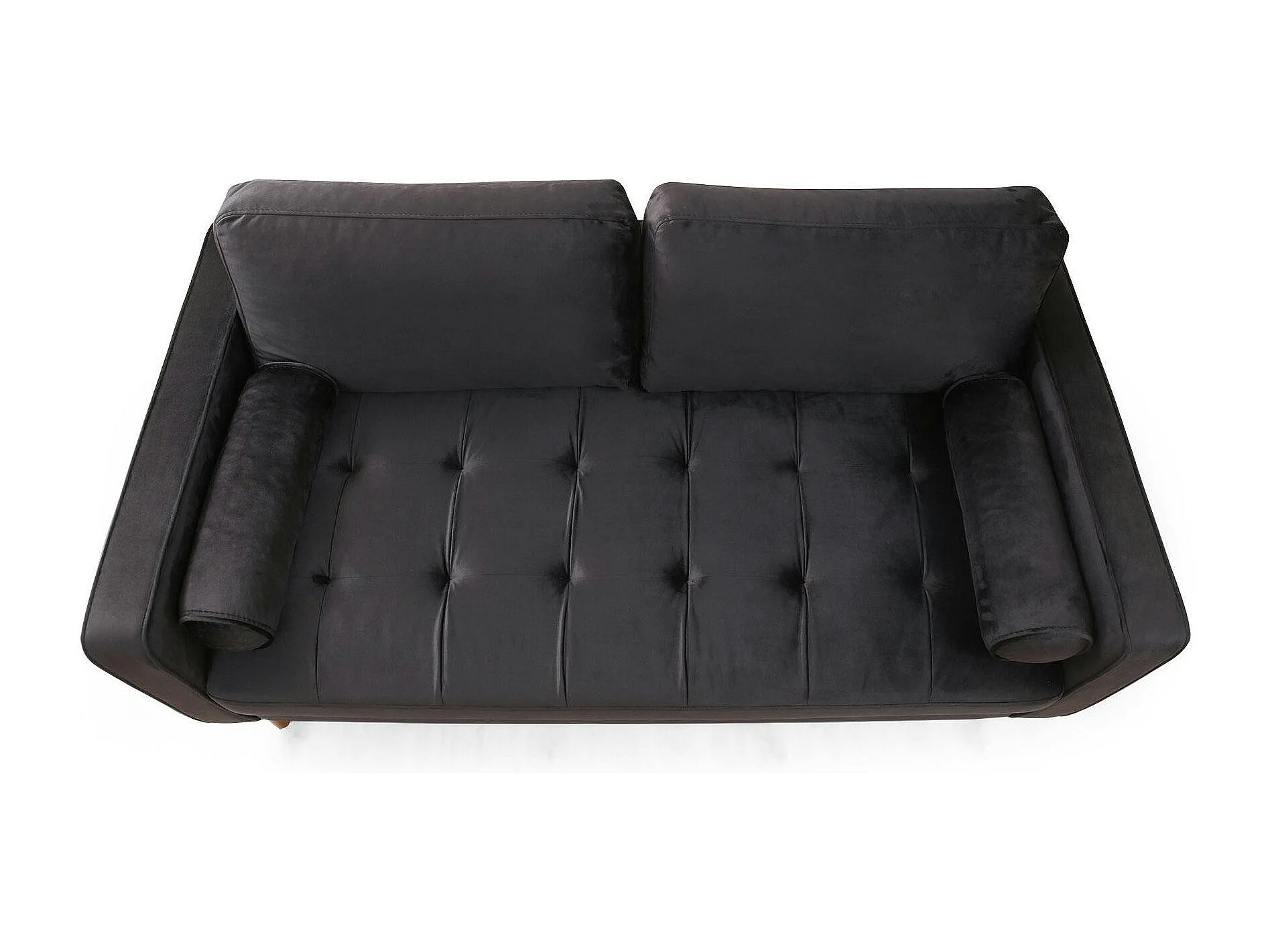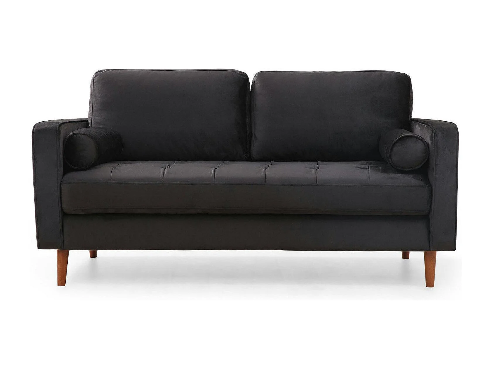 Canapé 2 places velours noir avec coussins polochons CHIBA