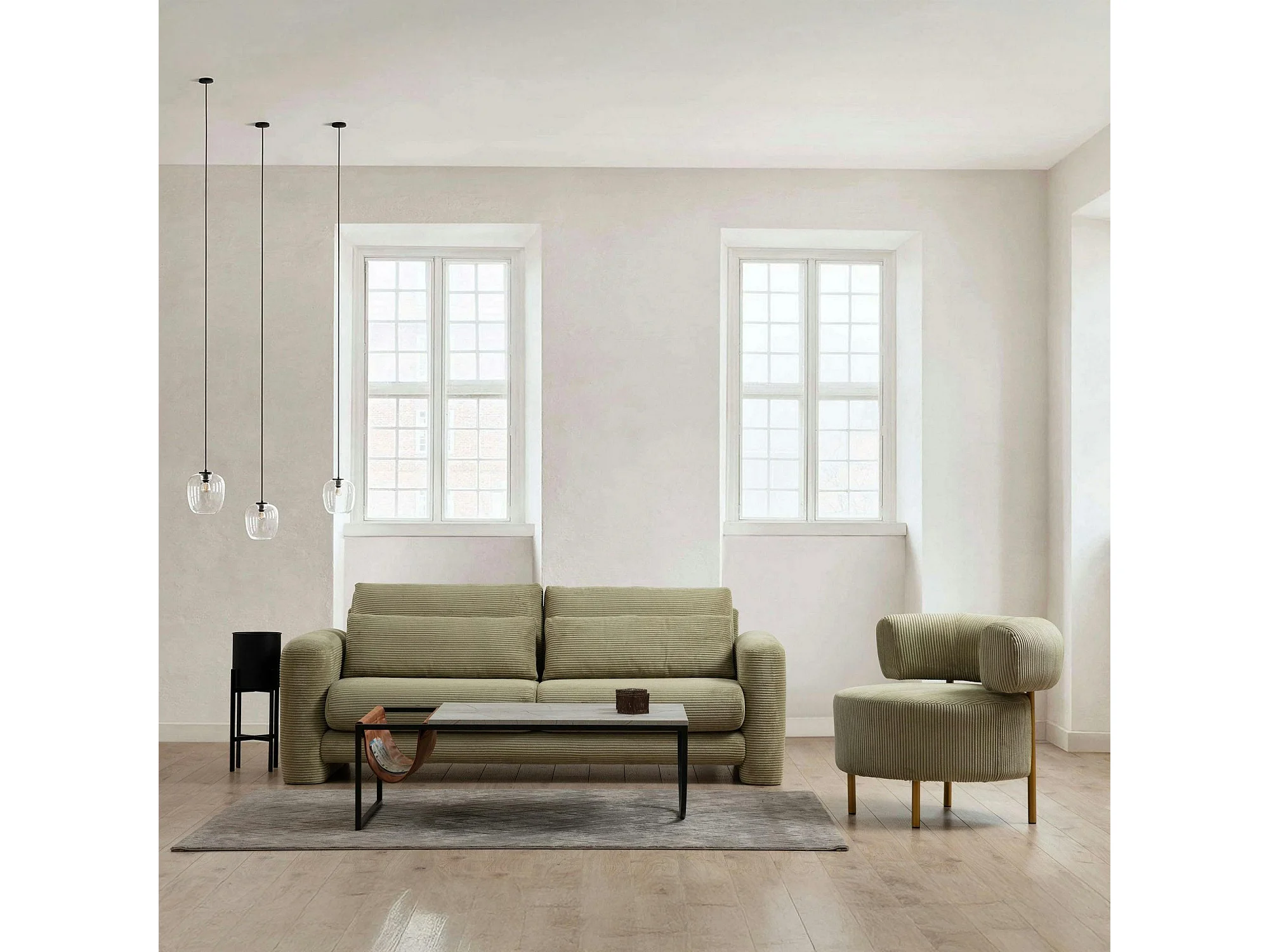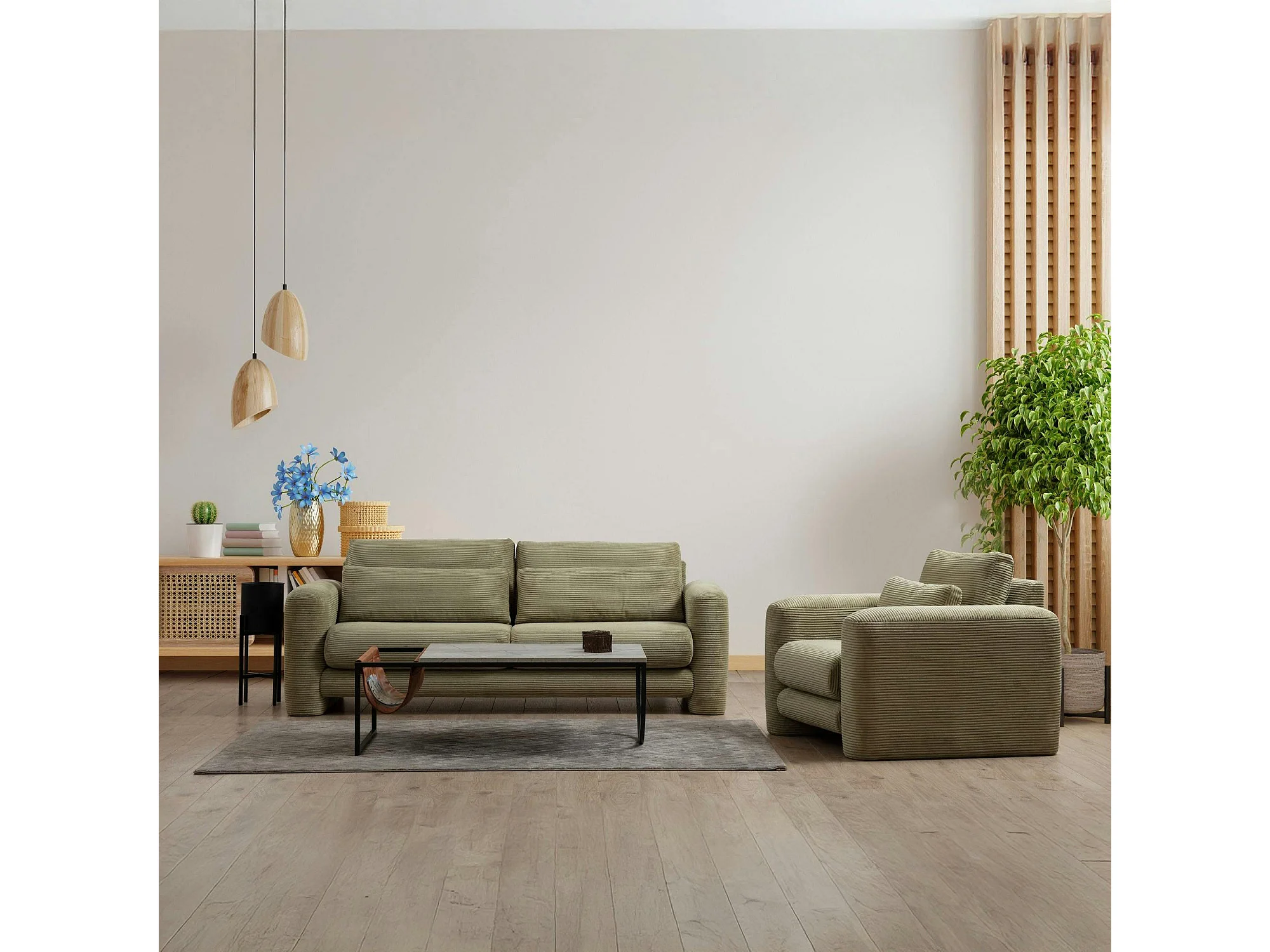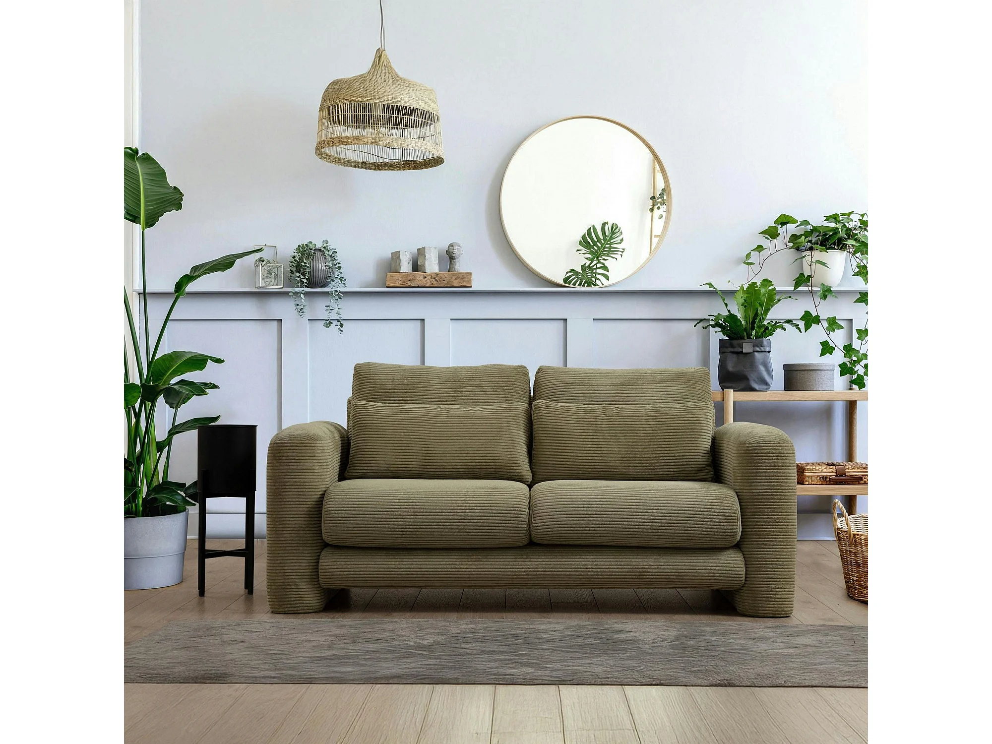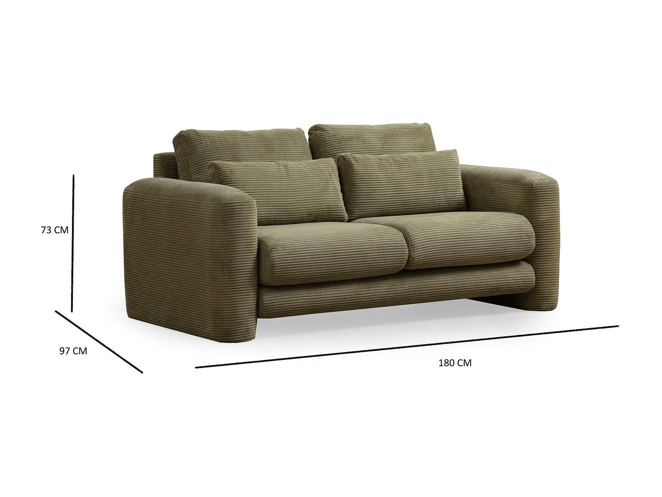 Canapé 2 places vert velours côtelé, lignes arrondies LUCCA
