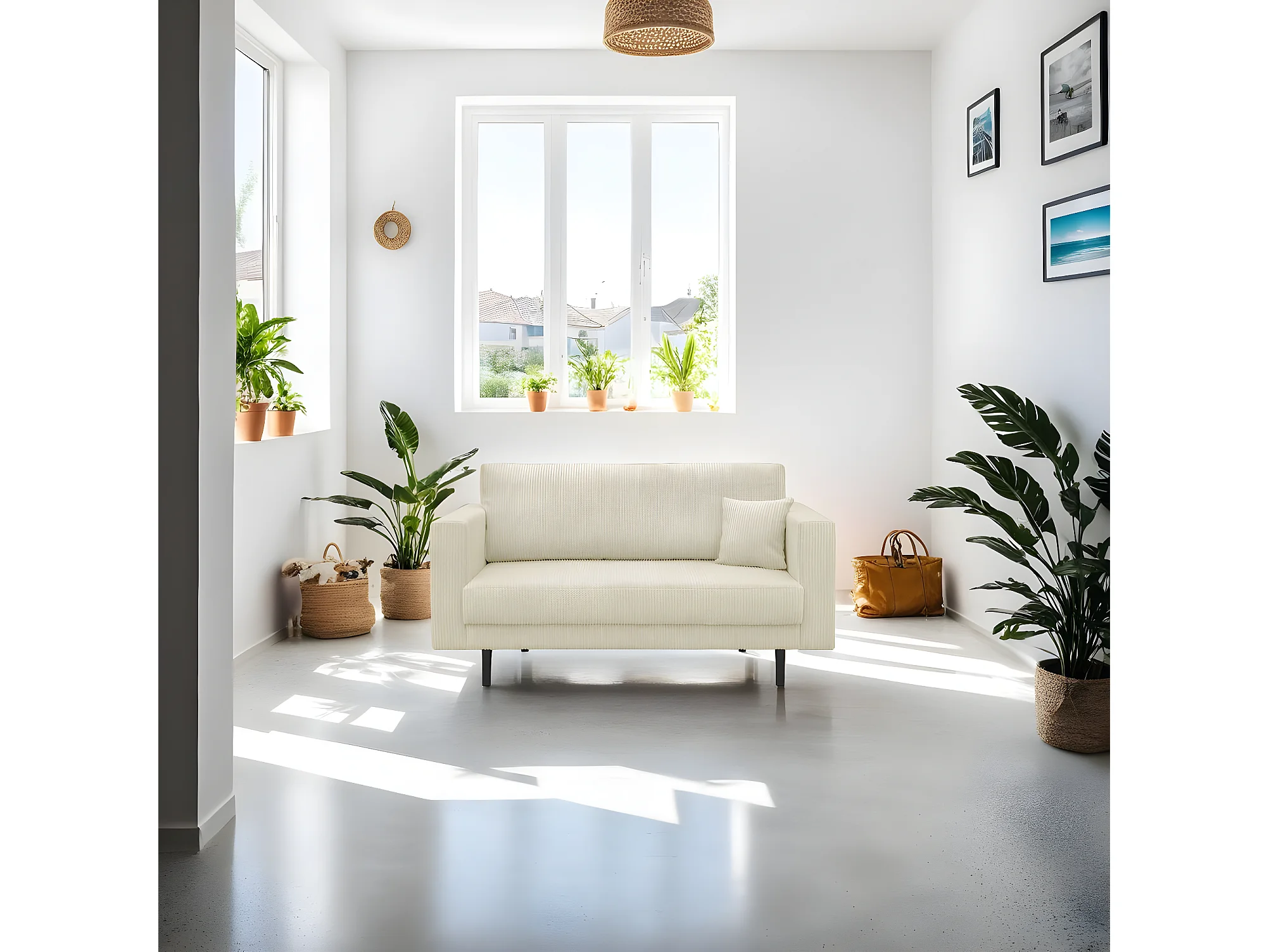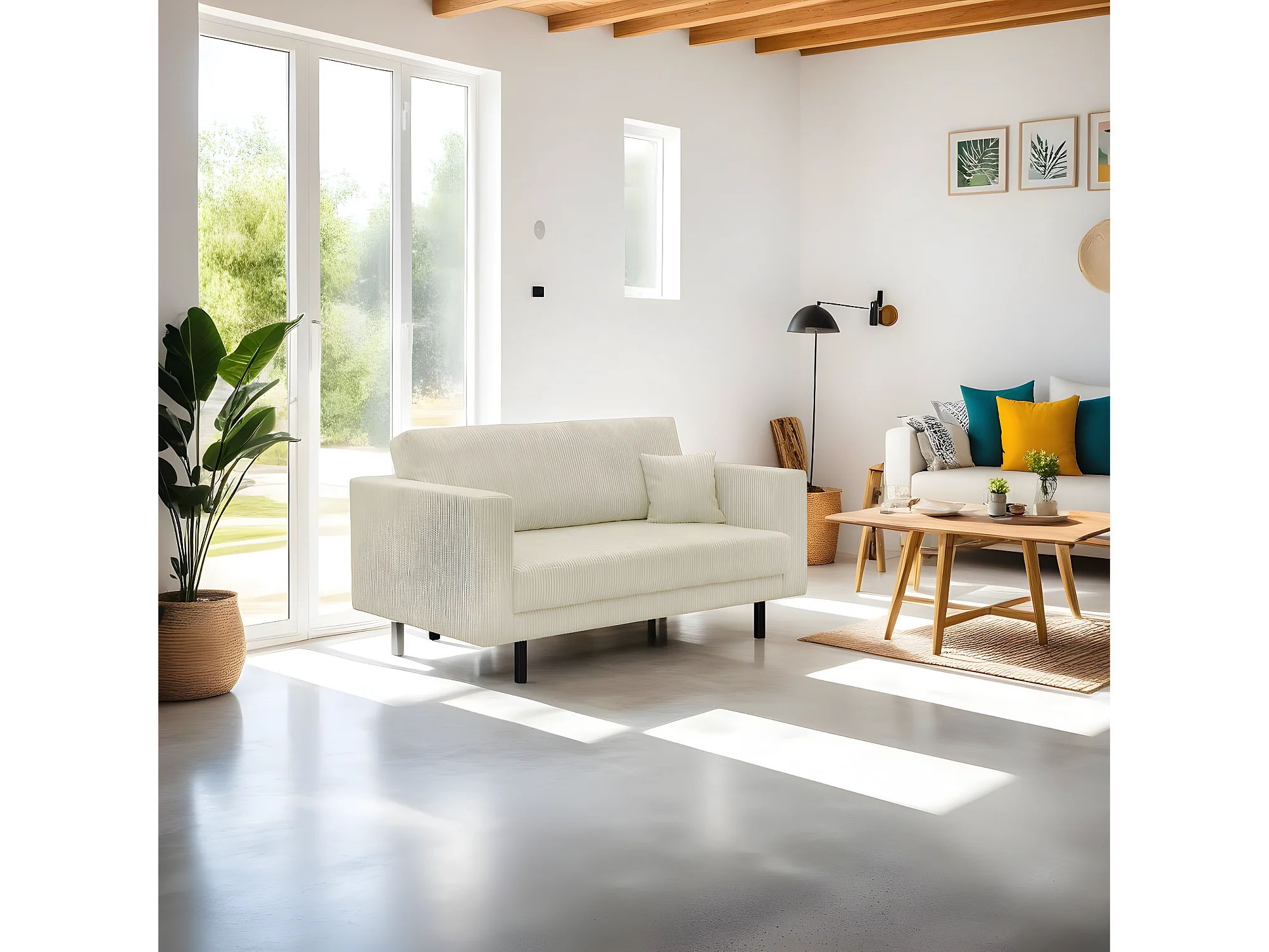 Canapé 2 places vintage en velours côtelé Beige - Pia