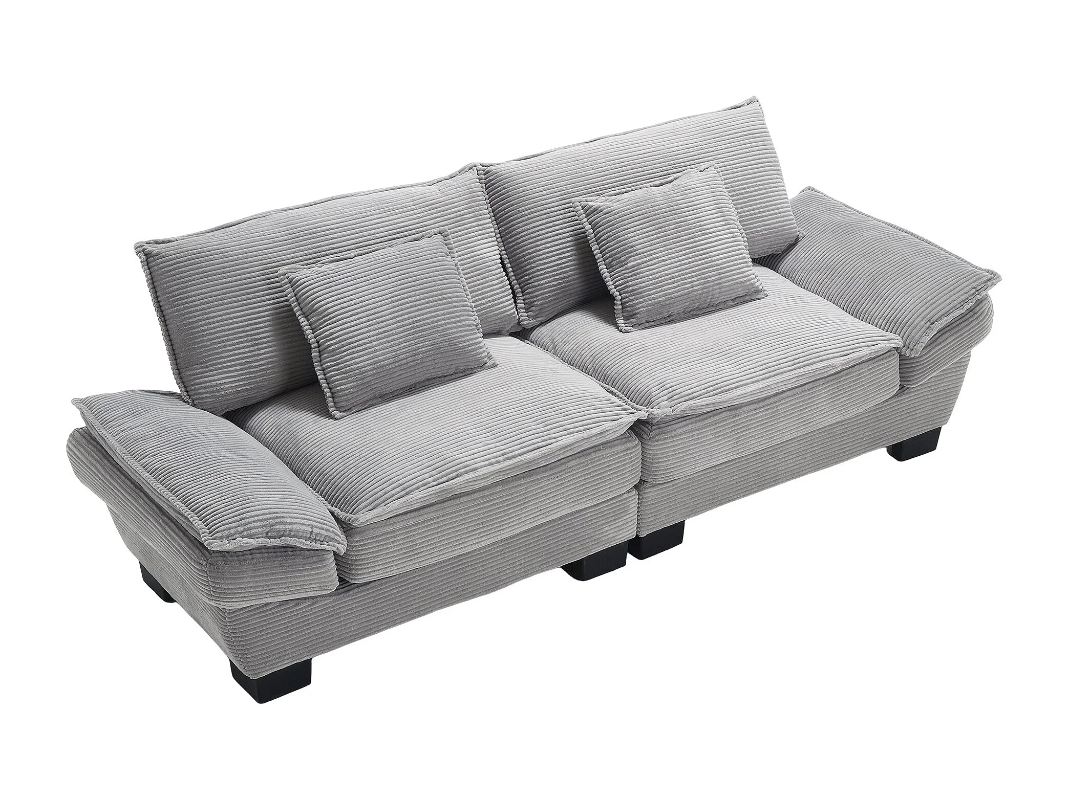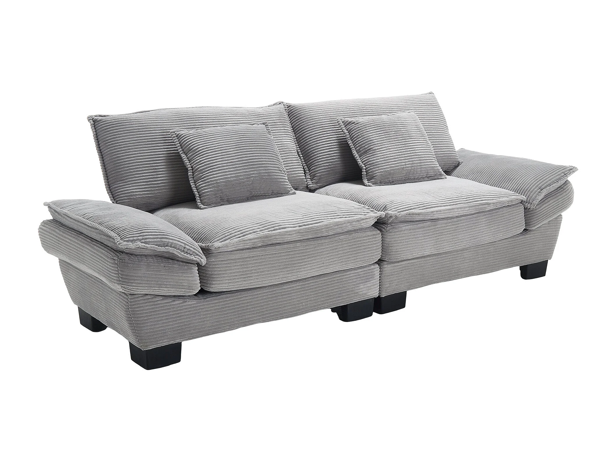 Canapé 224x81x81cm structure bois pieds plastique style contemporain velours gris clair