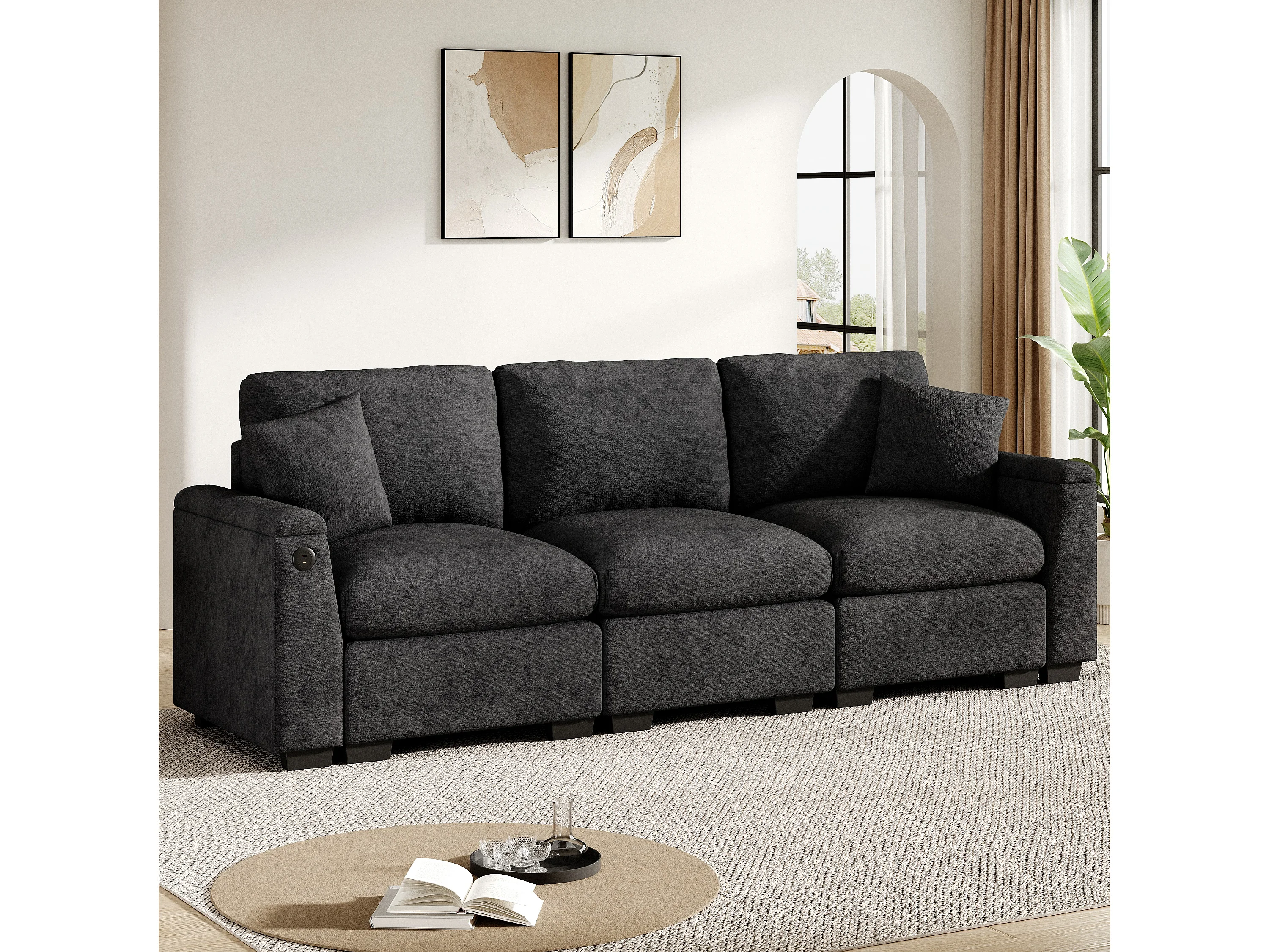 Canapé 242x80x88cm Moderne Multifonction Rangement intégré Sièges confortables Chenille Pour séjour Gris