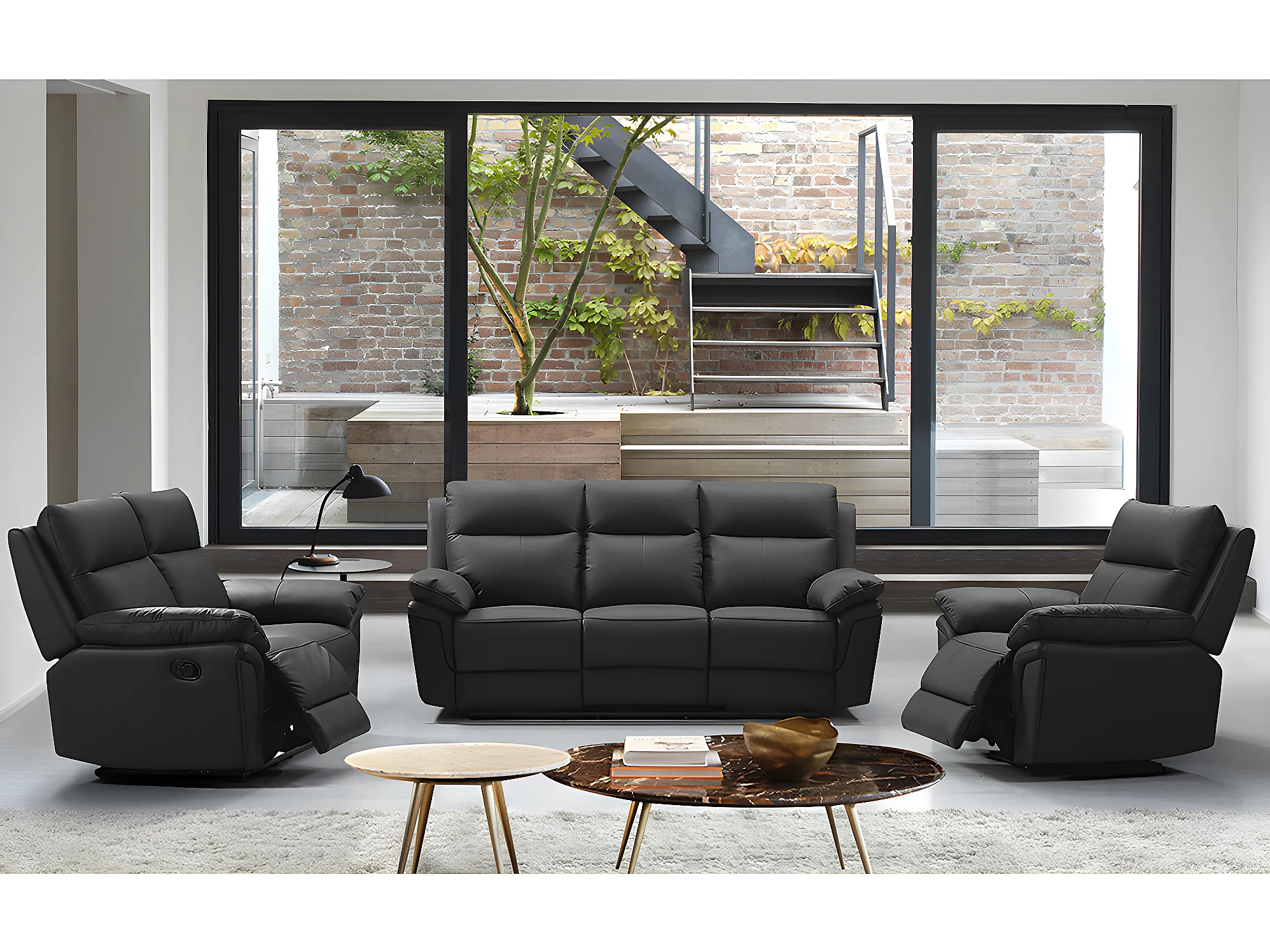 Canapés 3 places 2 places et un fauteuil relax en cuir de buffle PAKITA - Noir