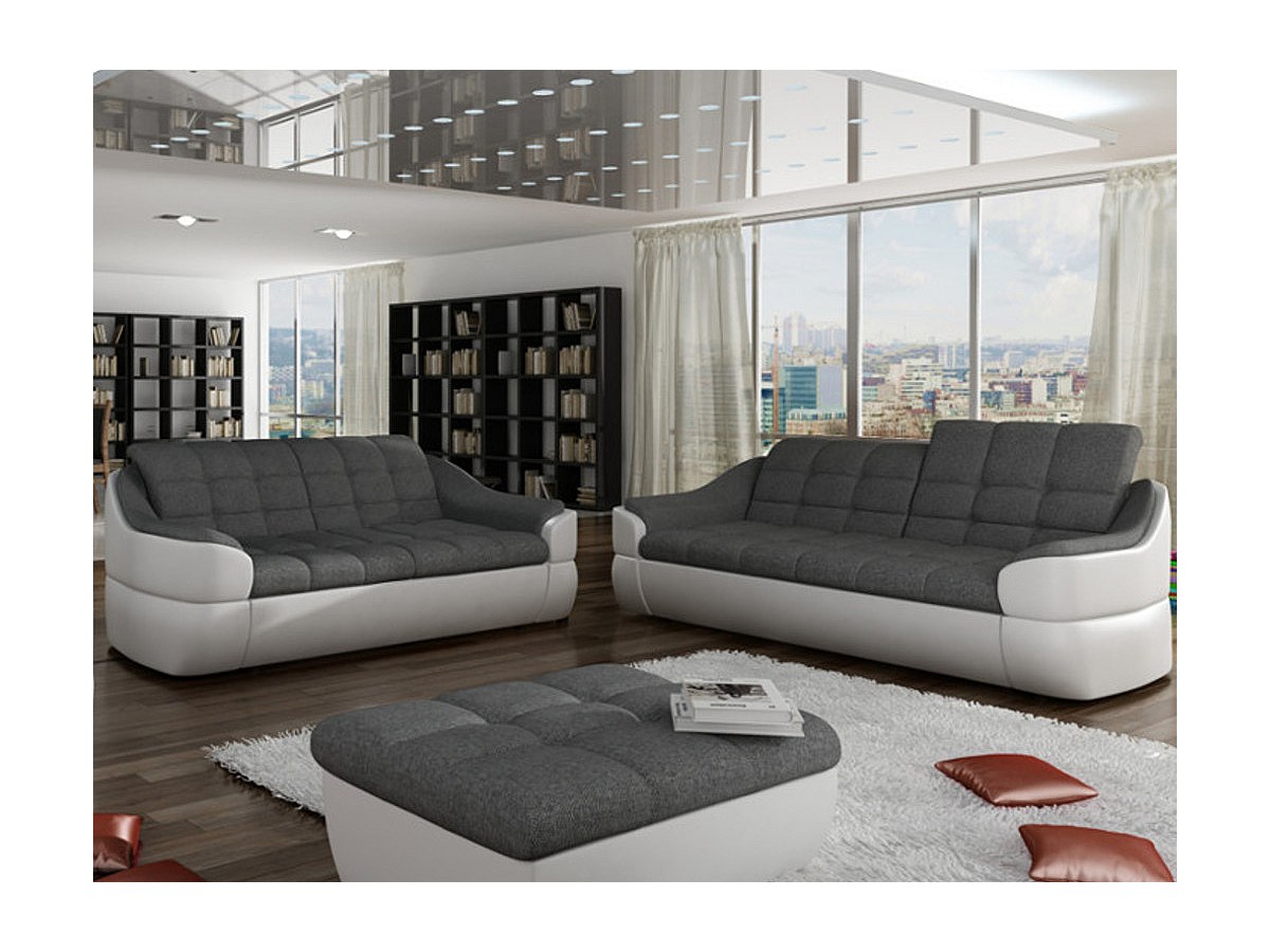 Canapé 3+2 places en tissu et simili FAREZ - Bicolore gris et blanc