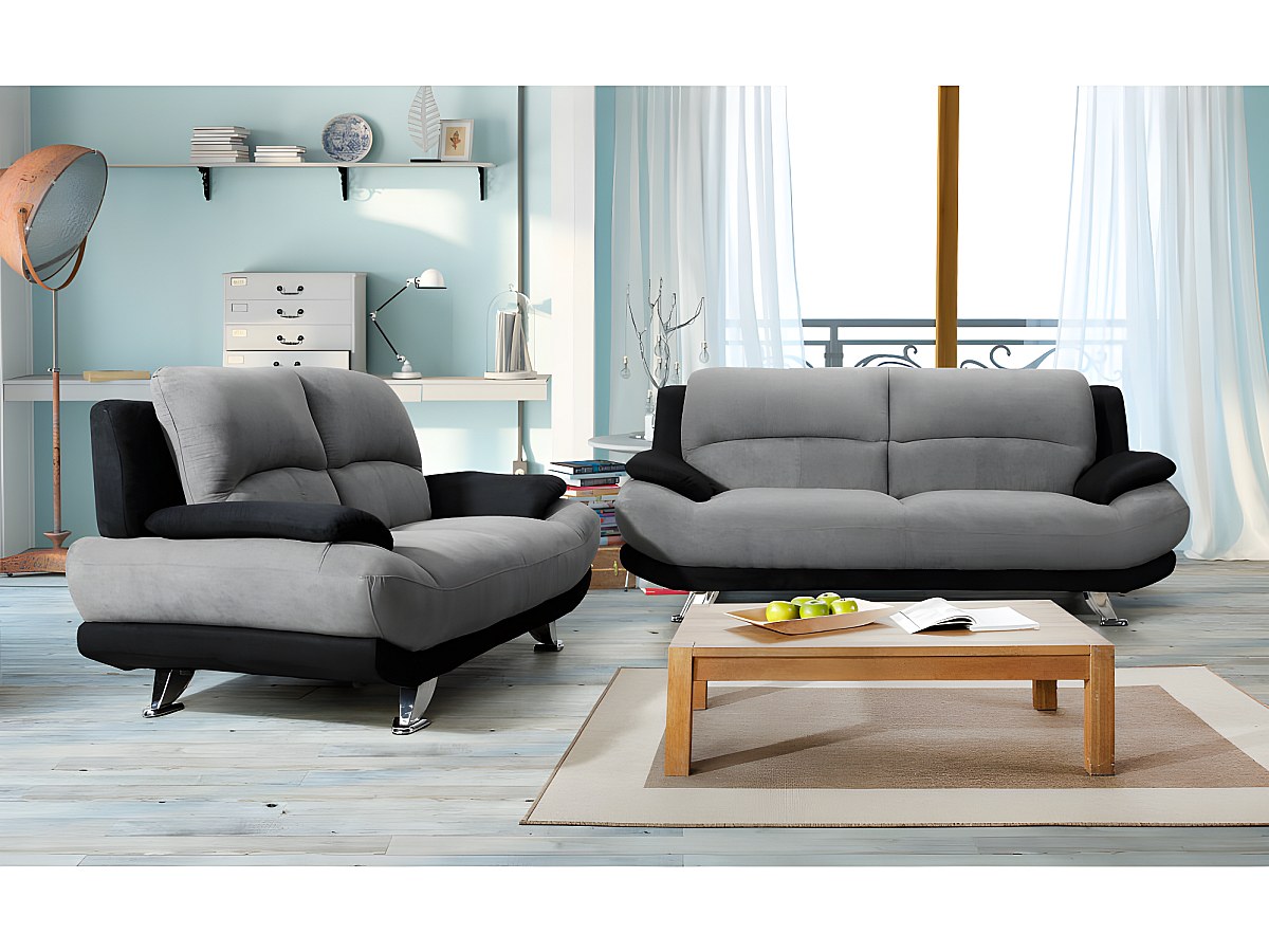 Canapé 3+2 places en microfibre MUSKO - Bicolore gris et noir