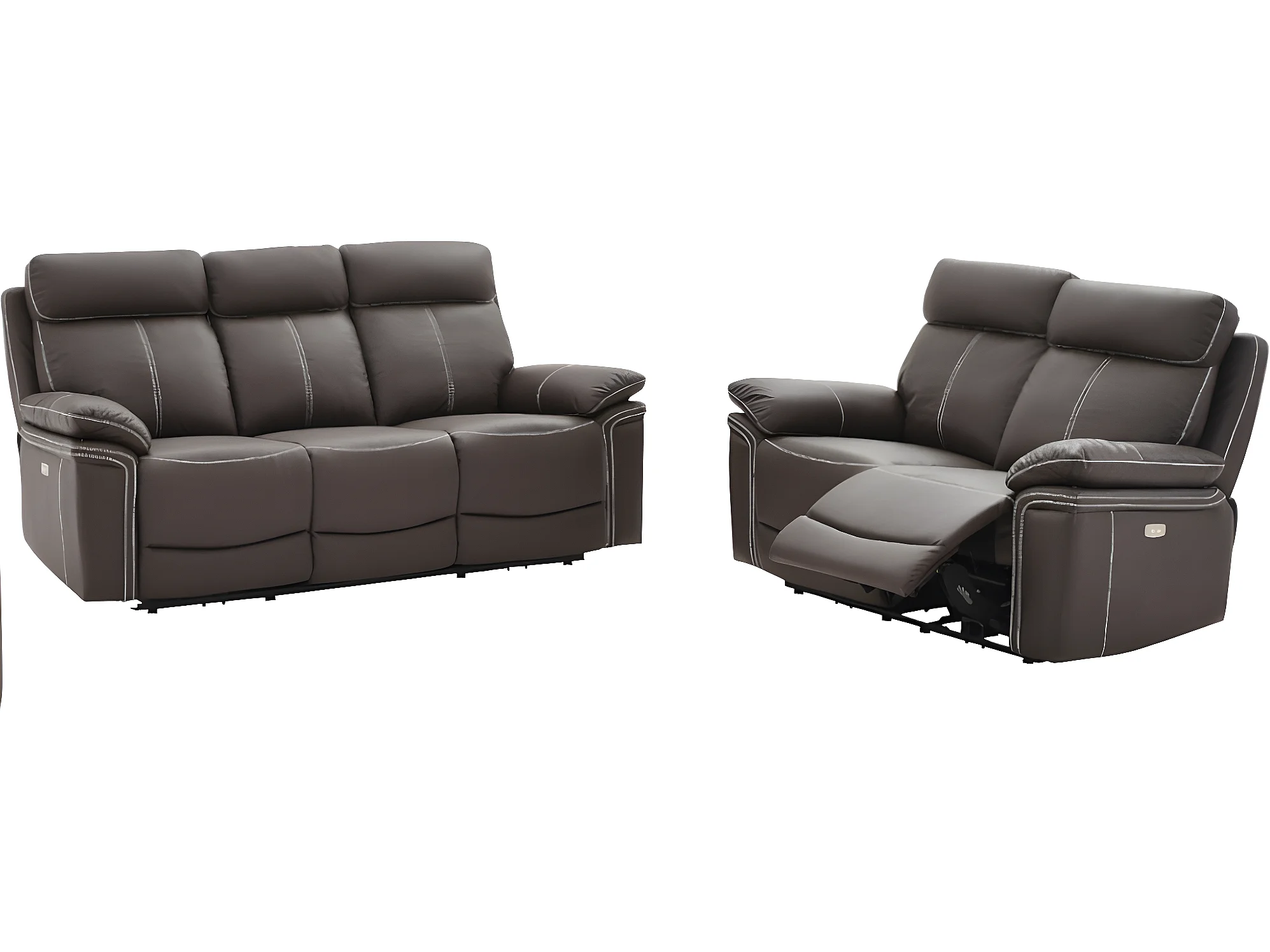 Canapés 3 places et 2 places relax électrique en cuir ISIRIS - Marron