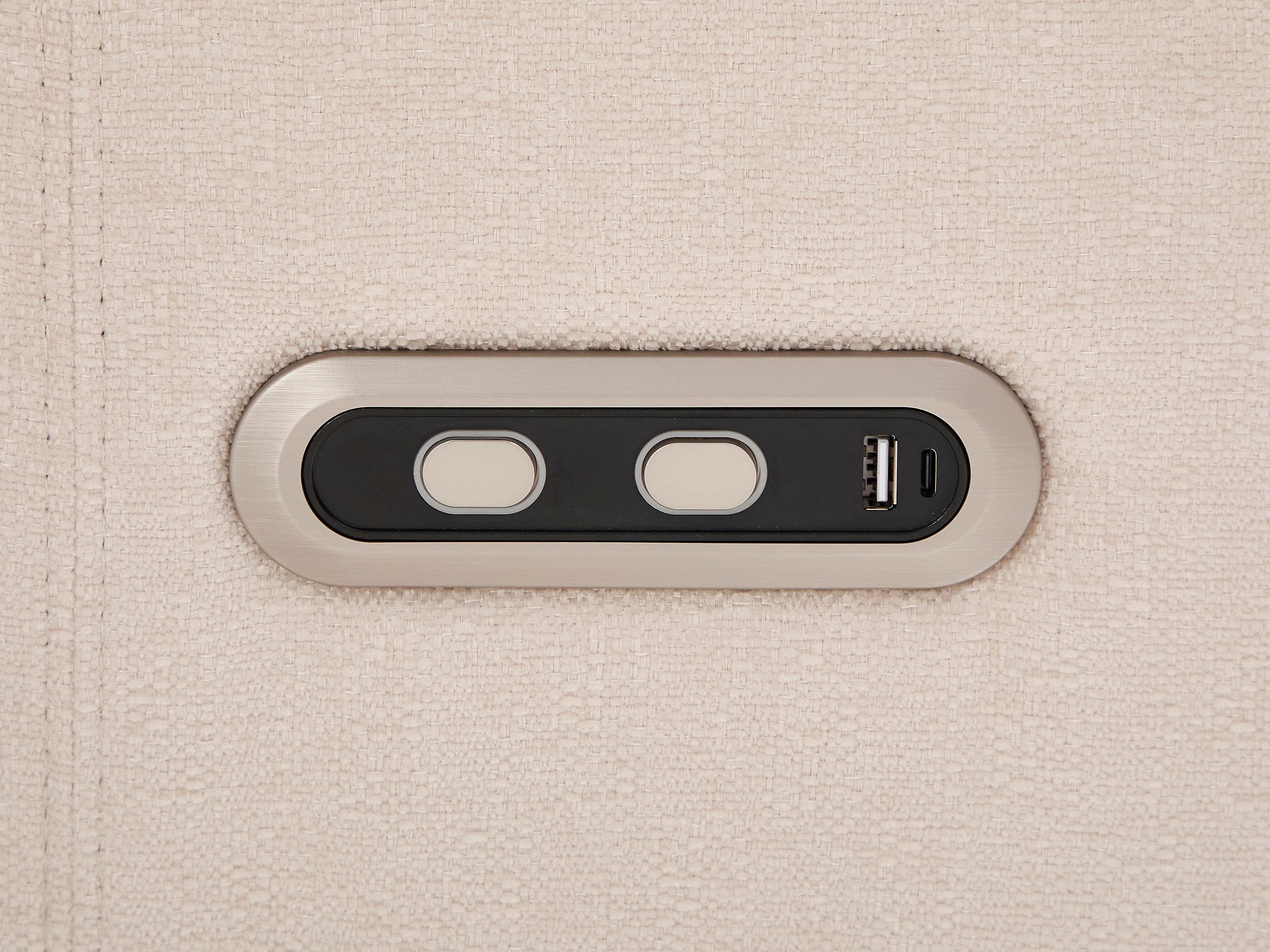 Canapé 3 places 2 places et un fauteuil relax électrique en tissu chenille beige SCAMOCO