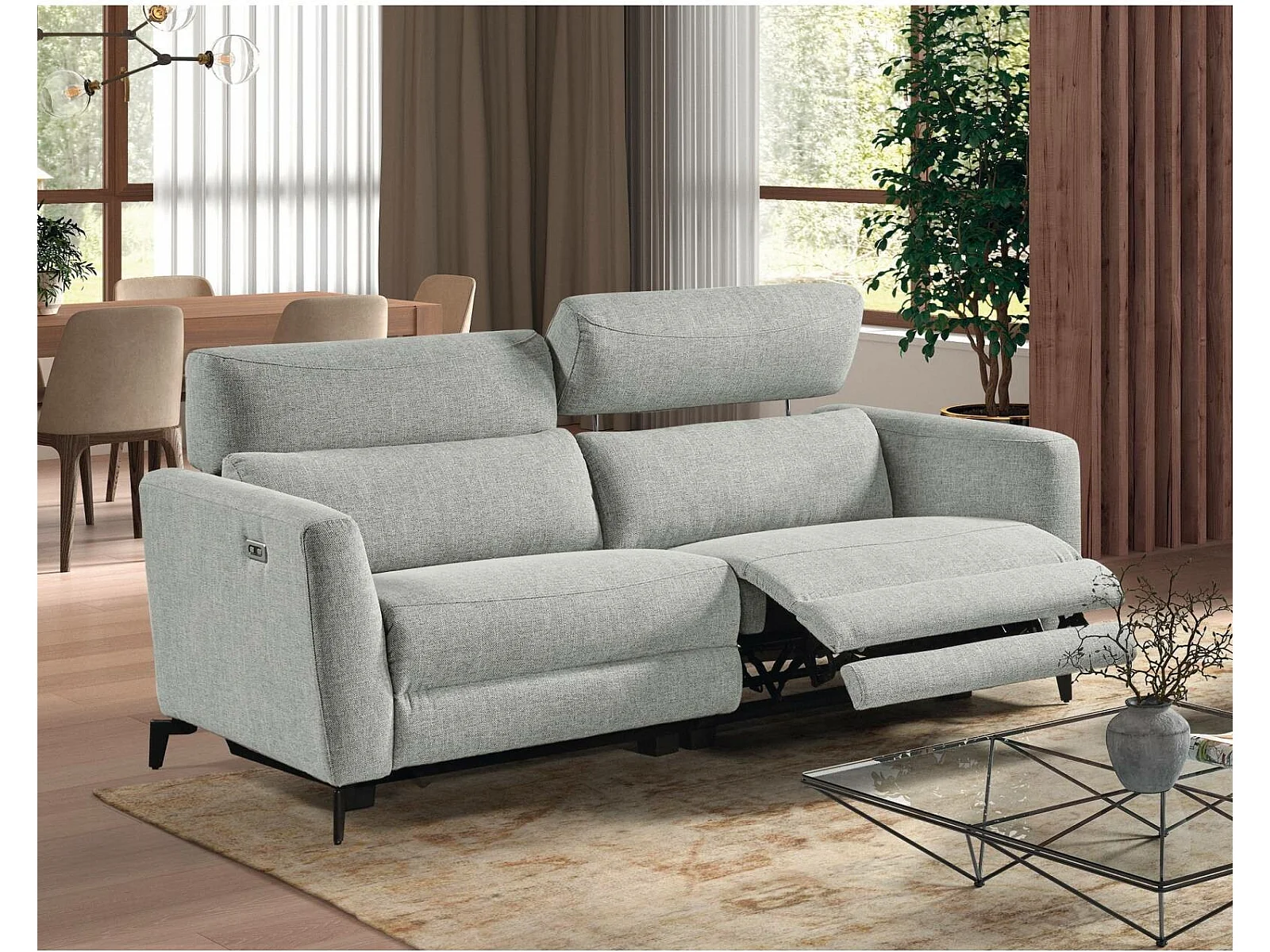 Canapé 3 places, 2 relax électriques Bombay Gris clair