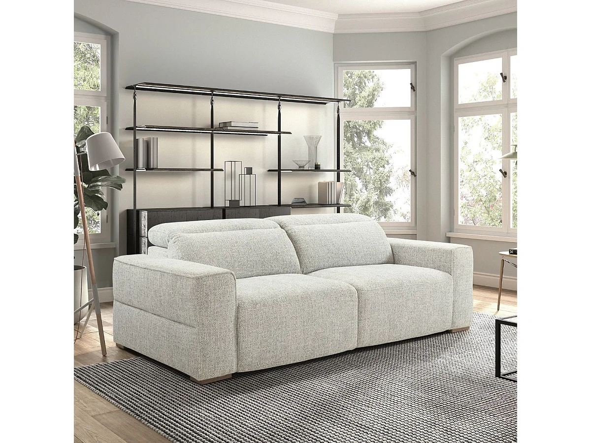 Canapé 3 places assises coulissantes électriques en tissu bouclé gris perle - HAVANA
