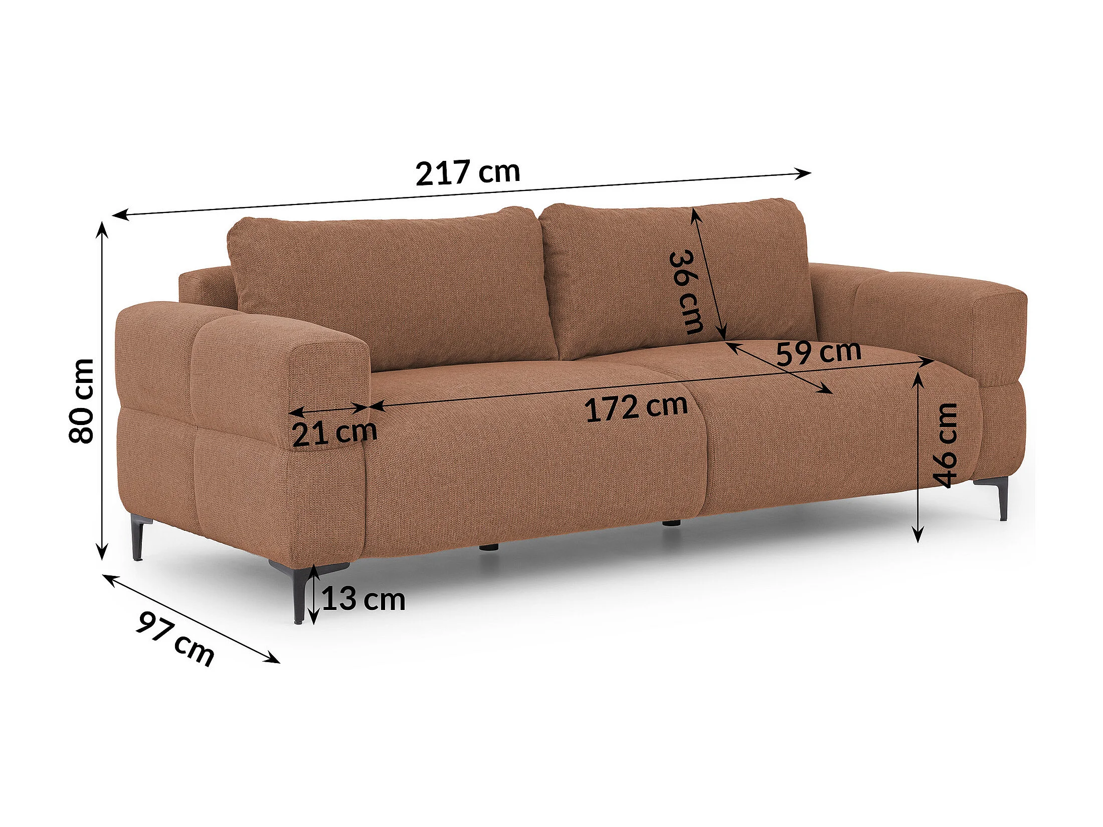 Canapé 3 places au style bubble en tissu structuré terre cuite doux CARDEA