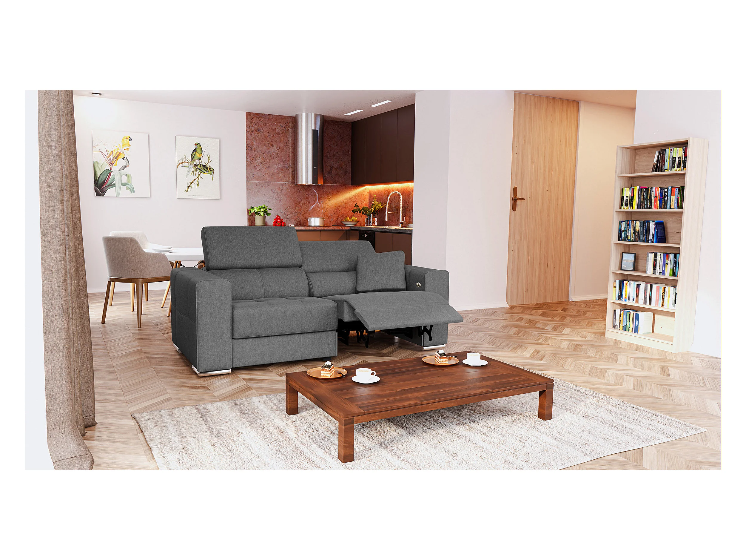 Canapé 3 places avec 1 relax électrique tissu gris foncé - QUARTZ