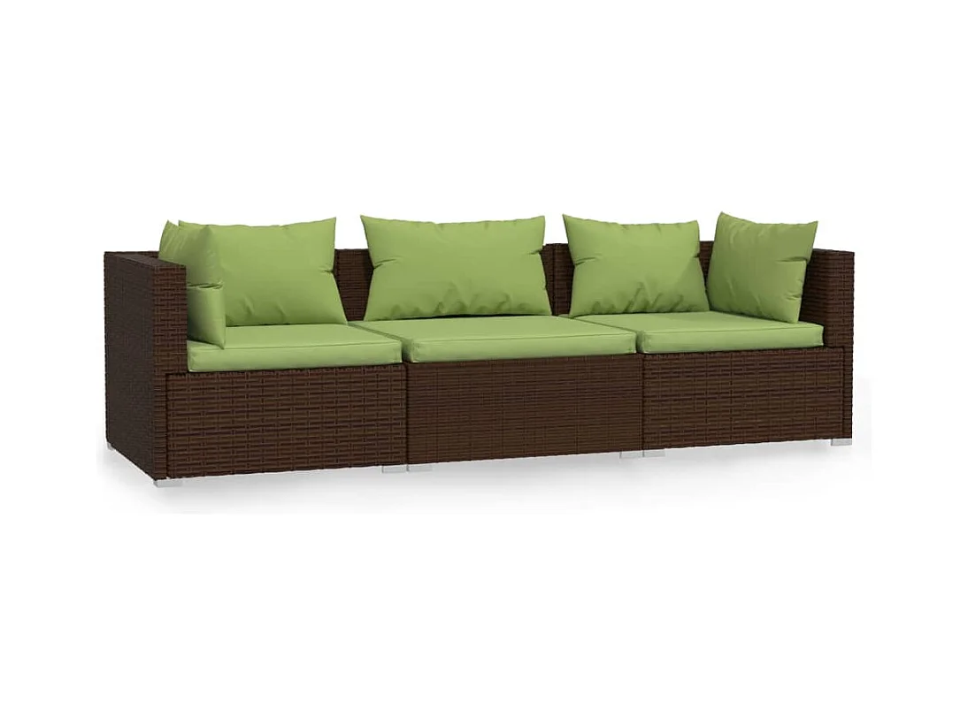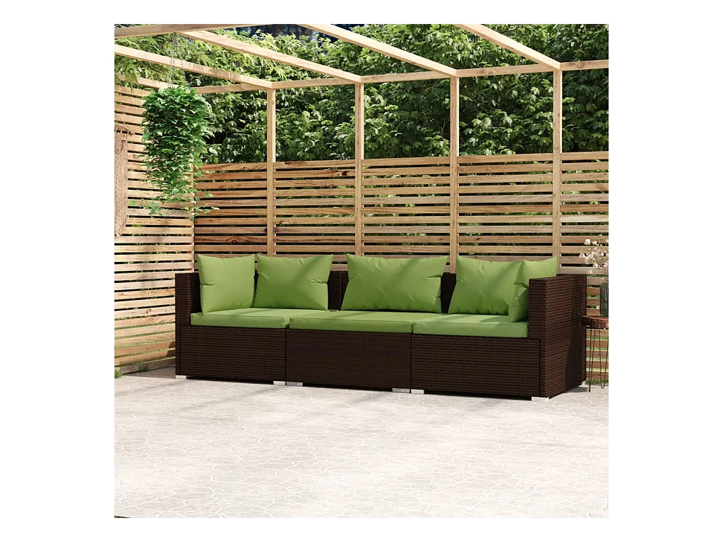 Canapé 3 places avec coussins Marron Résine tressée REO26670