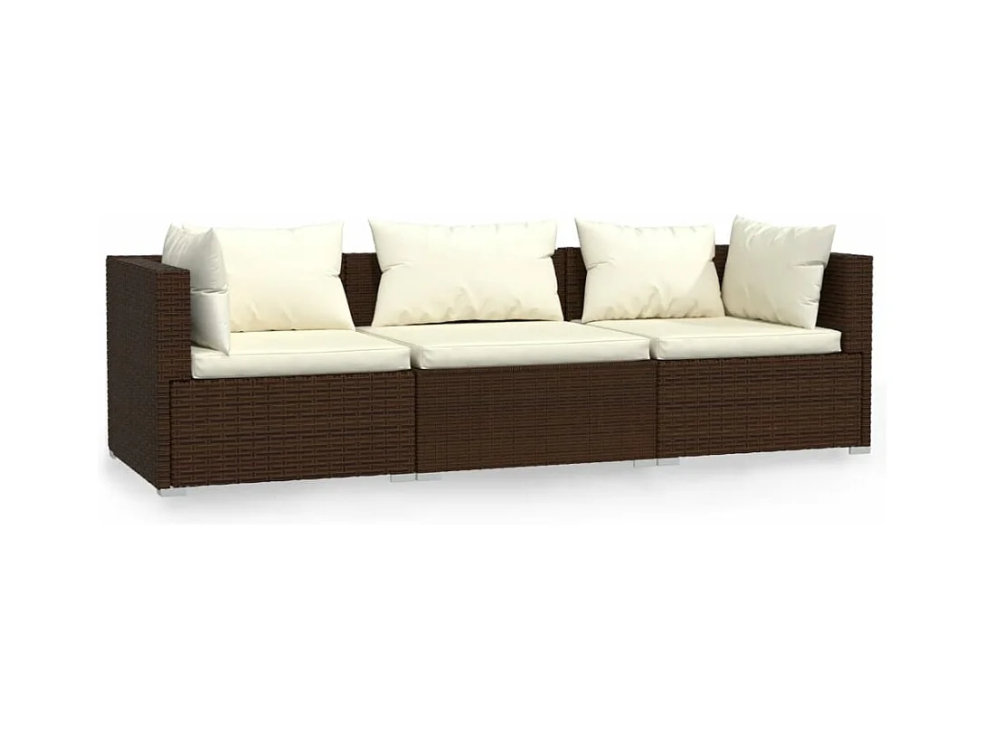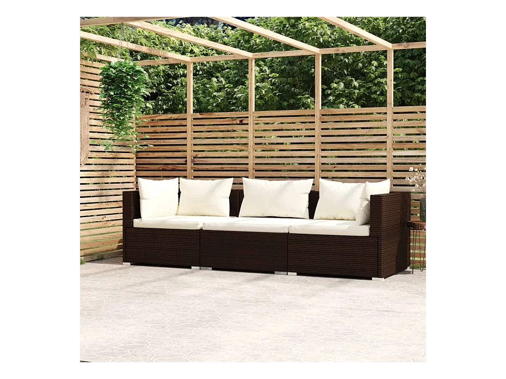 Canapé 3 places avec coussins Marron Résine tressée REO78806