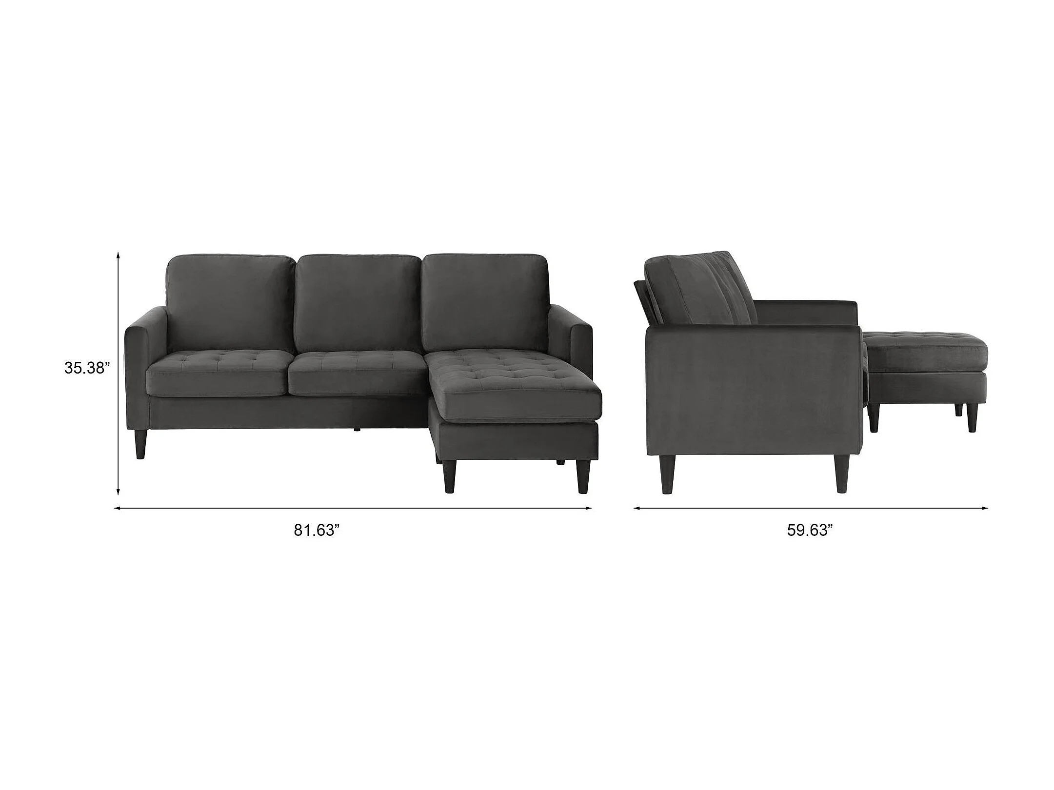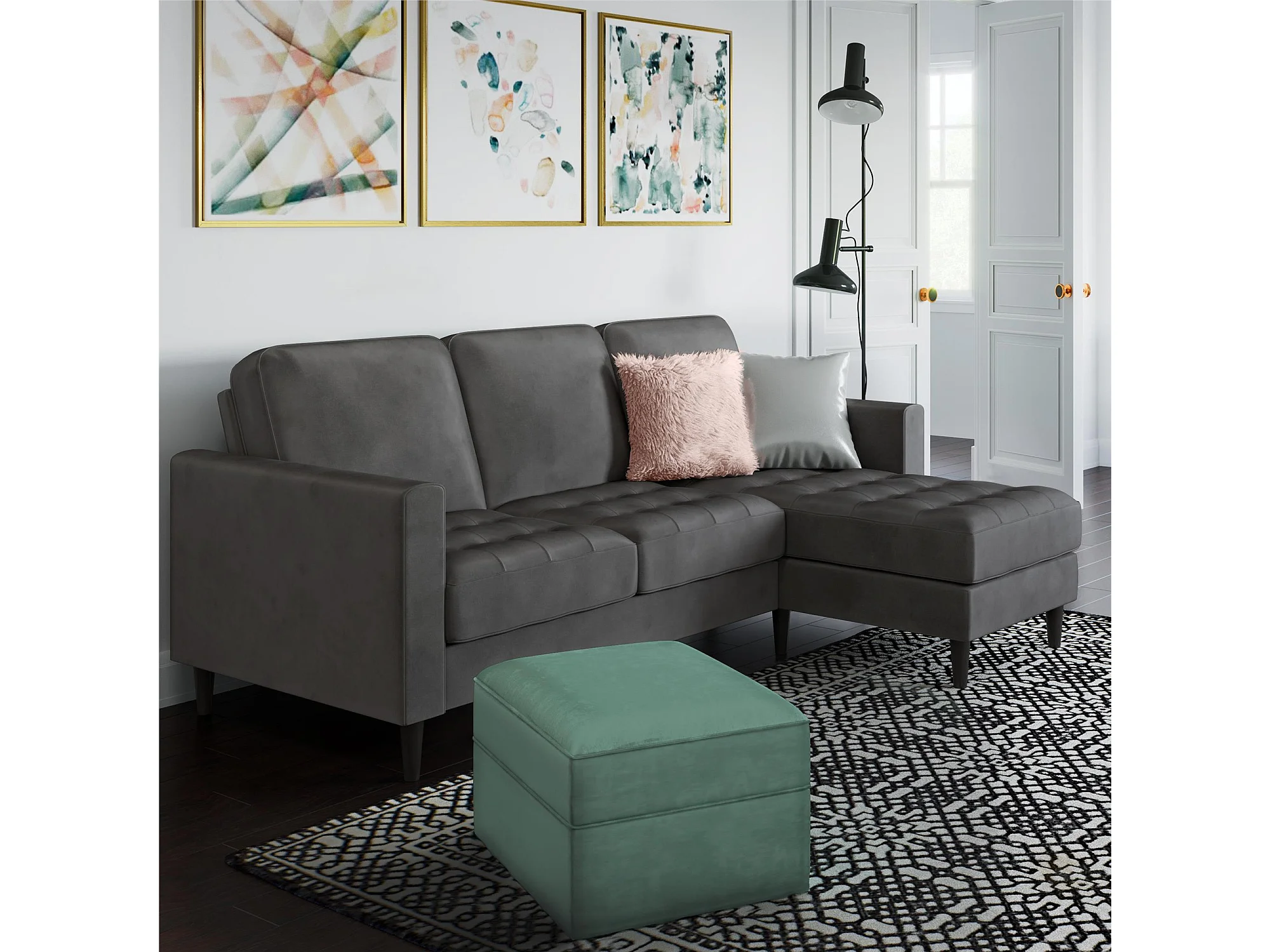 Strummer | Canapé 3 places avec méridienne en velours gris