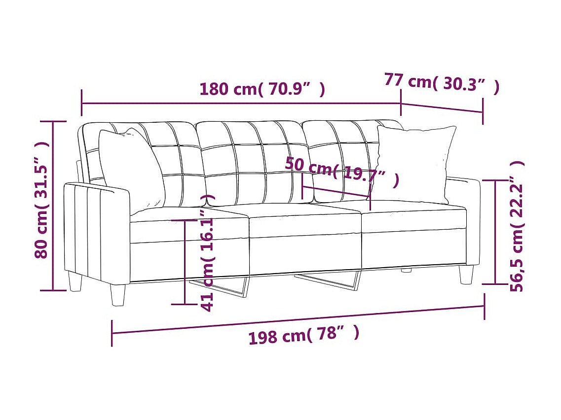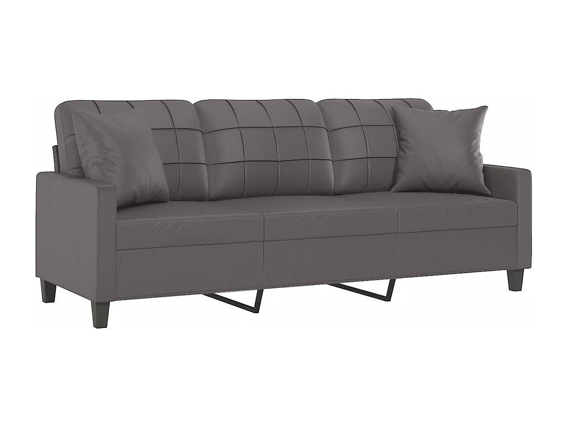 Canapé 3 places avec oreillers décoratifs gris 180cm similicuir