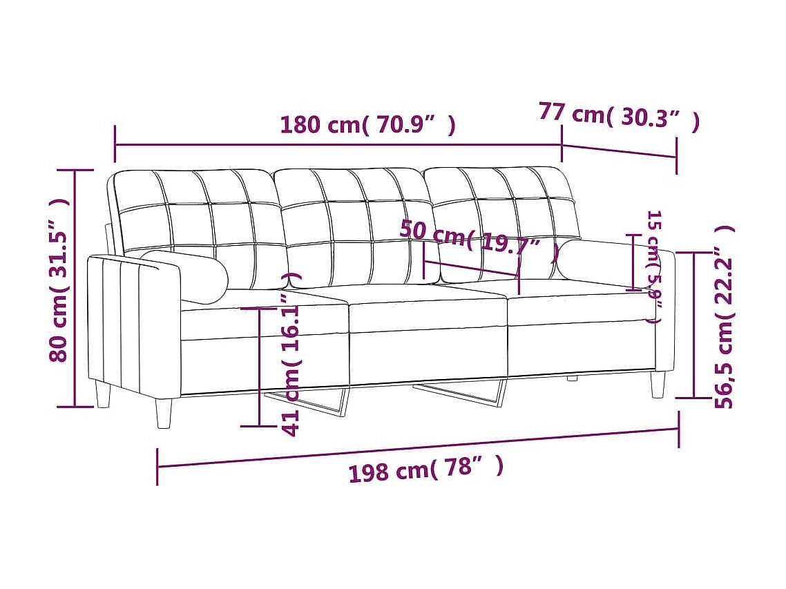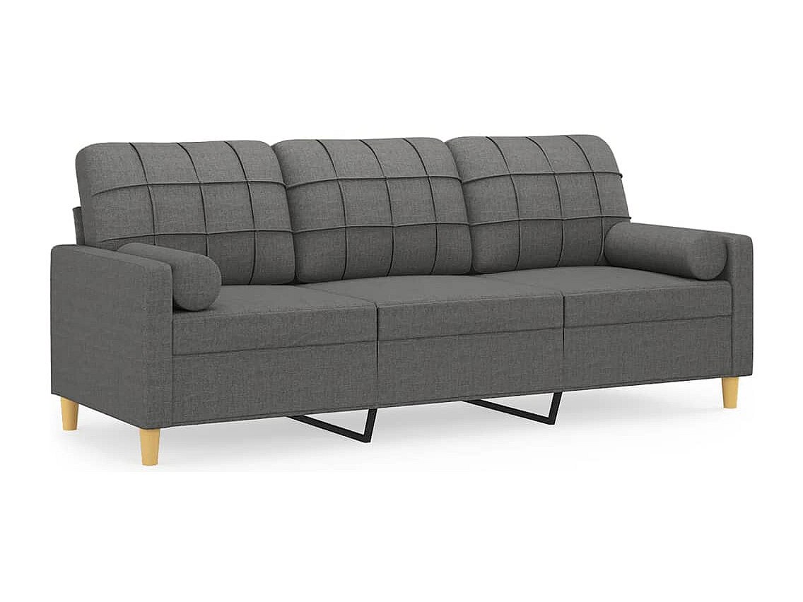 Canapé 3 places avec oreillers gris foncé 180 cm tissu