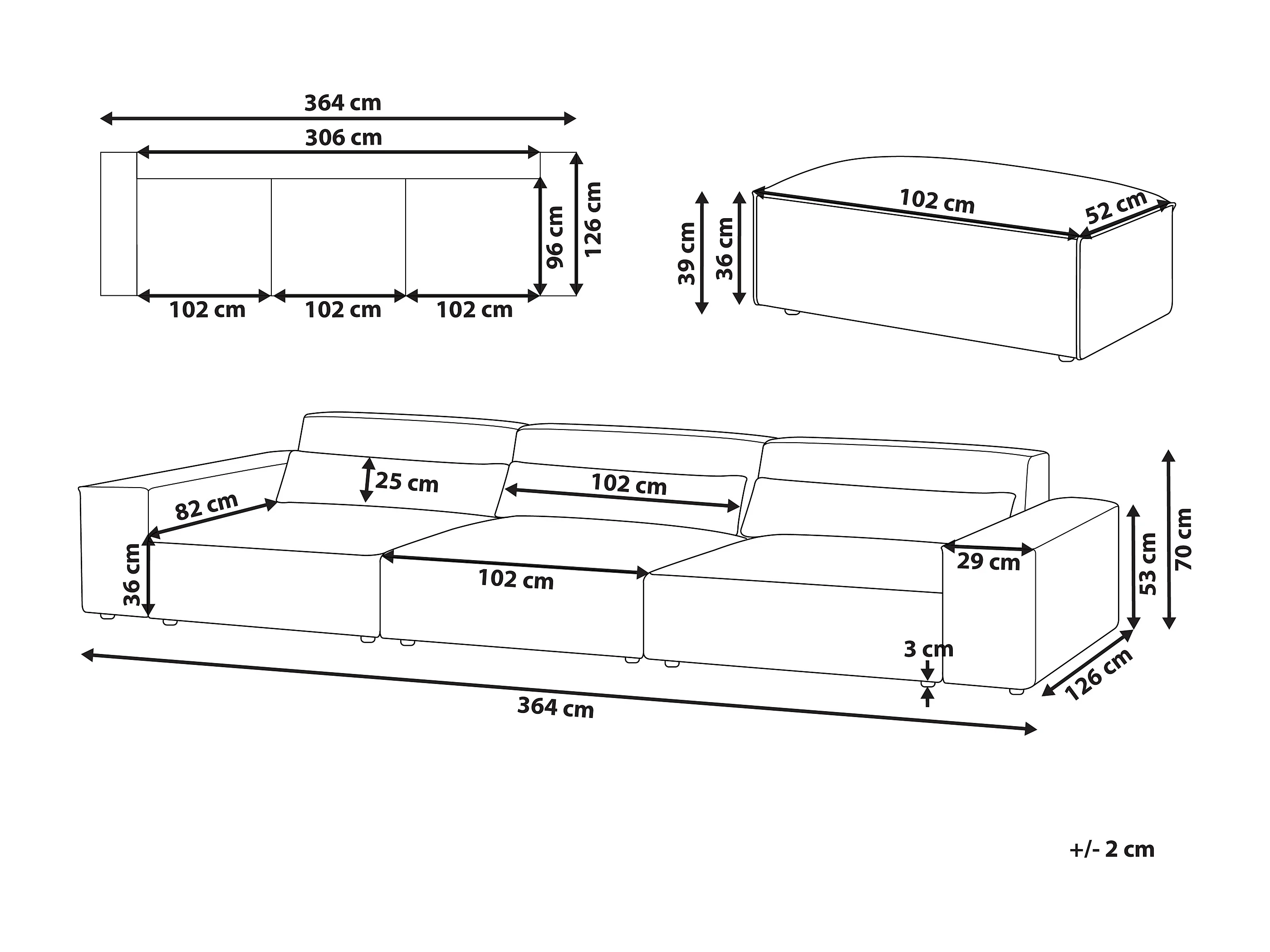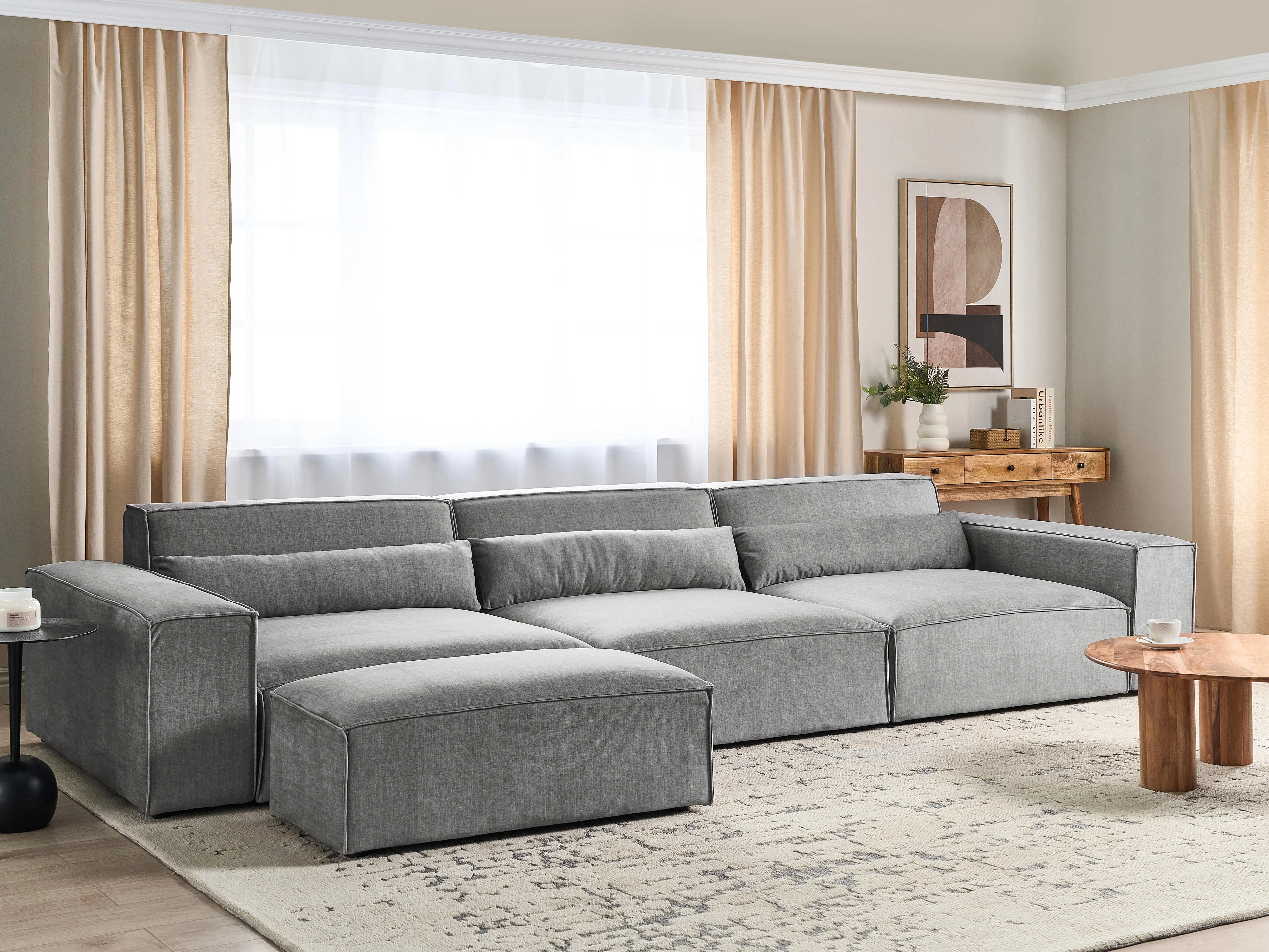 Canapé modulable 3 places HELLNAR Tissu Gris avec ottoman