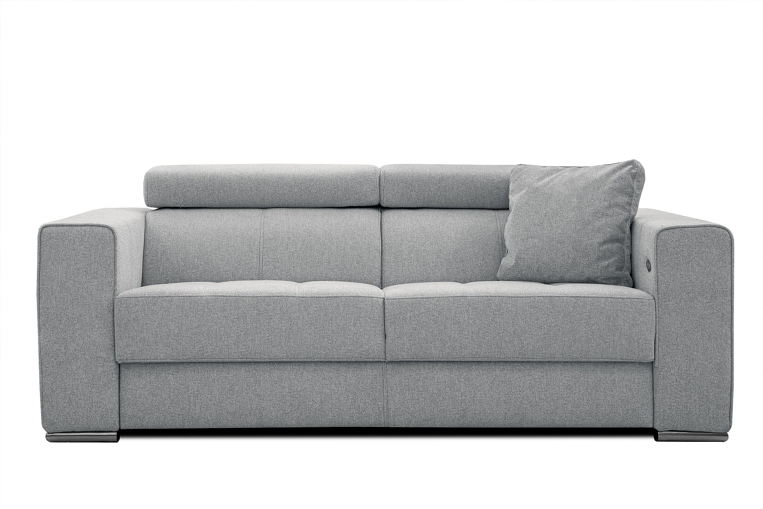 Canapé 3 places avec siège extensible et appuis-tête réglables, tissu gris argenté - QUARTZ