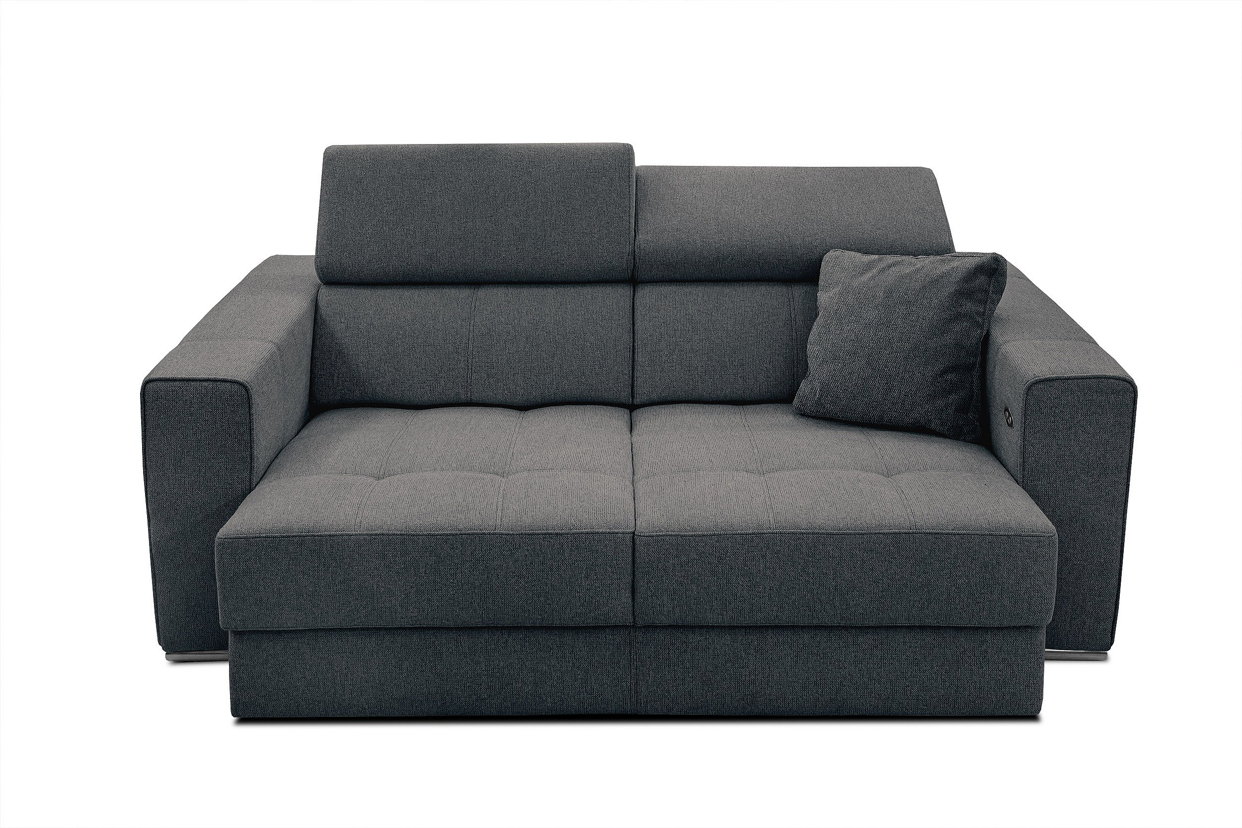 Canapé 3 places avec siège extensible et appuis-tête réglables, tissu gris foncé - QUARTZ