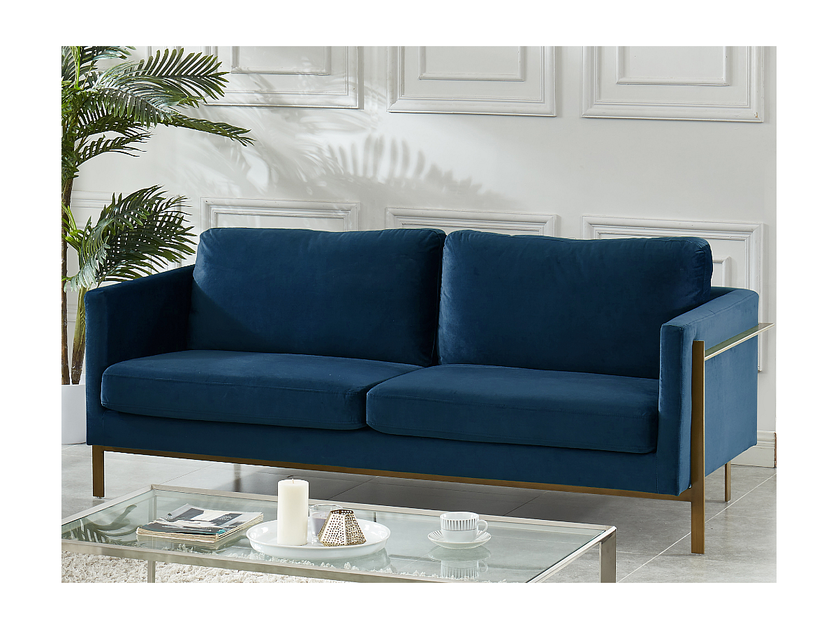 Canapé 3 places BAROU en velours - Bleu nuit