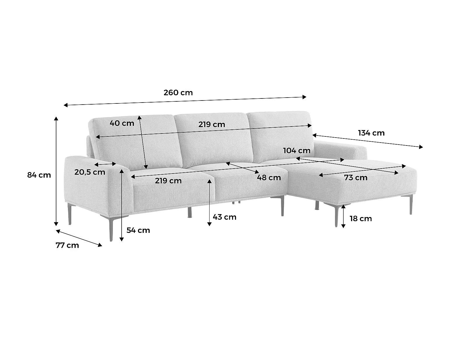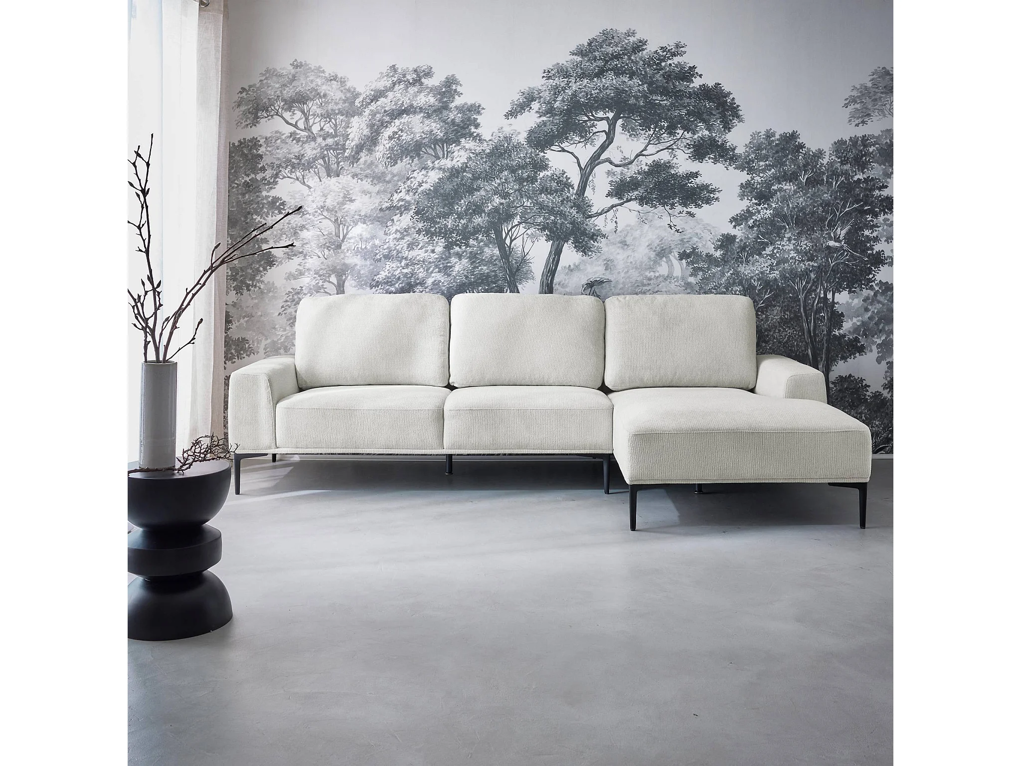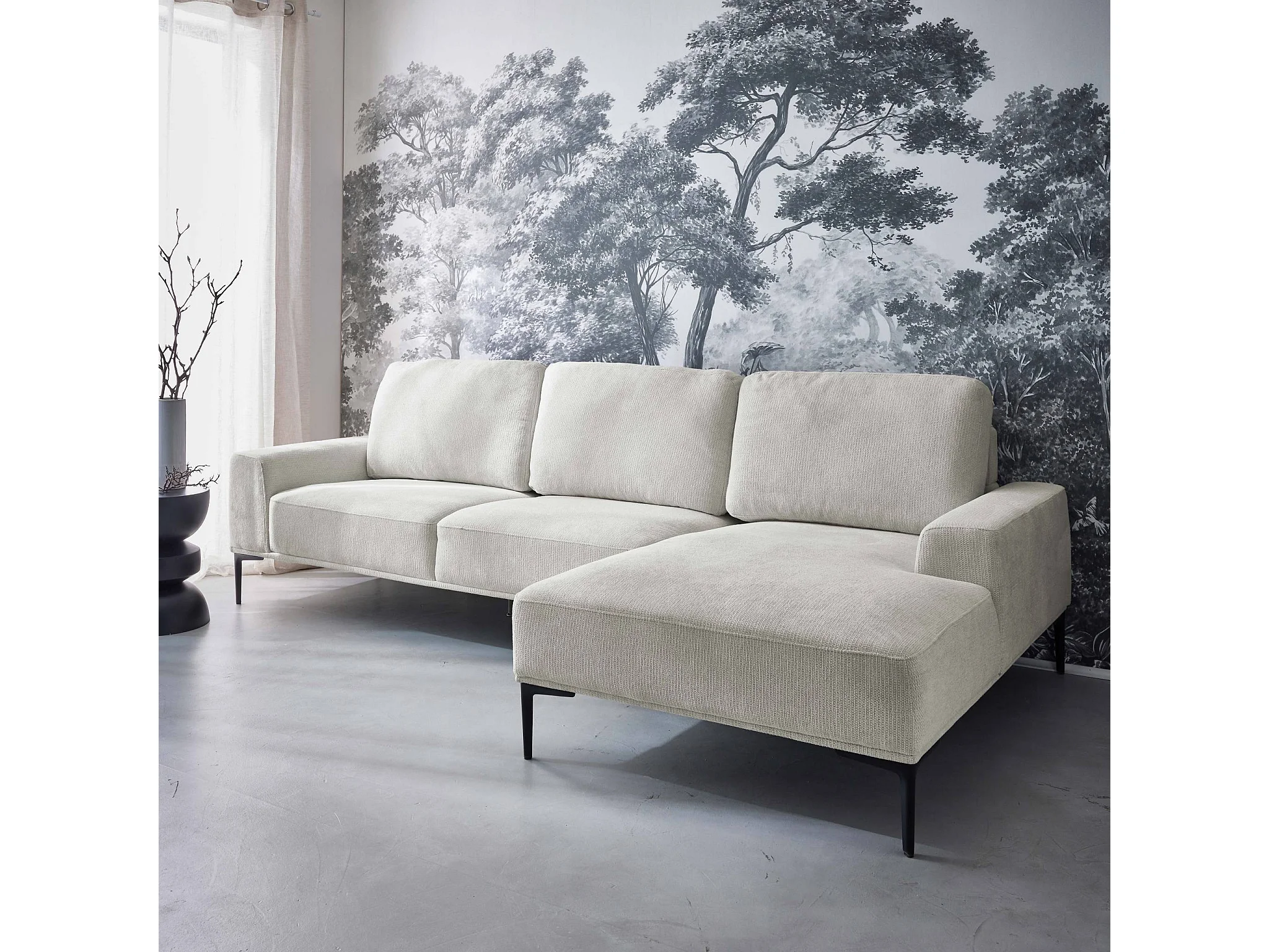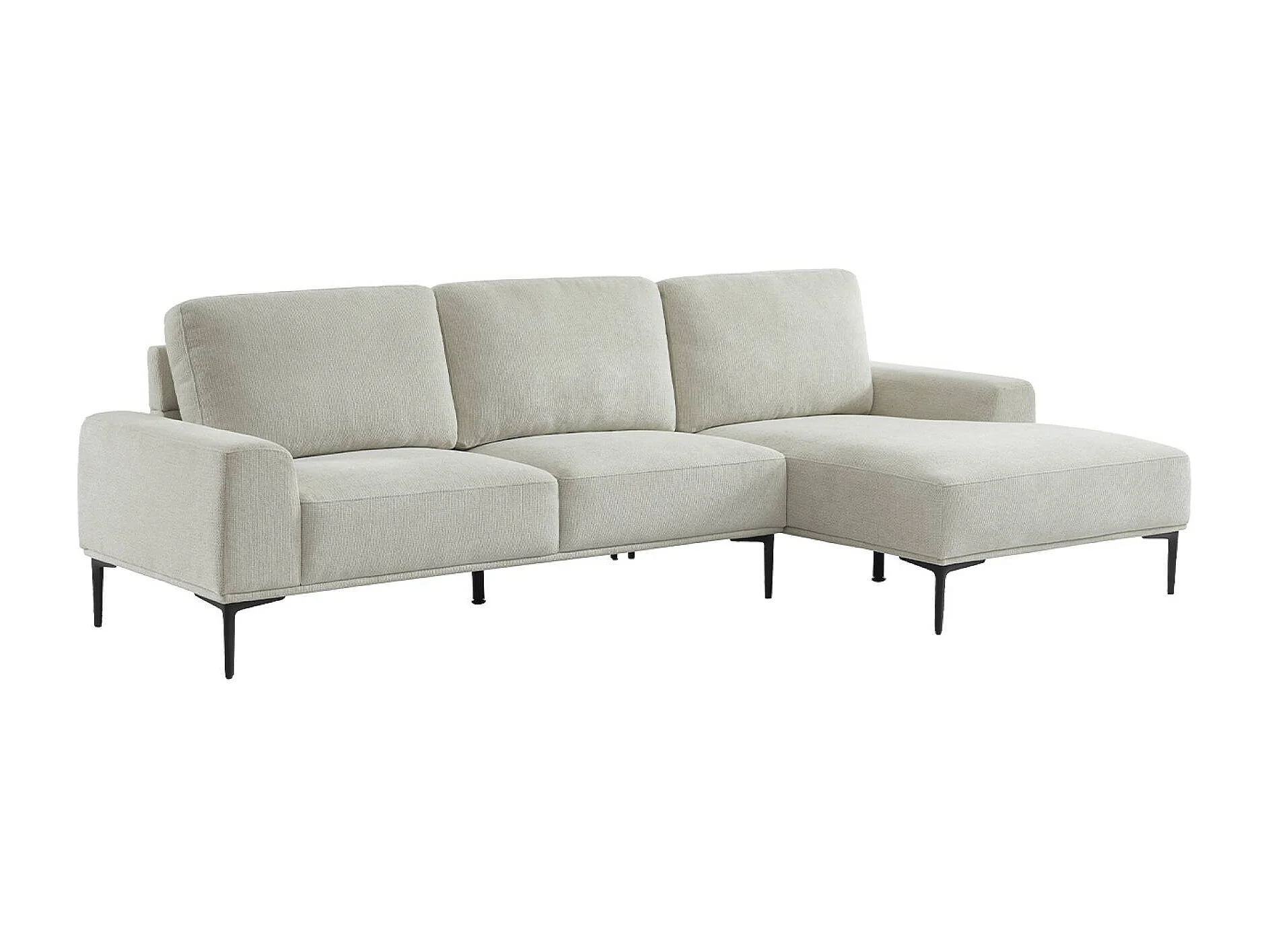 Canapé 3 places blanc crème angle à droite et structure / piètement métal noir