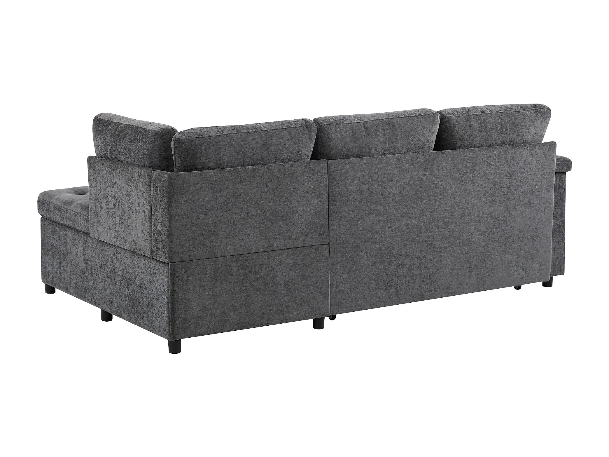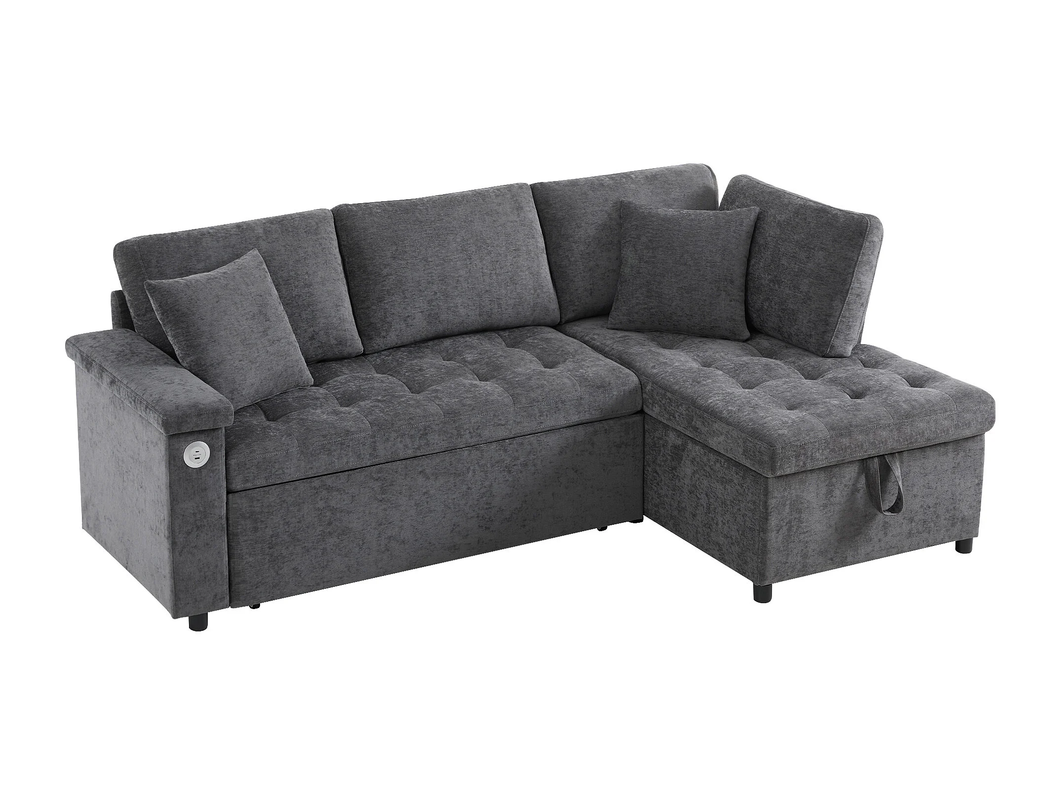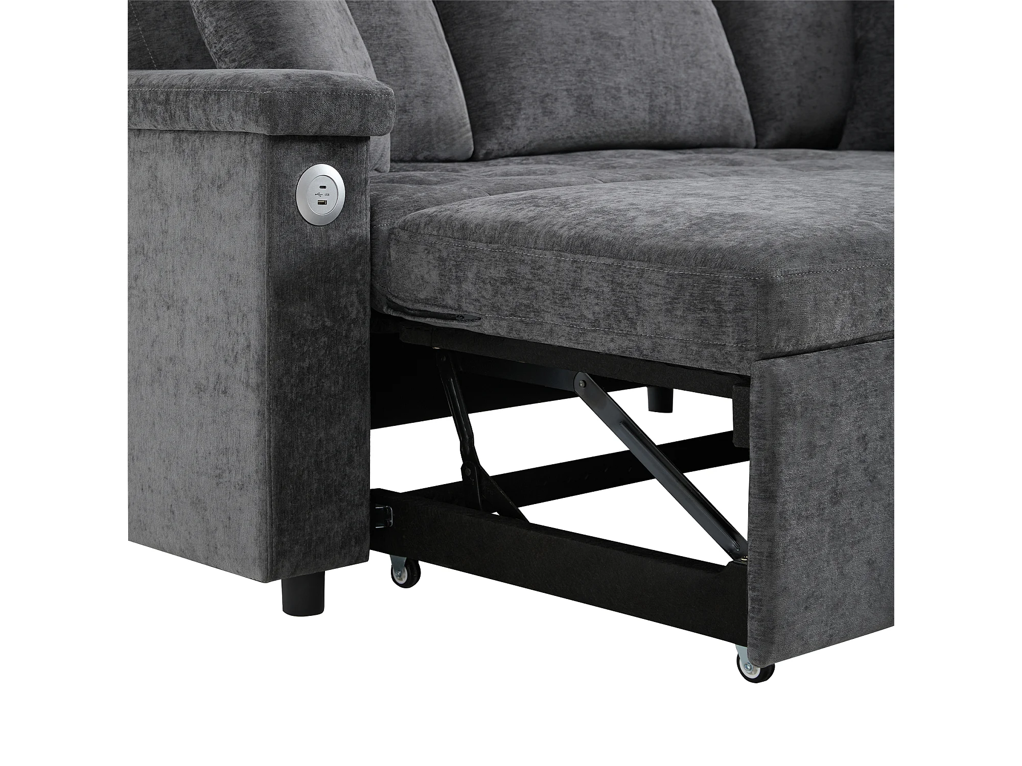 Canapé 3 places, Canapé convertible avec prises USB et rangement, dossier rembourré - Chenille gris foncé
