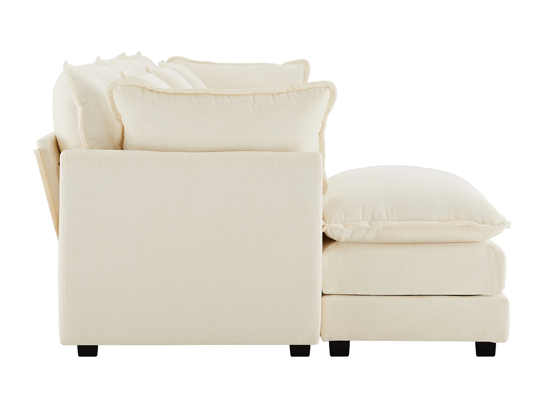 Canapé 3 places, canapé d'angle avec accoudoirs et dossier rembourré - Chenille beige - pour salon et chambre